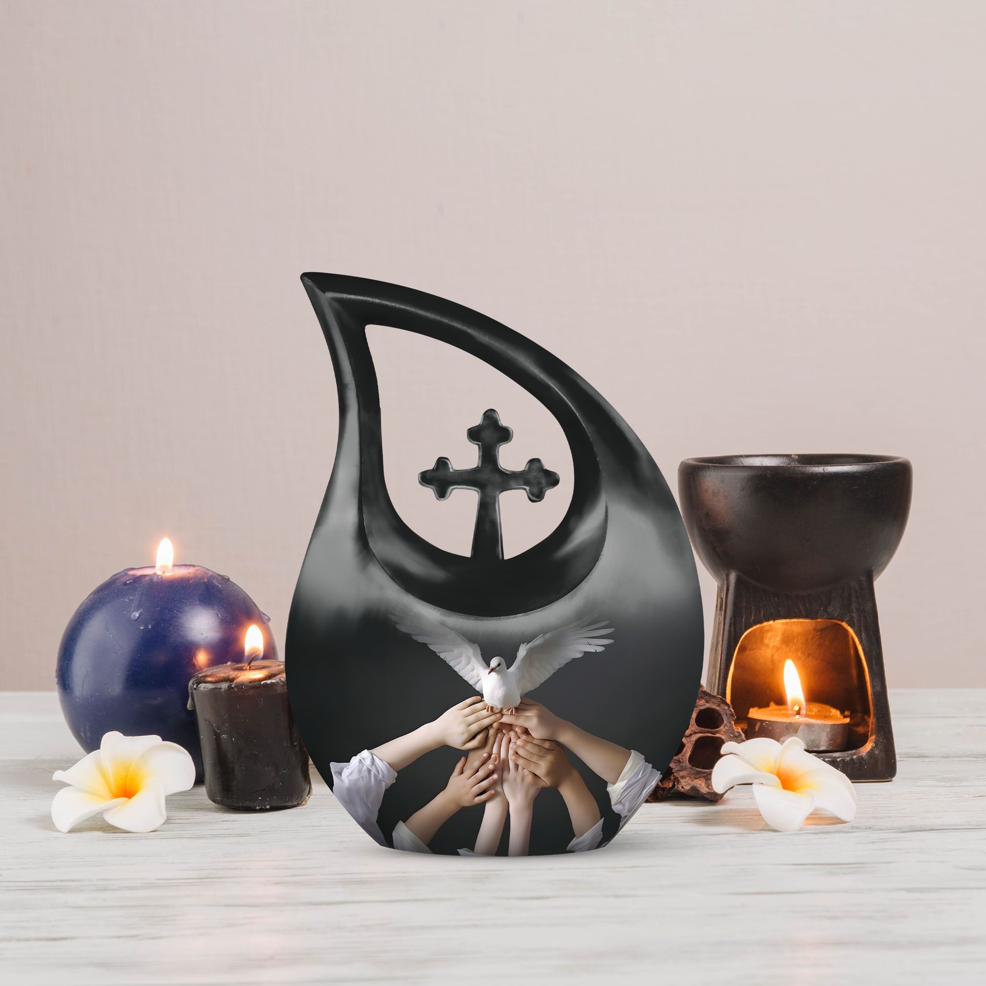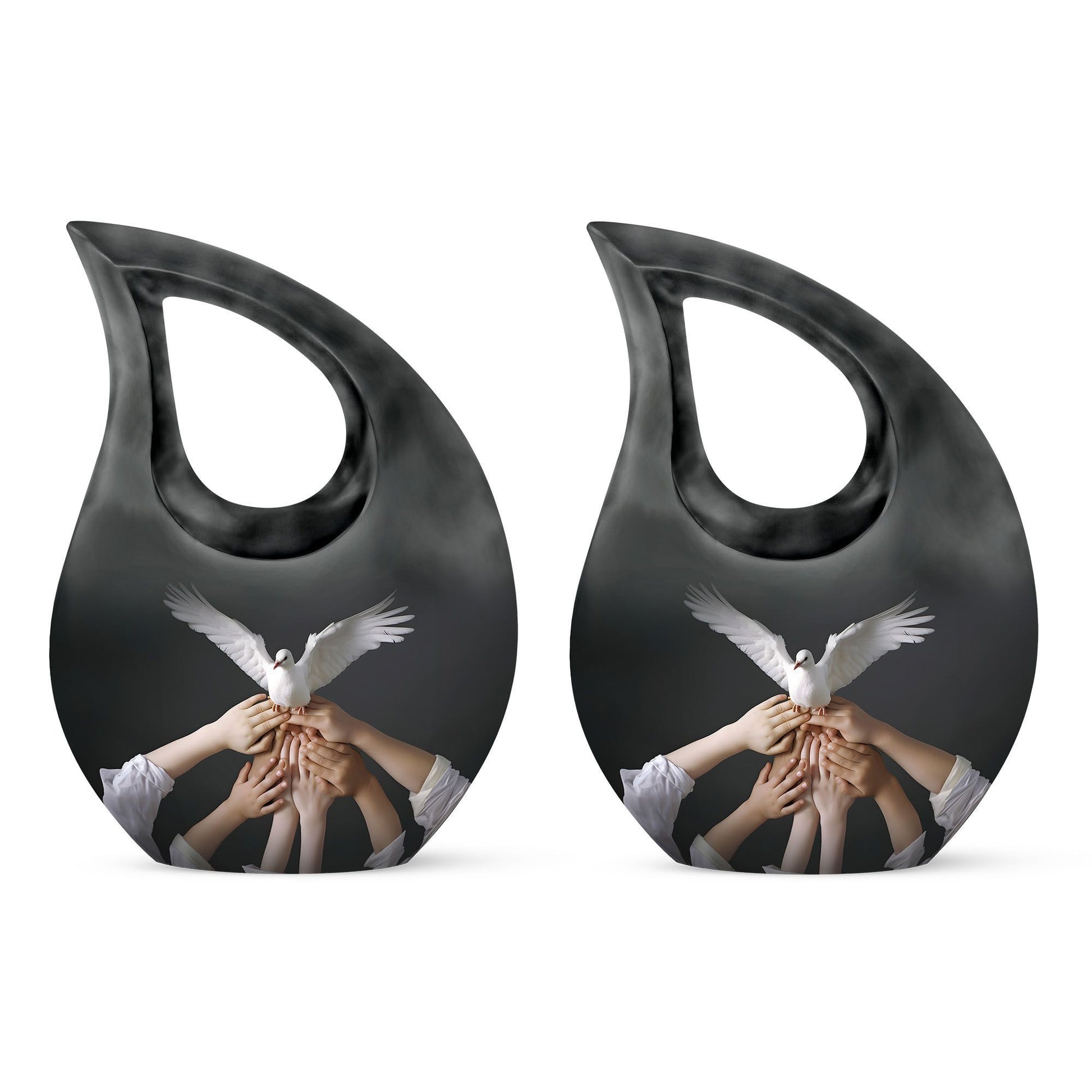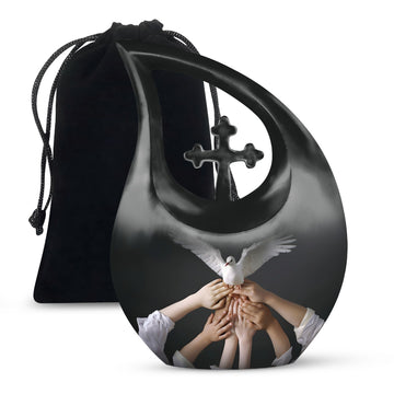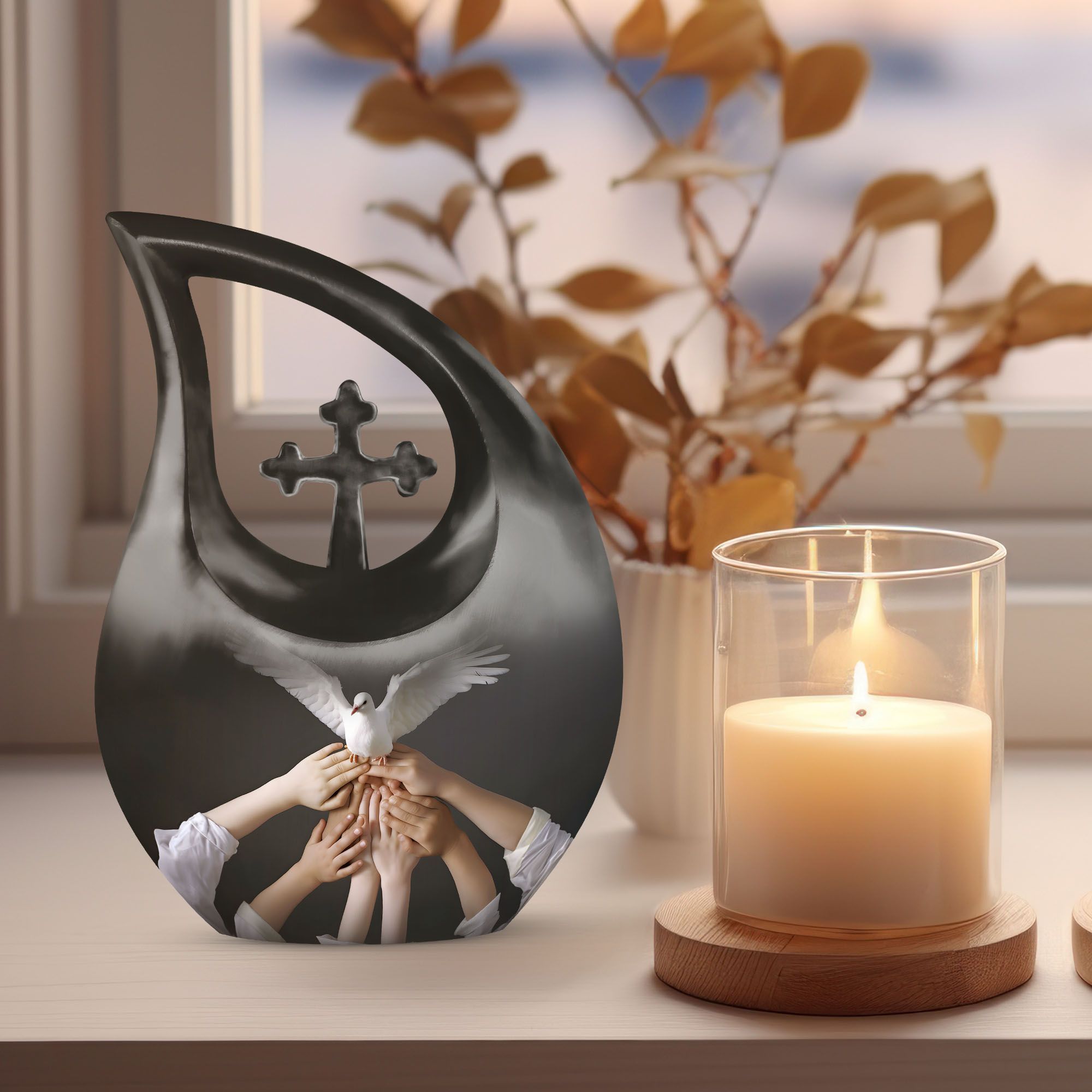 The White Dove on Human Hands Memorial Urn for Ashes Keepsake Set represents the beauty of release, love, and everlasting peace. This touching design — featuring a white dove gently resting on human hands — captures the soul’s journey toward serenity and light. Perfect for families seeking a keepsake urn set that blends artistry with meaning, this memorial brings comfort to those left behind.