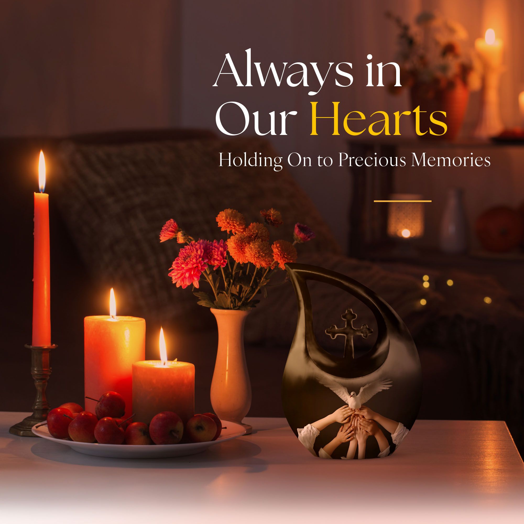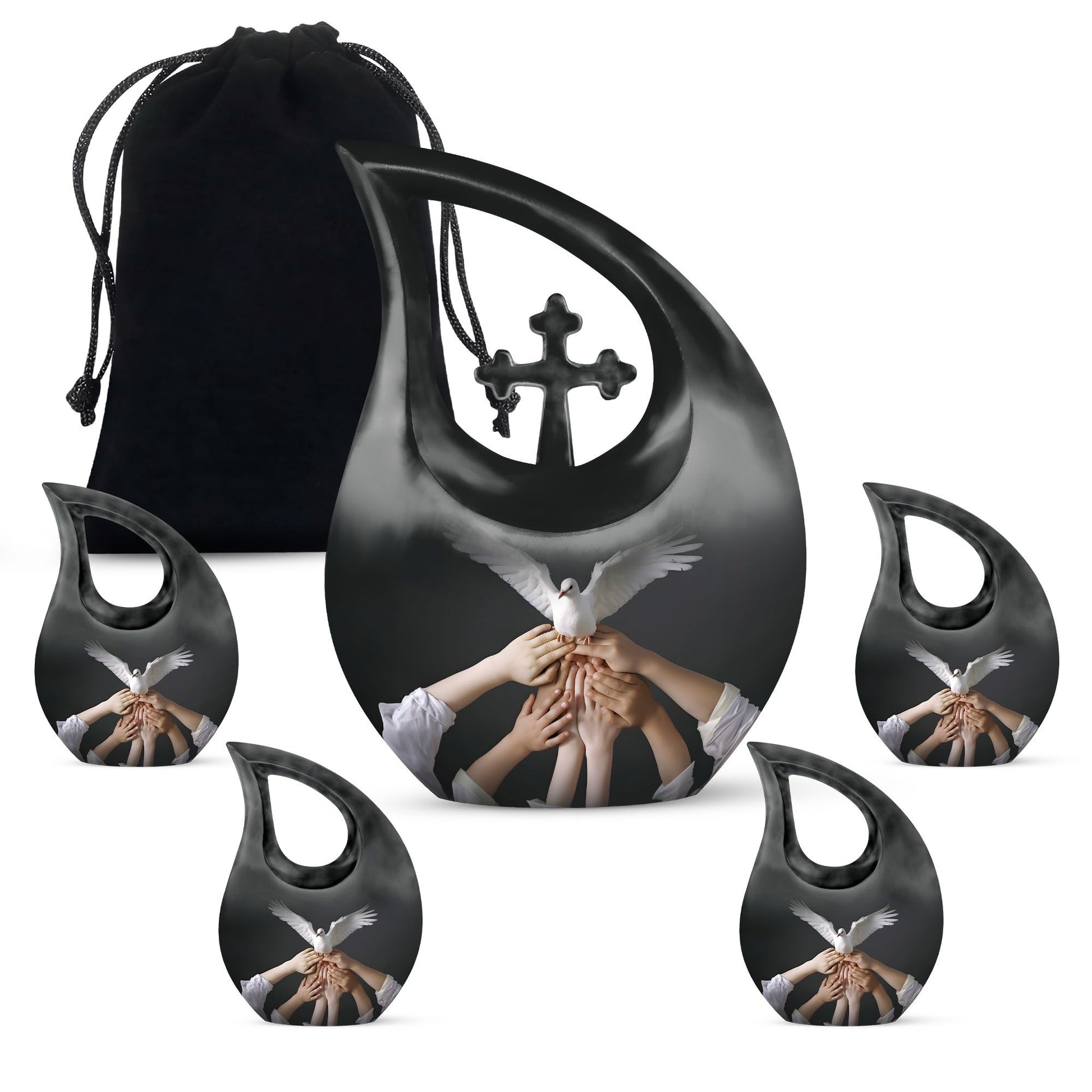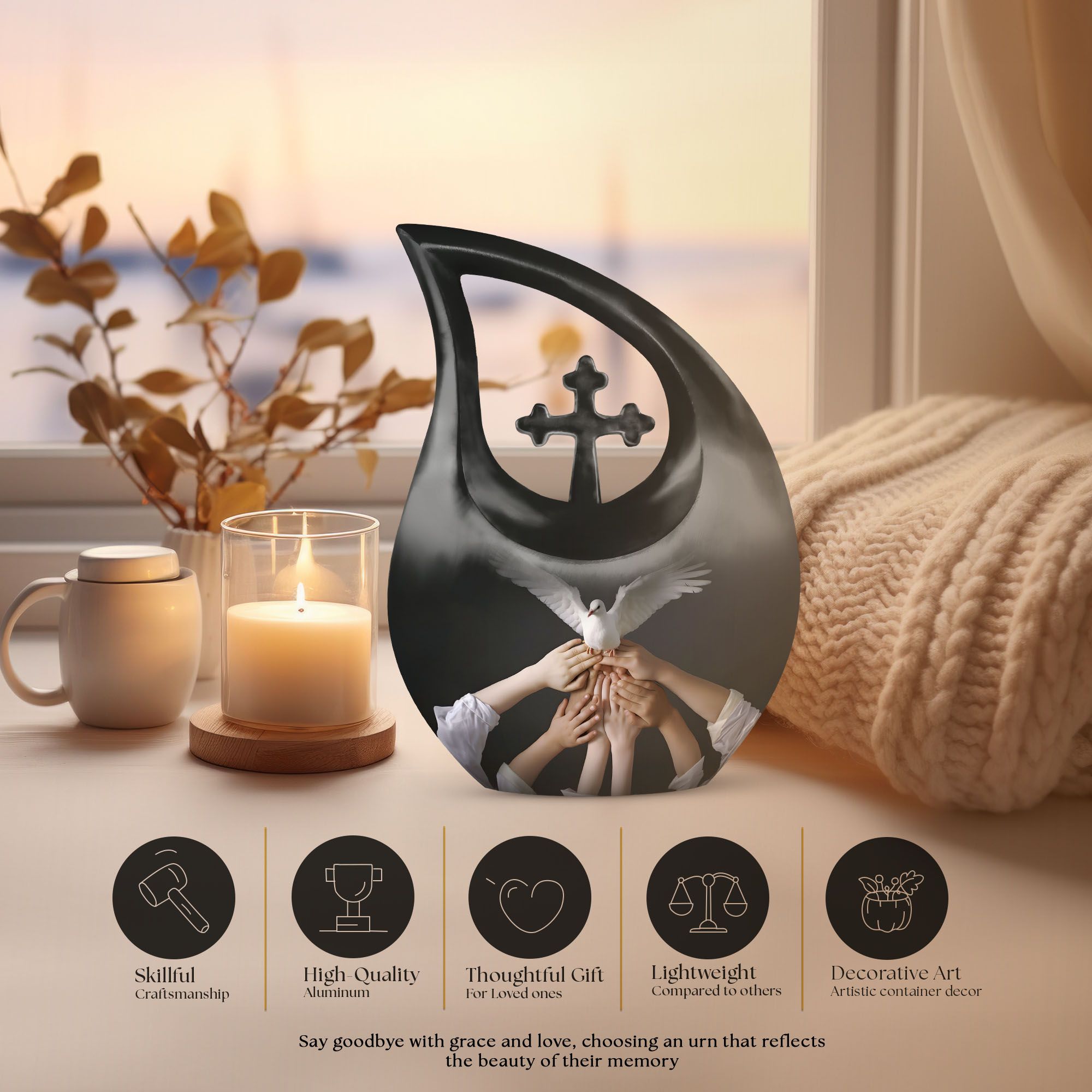 The White Dove on Human Hands Memorial Urn for Ashes Keepsake Set represents the beauty of release, love, and everlasting peace. This touching design — featuring a white dove gently resting on human hands — captures the soul’s journey toward serenity and light. Perfect for families seeking a keepsake urn set that blends artistry with meaning, this memorial brings comfort to those left behind.