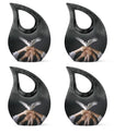Expertly handcrafted from durable aluminium, this urn keepsake combo set includes a large cremation urn and matching smaller keepsake urns for human ashes adult, allowing loved ones to share ashes while preserving unity and love. The glossy white finish with silver accents creates a pure, heavenly appearance. Each ash urn for humans keepsake includes a secure screw-top lid to keep ashes safe and protected for generations.