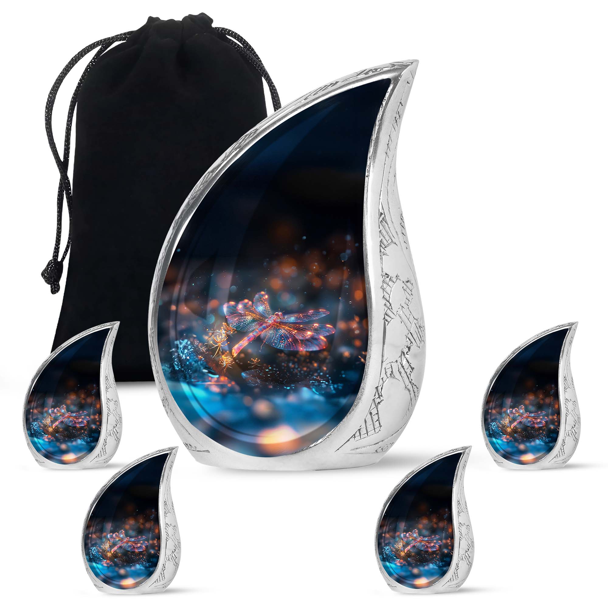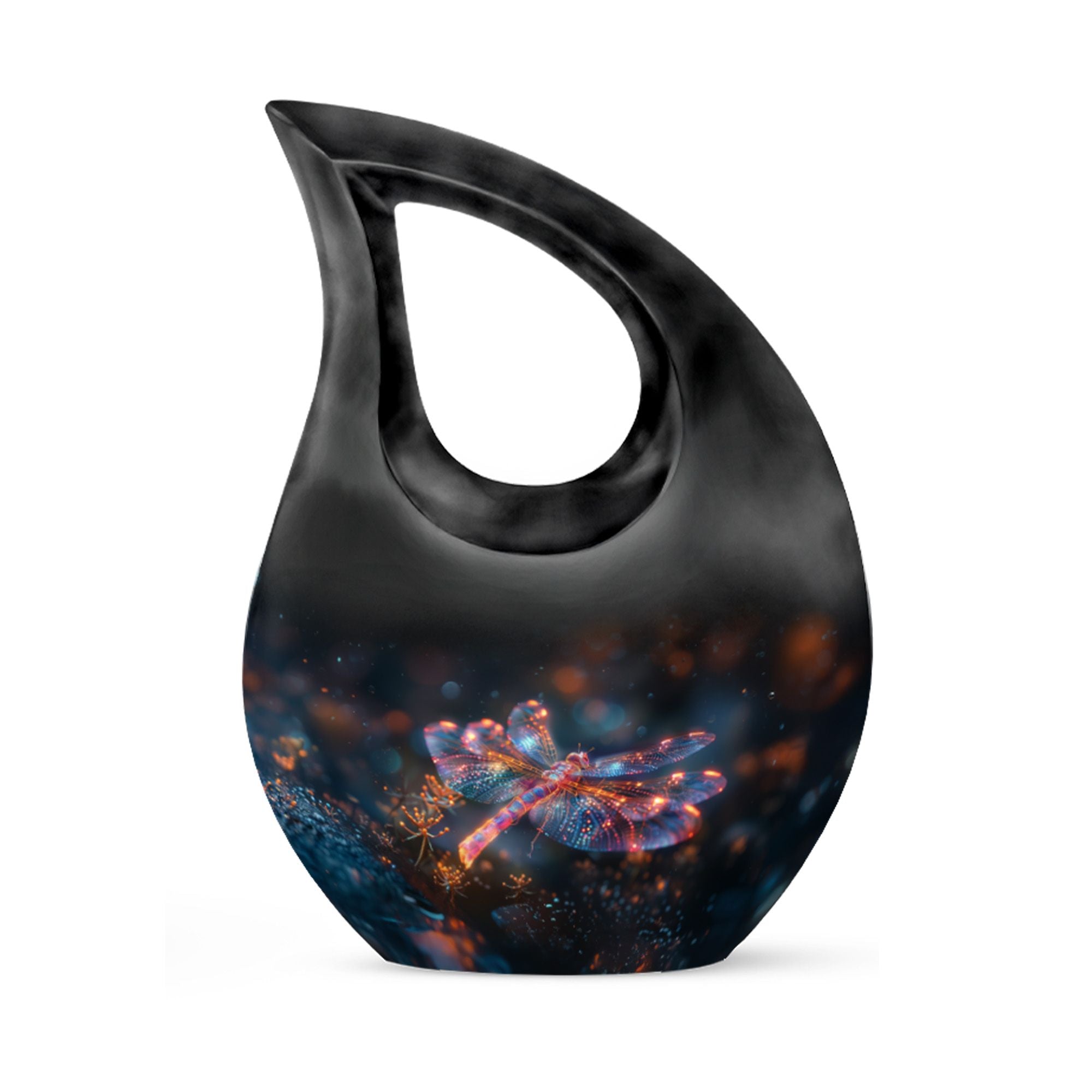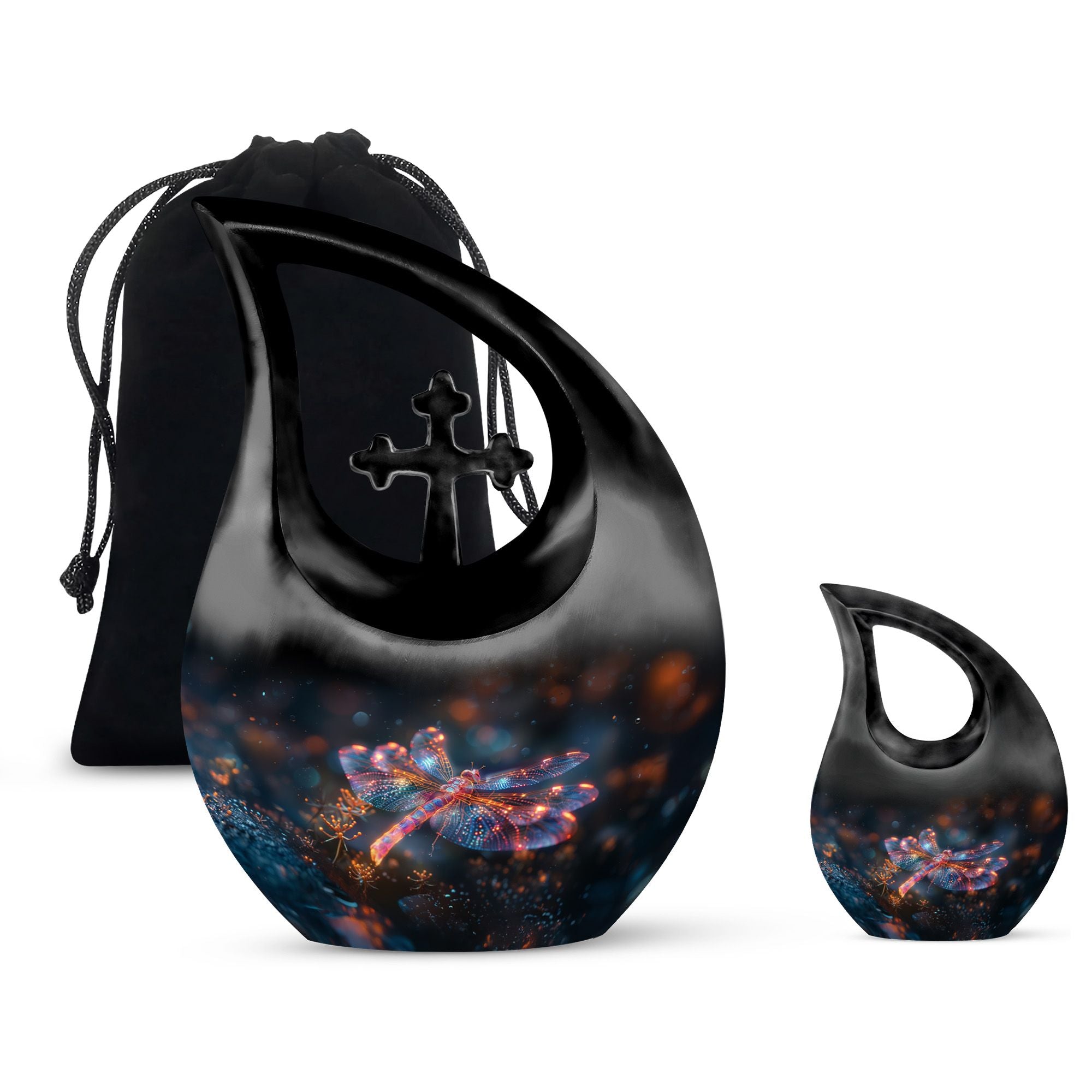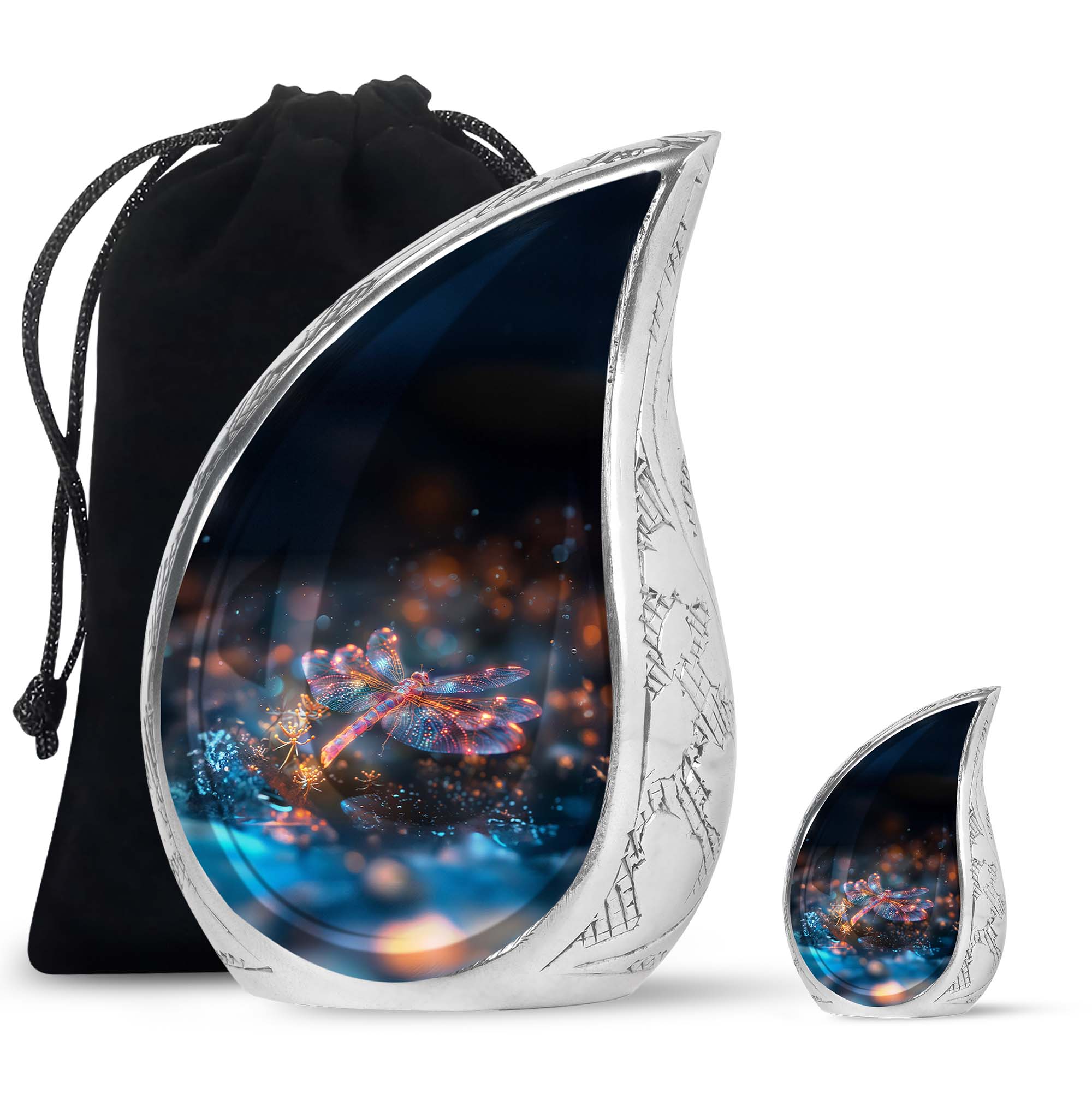 The Cosmic Dragonfly Dance Urns offer a graceful way to honor and remember a cherished loved one. Designed for large funeral urn use, they are perfect as urn adult male, urns ashes adult female, or funeral urns for adult ashes women. The delicate dragonfly motif symbolizes transformation and hope, providing comfort and a meaningful tribute for families during times of loss.