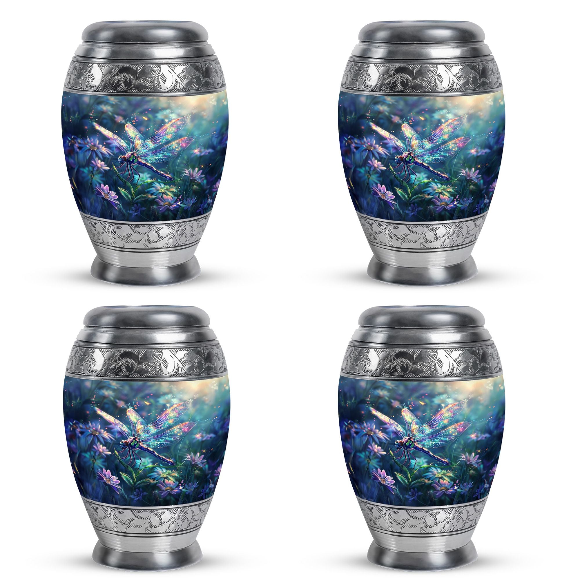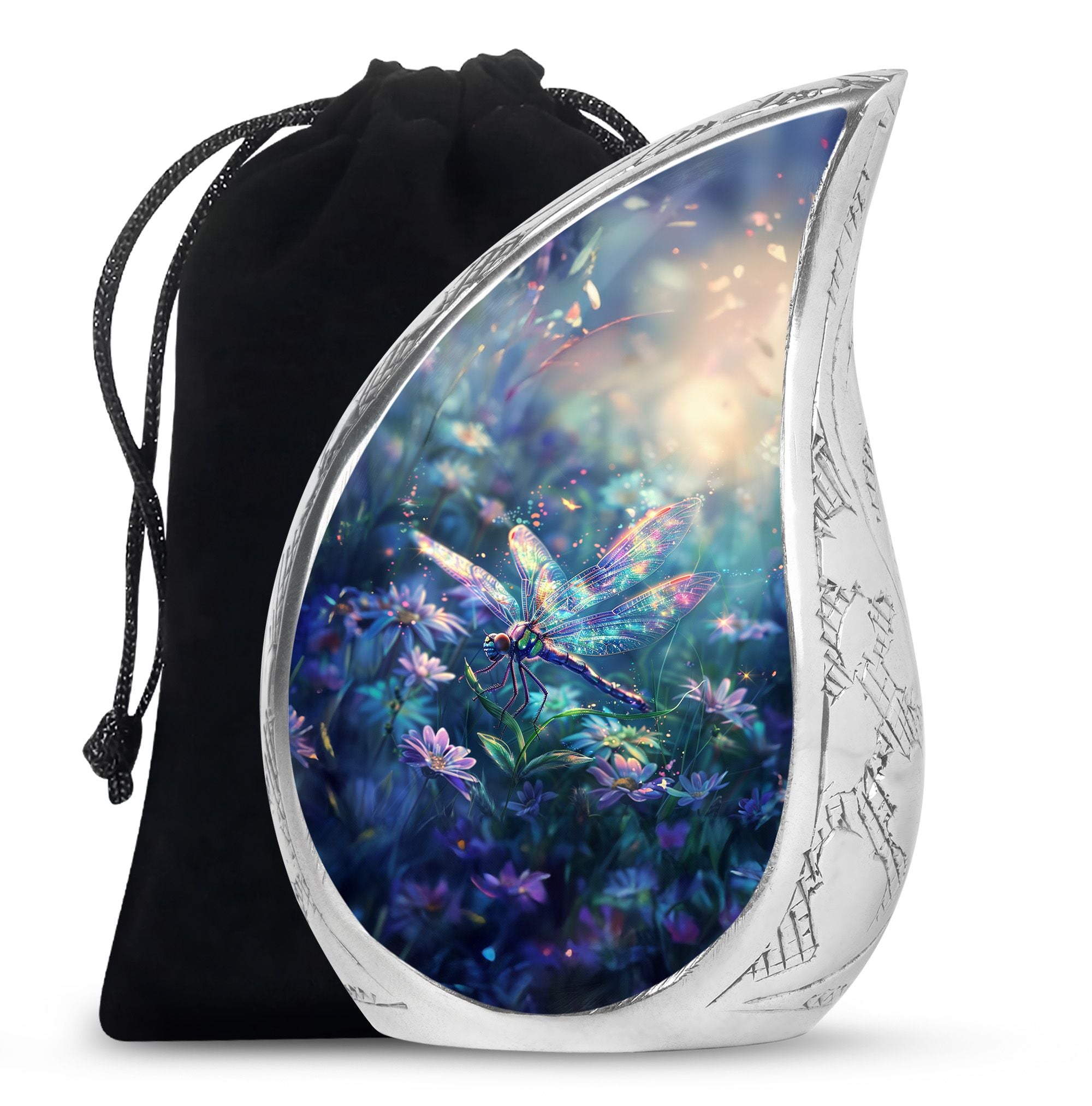 Expertly crafted from durable aluminum, this urn features a cosmic finish with a delicate dragonfly motif—an enduring symbol of renewal and hope. Its secure screw-top lid ensures the ashes are safely preserved, making it ideal as urns for ashes adult male large, large cremation urns, or large urns for human ashes adult female. Thoughtfully designed, it is as strong as it is beautiful, fitting seamlessly into memorial services or home displays.
