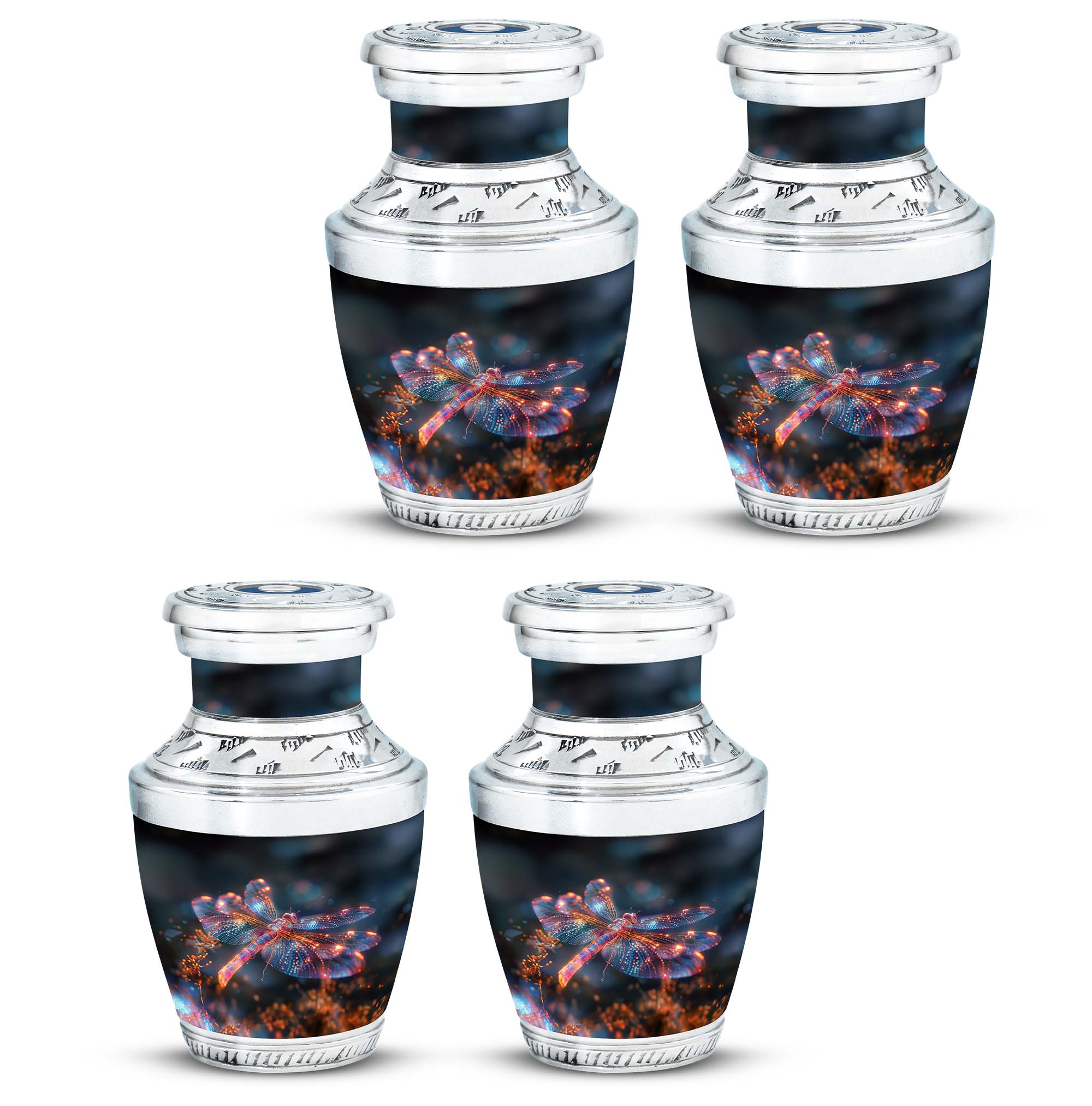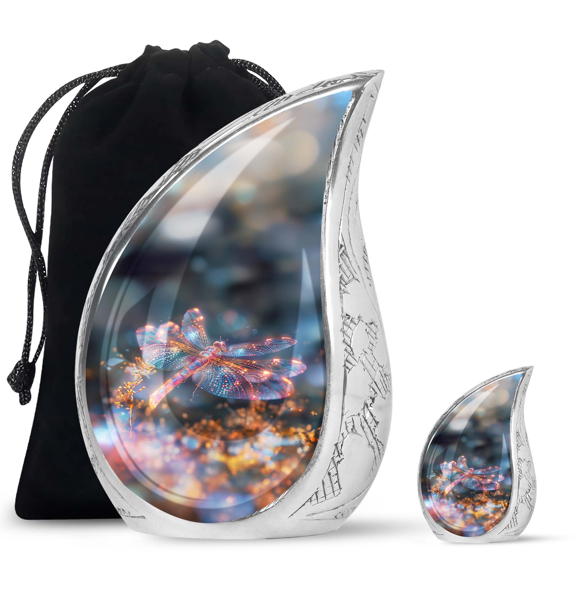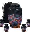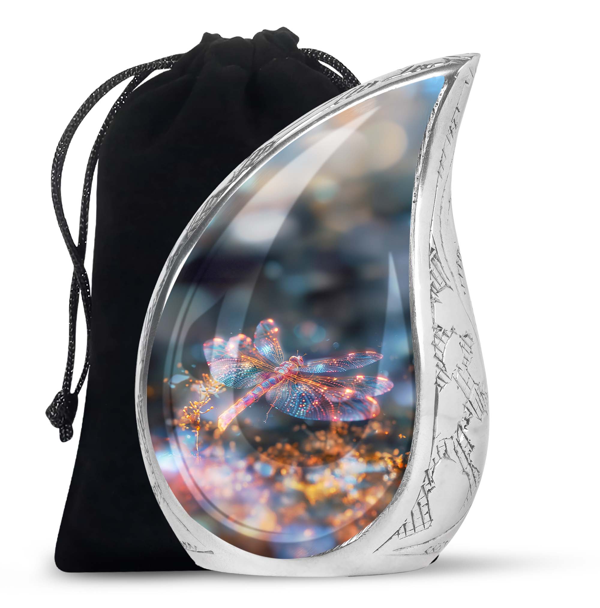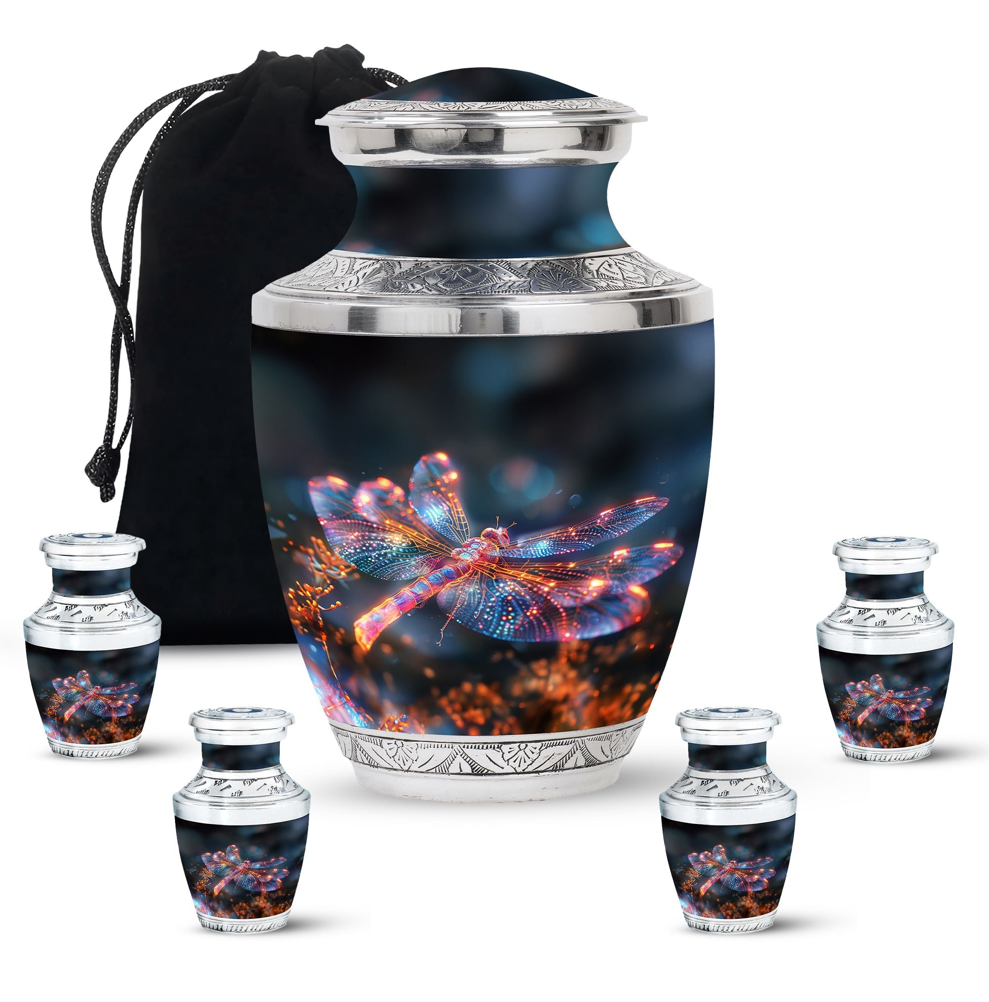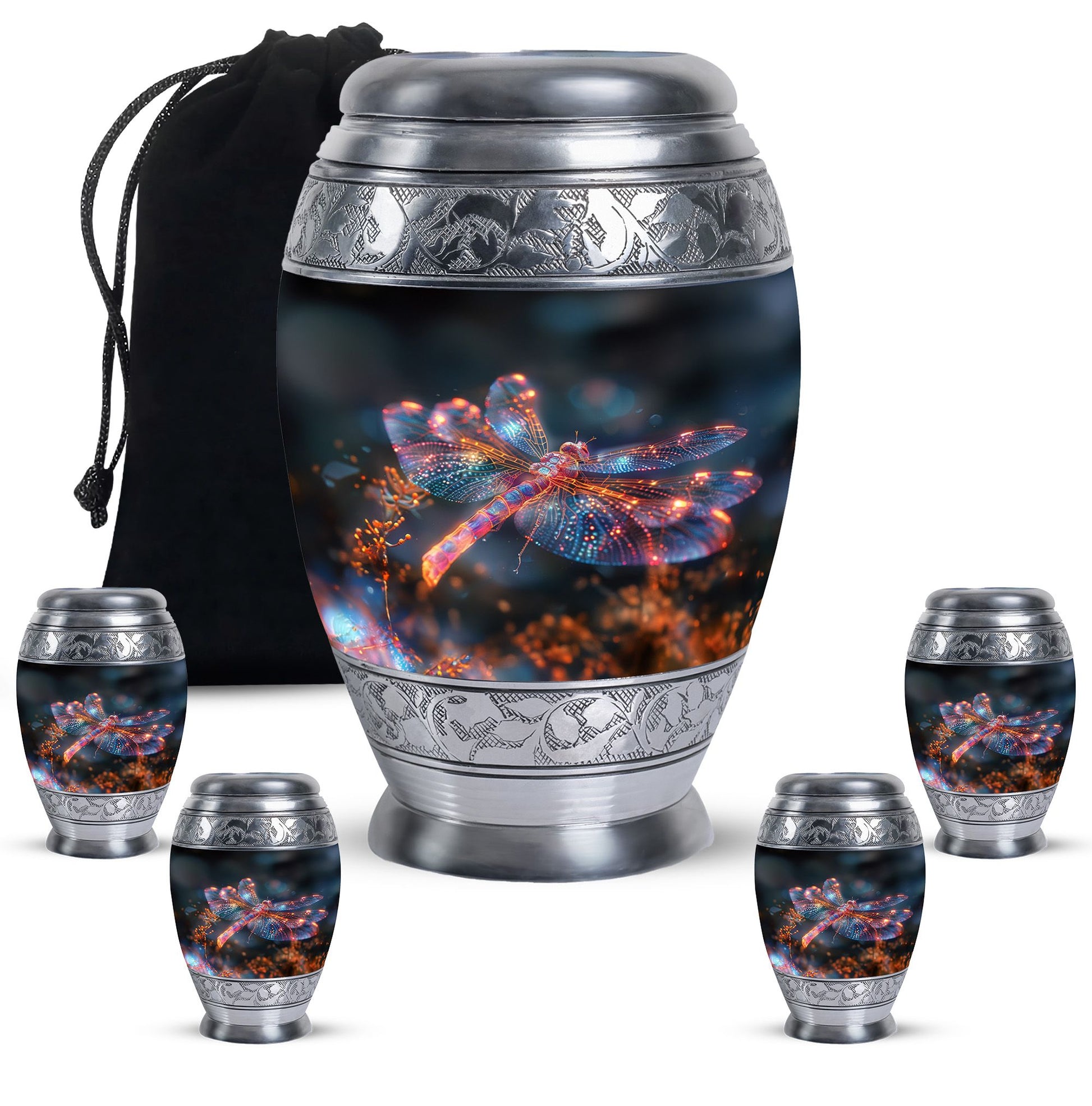 Crafted with precision and compassion, this piece blends fine craftsmanship with durable materials. The vibrant dragonfly motif, glowing in warm fiery tones, represents renewal and peace—making it one of the most meaningful adult urns for men & women. Made of premium aluminium, it provides secure storage for ashes and can be used as a burial urn or a stunning display keepsake. Its versatility makes it perfect for those seeking urns for human ashes women or mens urns for human ashes with equal elegance.