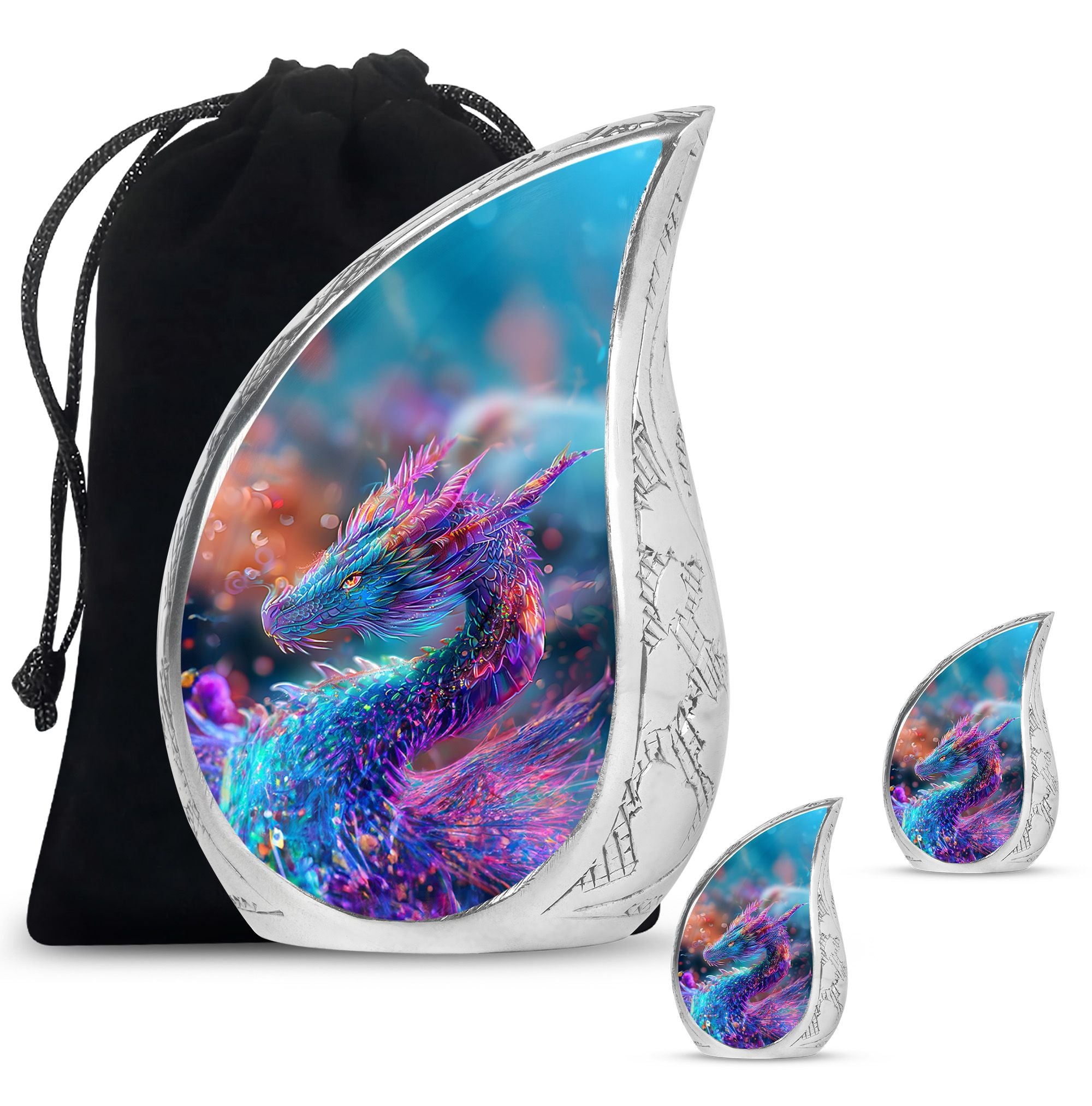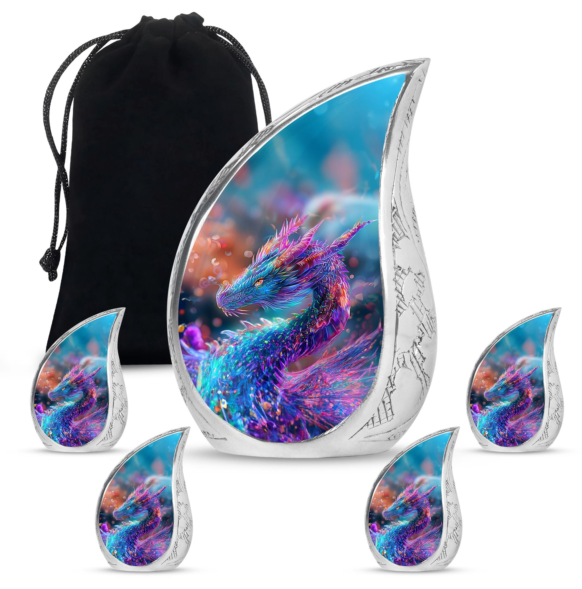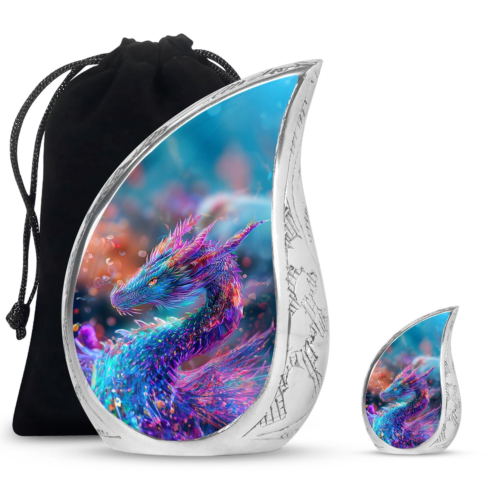 Crafted by hand from durable aluminum, this funeral urn is designed to hold the full remains of an adult, making it ideal for those in search of adult urns for women, funeral urns for men, or adult urns for men & women. Its dragon motif represents protection and strength, creating a powerful visual tribute for a loved one who left a lasting impact.