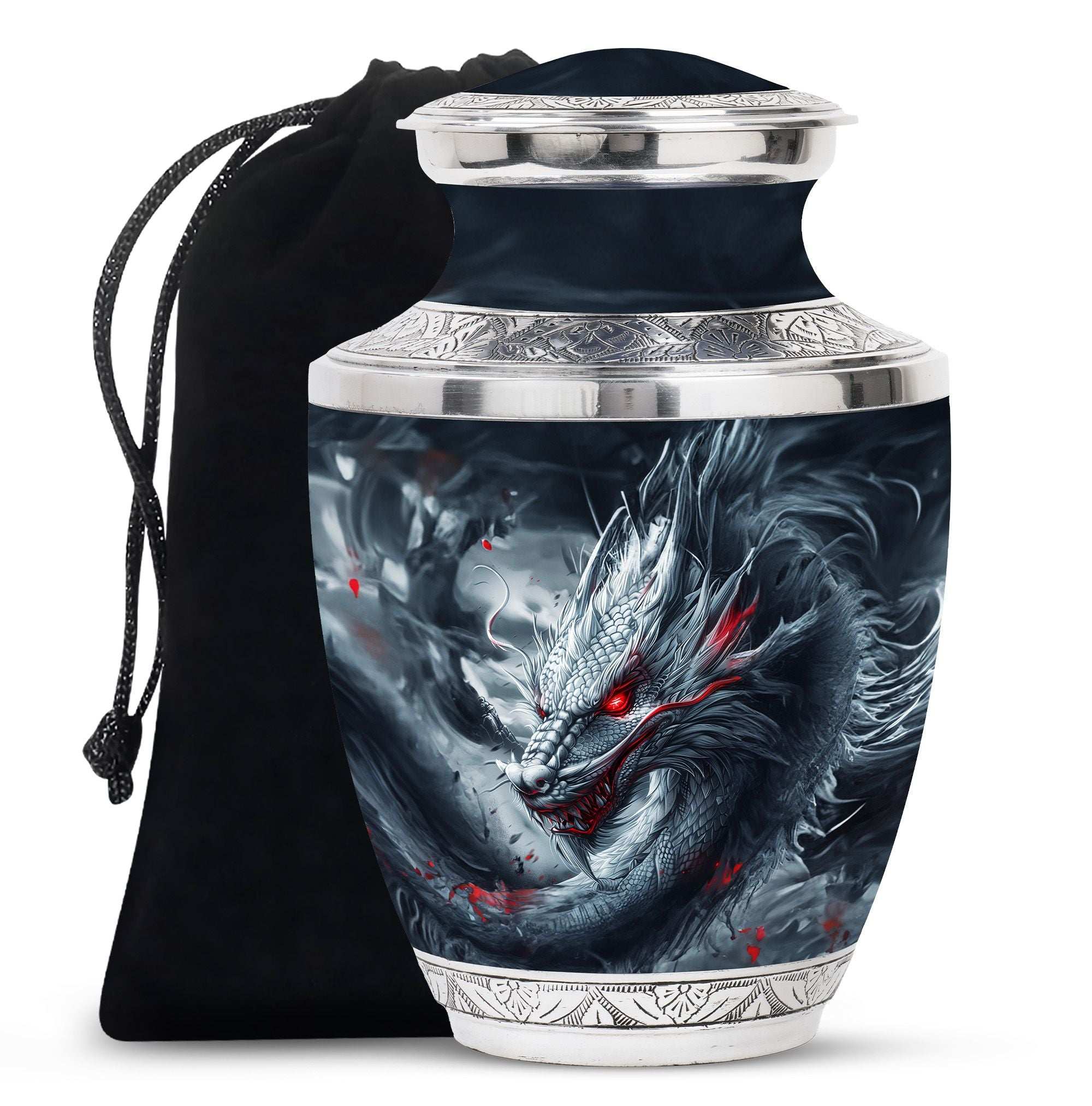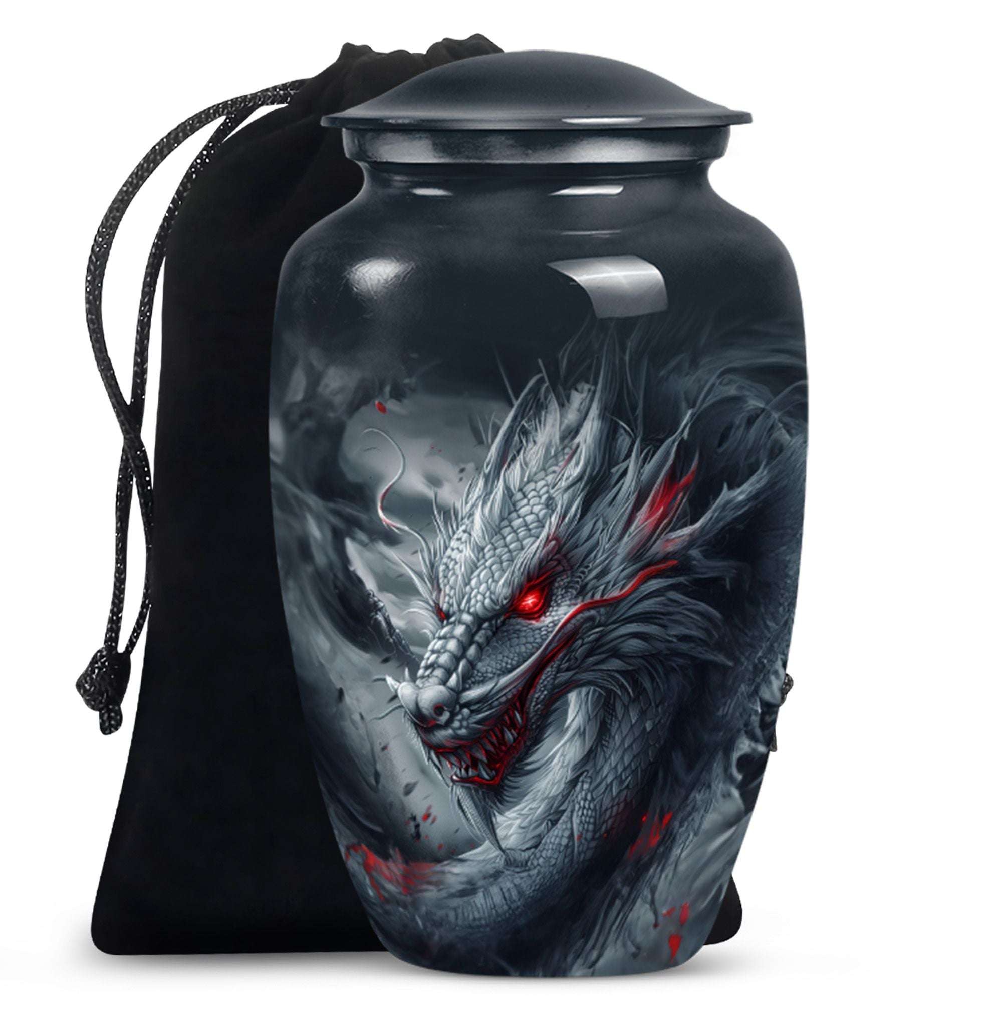 This dragon urn for human ashes is a powerful tribute for honoring the memory of a loved one. Designed with a fierce grey finish and striking red eyes, it represents strength, courage, and eternal protection. Perfect as urns for ashes adult male large or cremation urns for ashes for women, it offers families a dignified way to preserve precious memories.