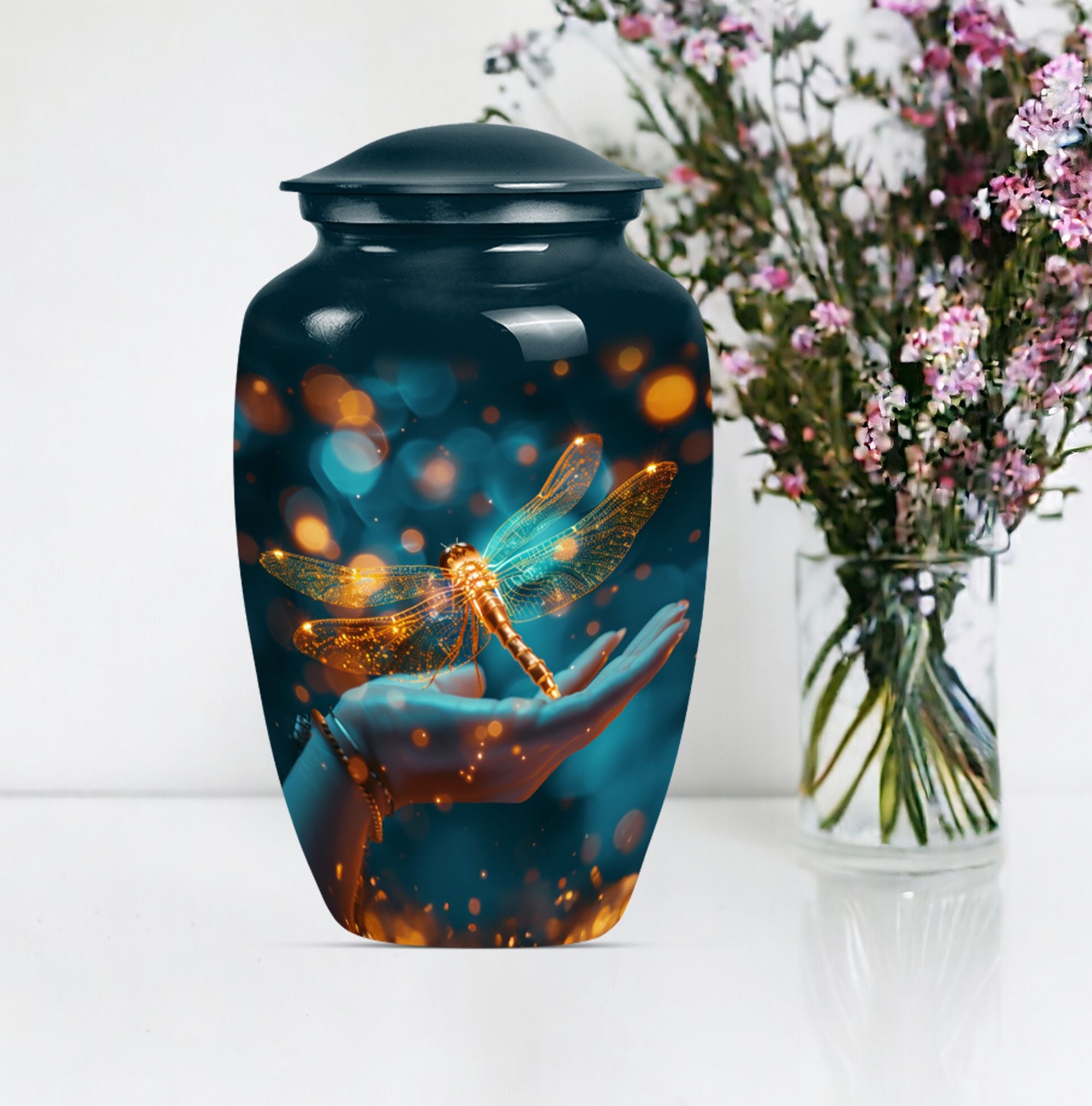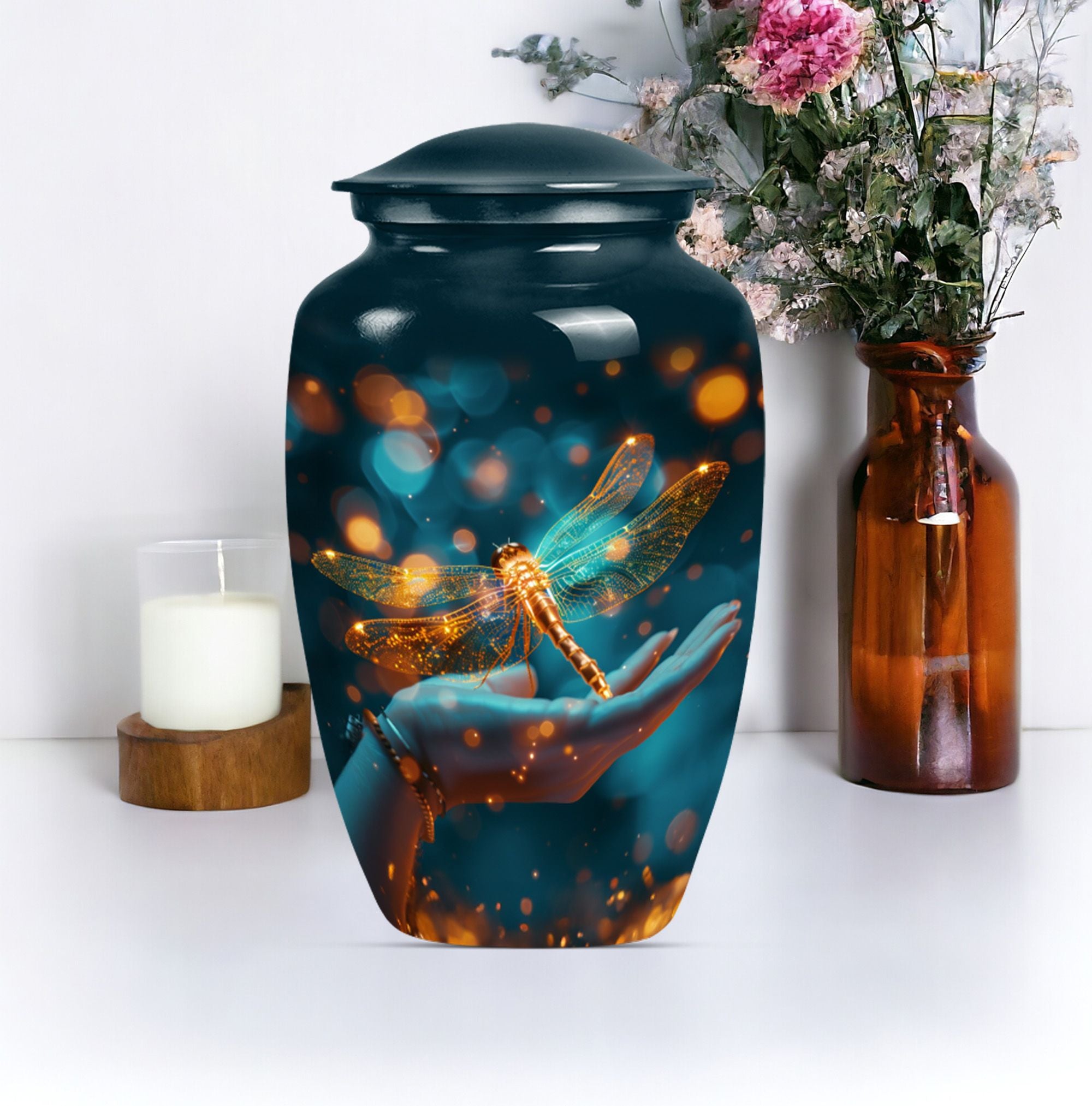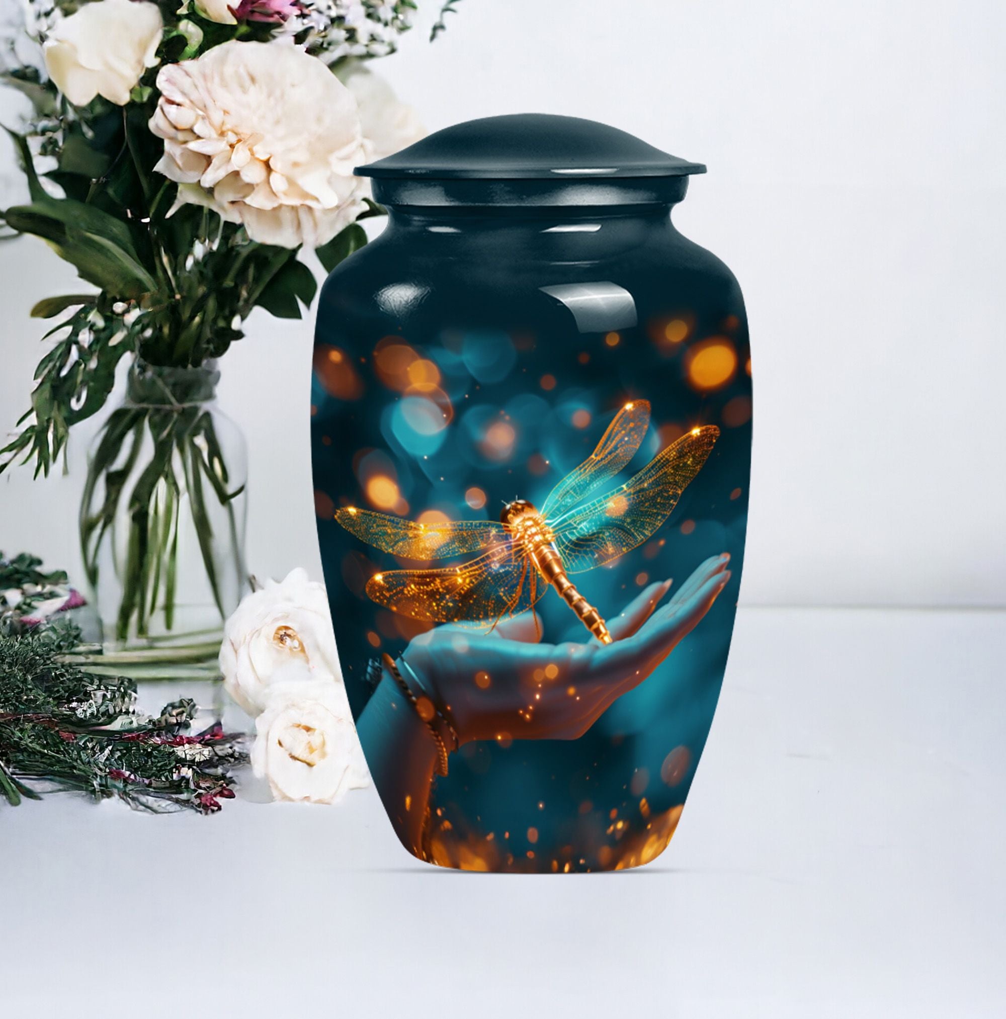 Celebrate a life full of light and beauty with this Glowing Dragonfly Classy Cremation Urn for Adult Men & Women — a stunning and symbolic tribute to your loved one. Featuring a softly glowing dragonfly design, this urn blends elegance with meaning, representing peace, transformation, and eternal connection.