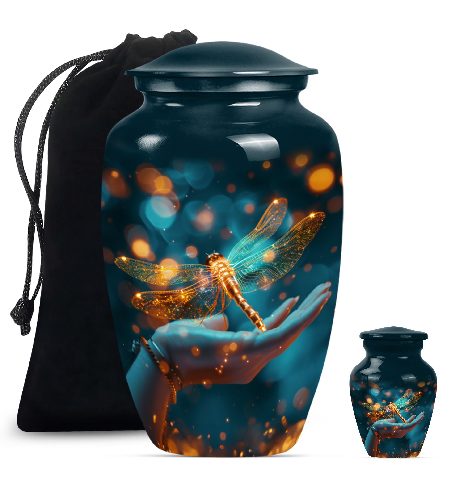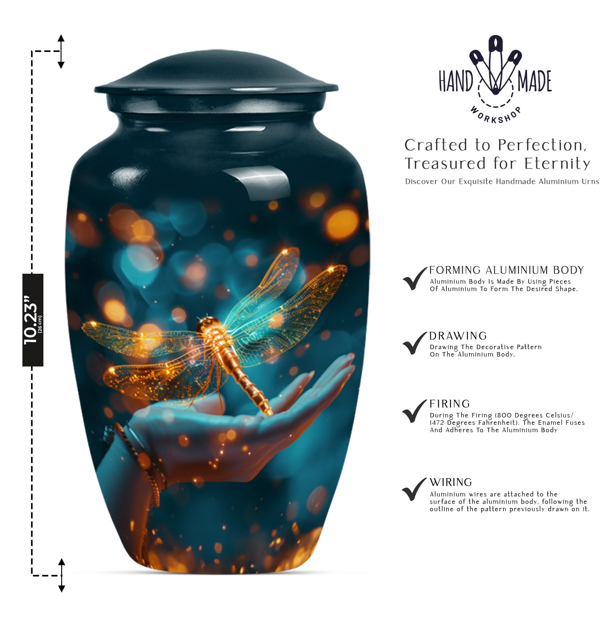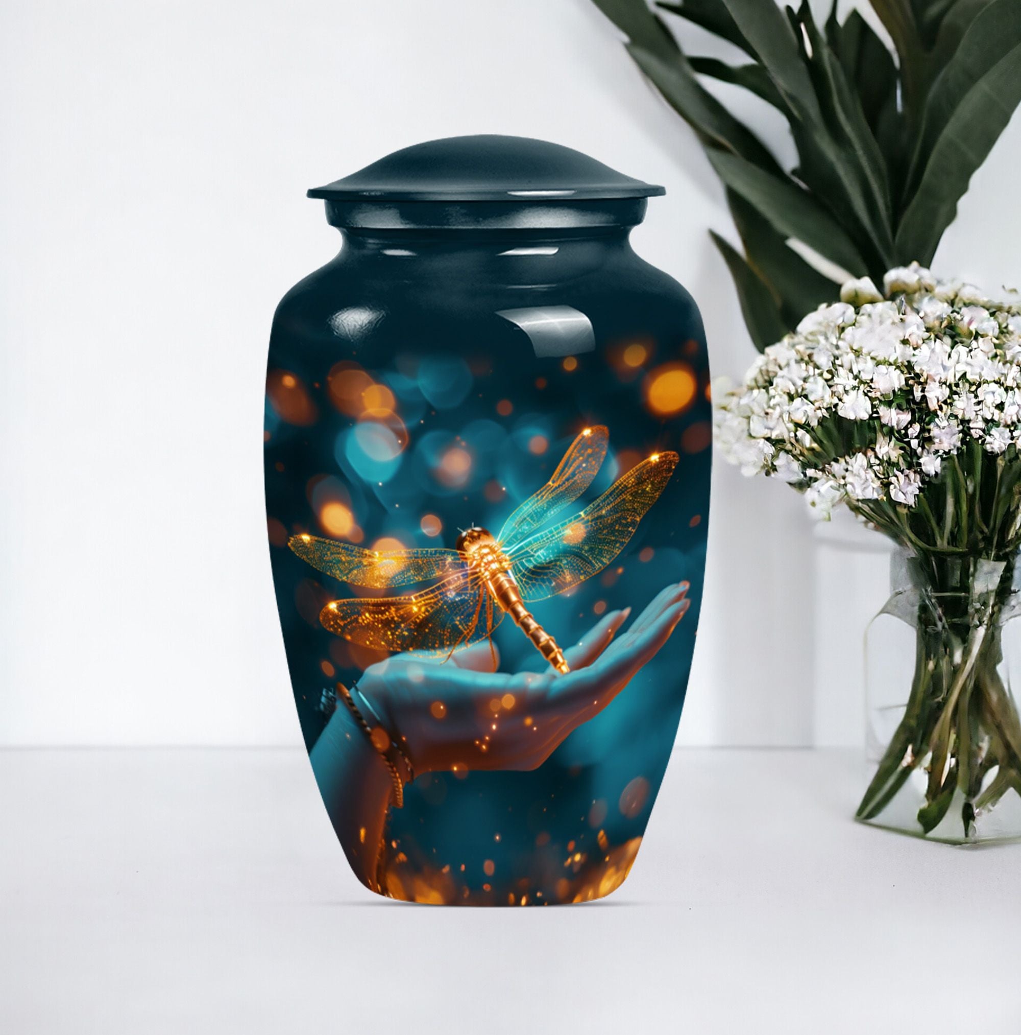 Celebrate a life full of light and beauty with this Glowing Dragonfly Classy Cremation Urn for Adult Men & Women — a stunning and symbolic tribute to your loved one. Featuring a softly glowing dragonfly design, this urn blends elegance with meaning, representing peace, transformation, and eternal connection.