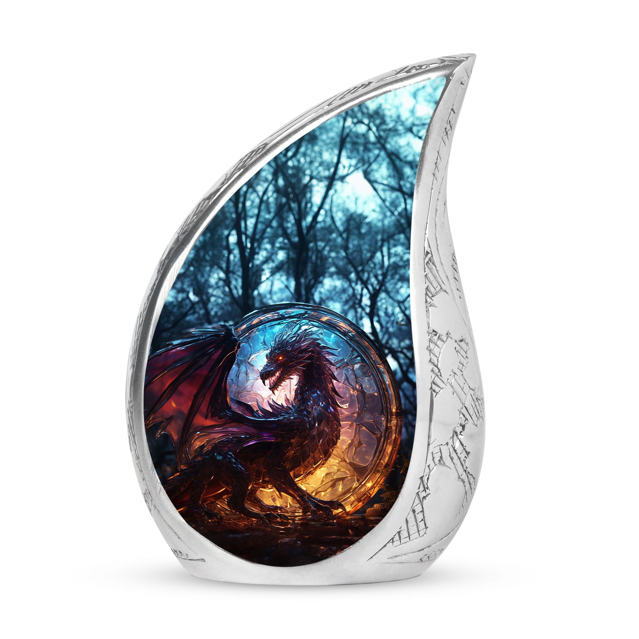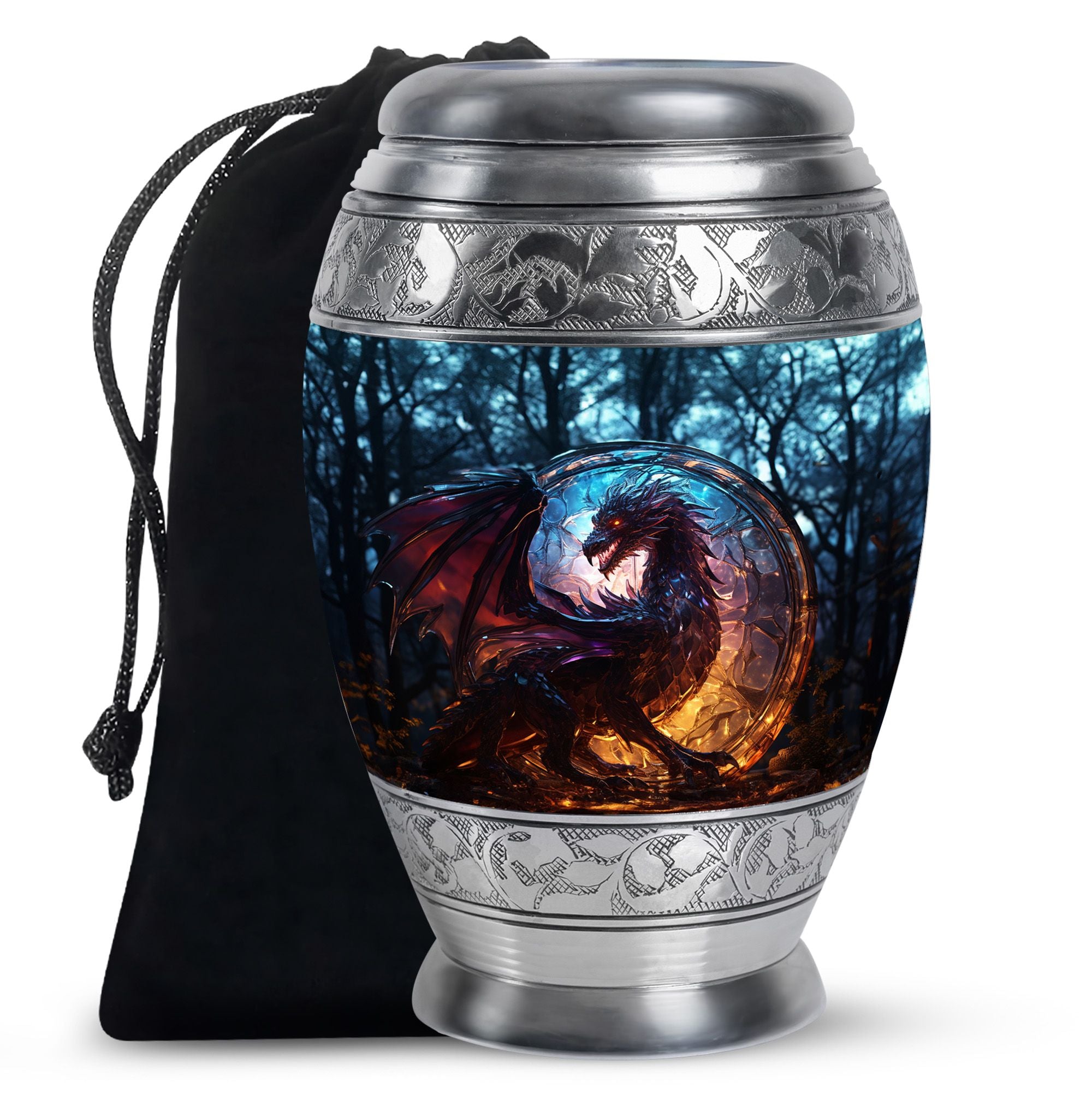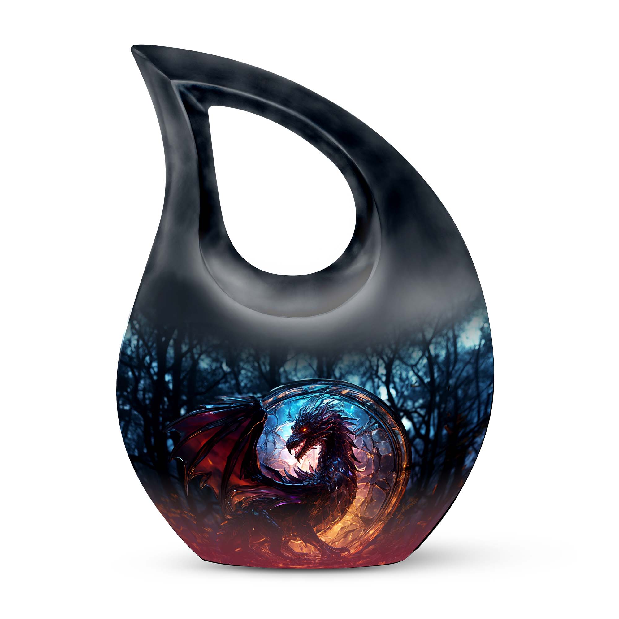 The Dark Flame Dragon cremation urn for human ashes radiates strength, honor, and eternal protection. Featuring a majestic dragon design surrounded by deep ember tones, this urn embodies the power of the spirit and the light that continues to burn within cherished memories. It is a perfect tribute for those who lived fearlessly and are remembered with unwavering love.
