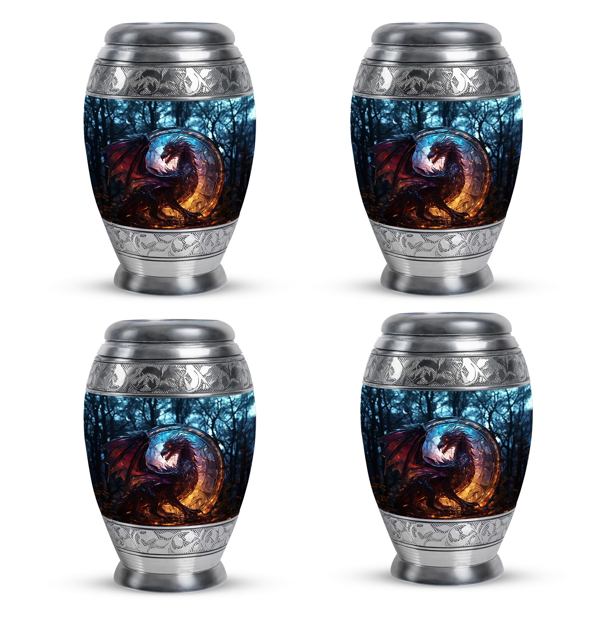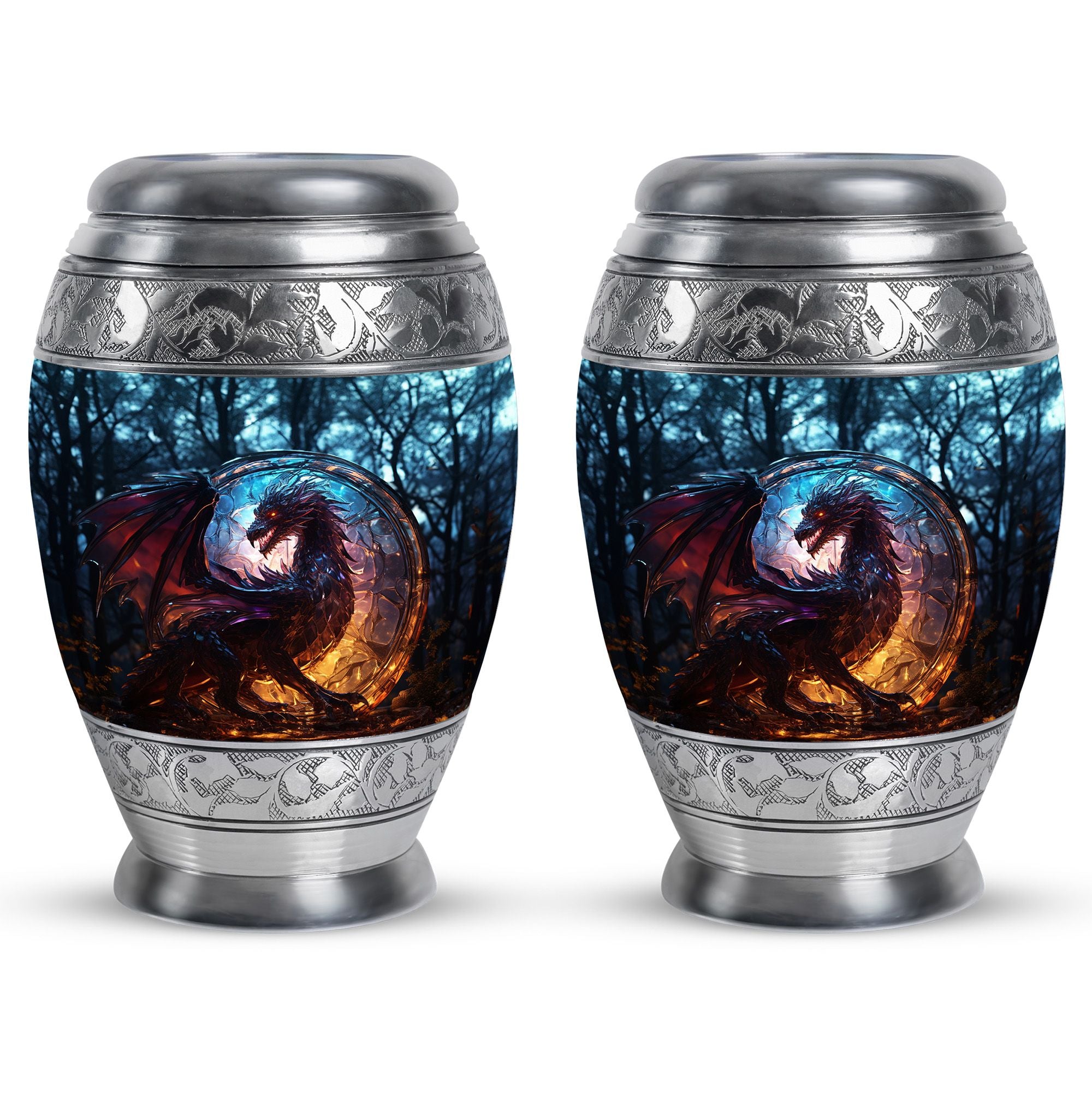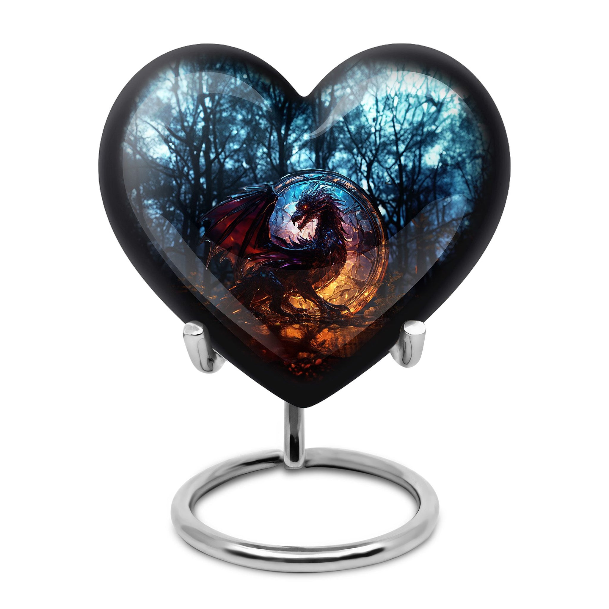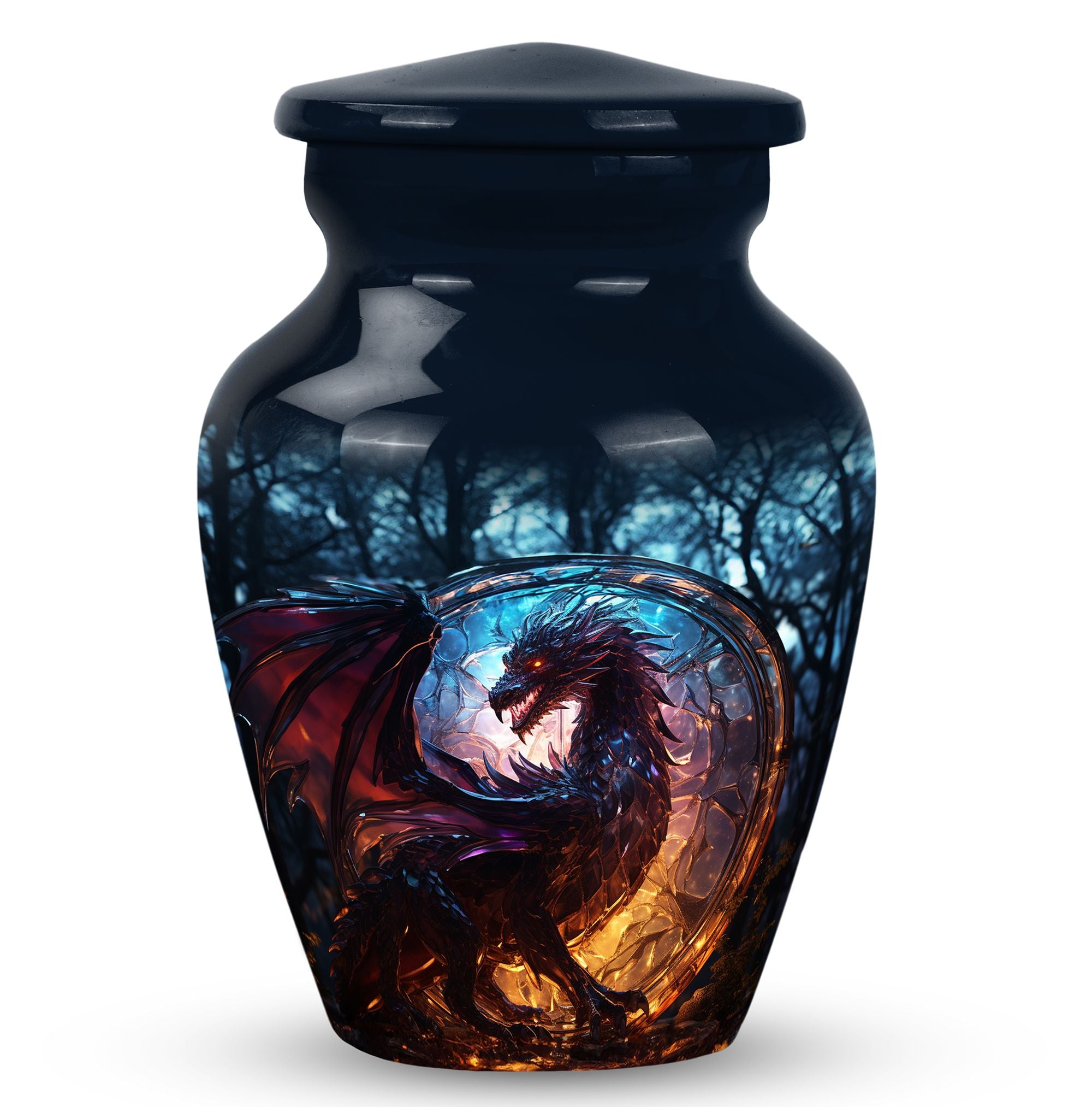 The Dark Flame Dragon cremation urn for human ashes radiates strength, honor, and eternal protection. Featuring a majestic dragon design surrounded by deep ember tones, this urn embodies the power of the spirit and the light that continues to burn within cherished memories. It is a perfect tribute for those who lived fearlessly and are remembered with unwavering love.