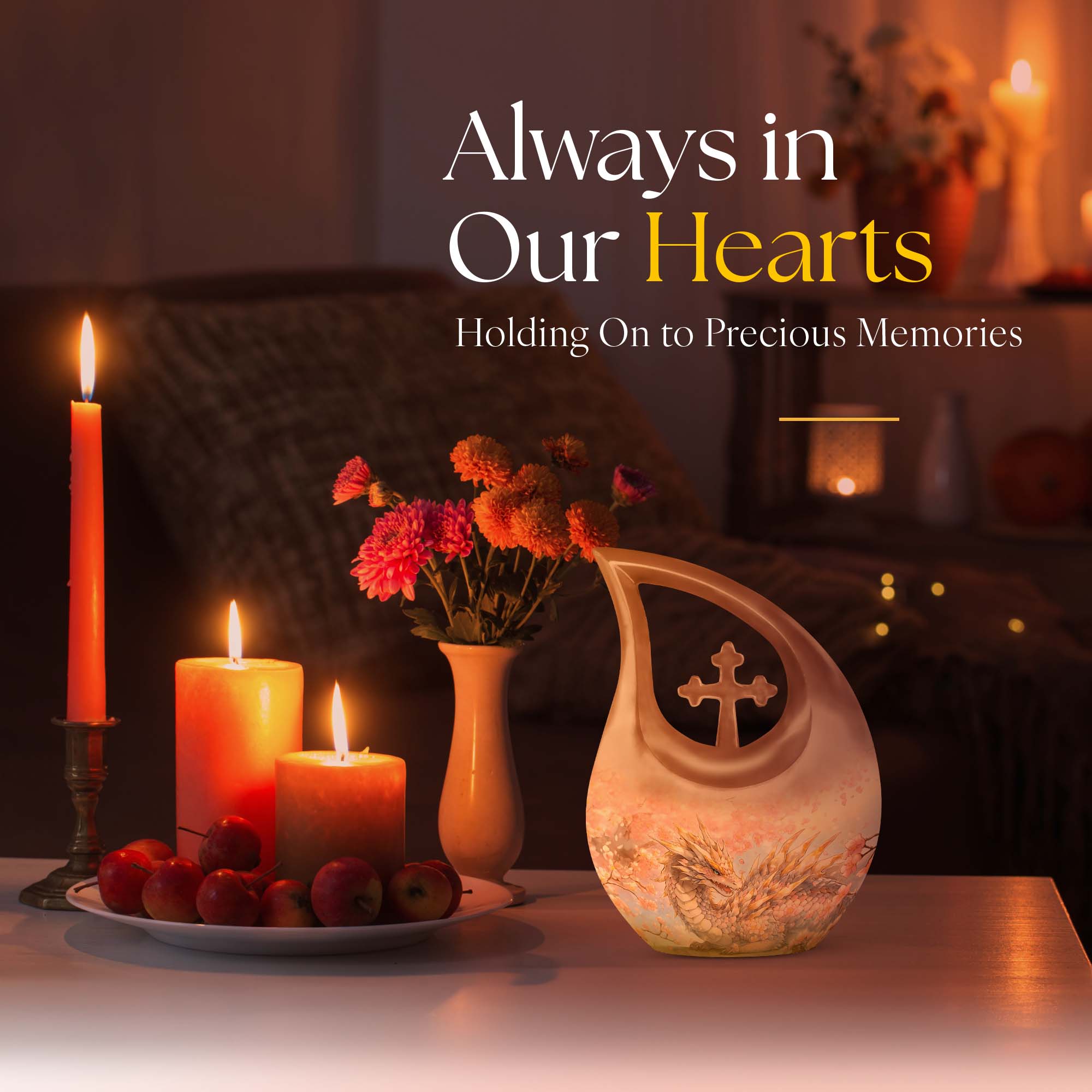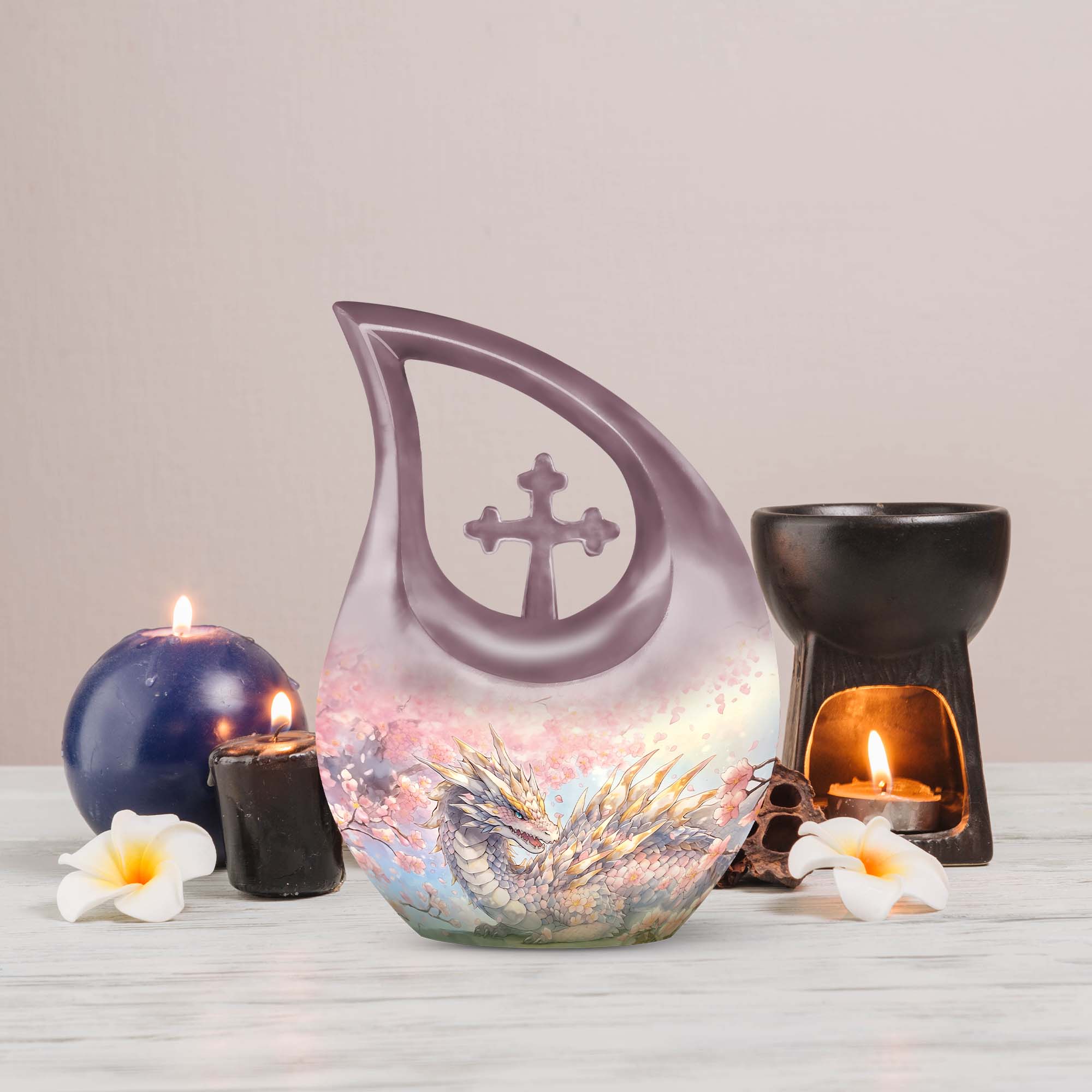 The Pink Cherry Blossom Dragon Memorial Urn brings together strength and serenity, creating a peaceful tribute for remembering a loved one. With its soft blossom design and protective dragon imagery, this urn offers a meaningful resting place suited for an urn for adult male & female and cherished as one of the most beautiful urns women appreciate for its gentle elegance.
