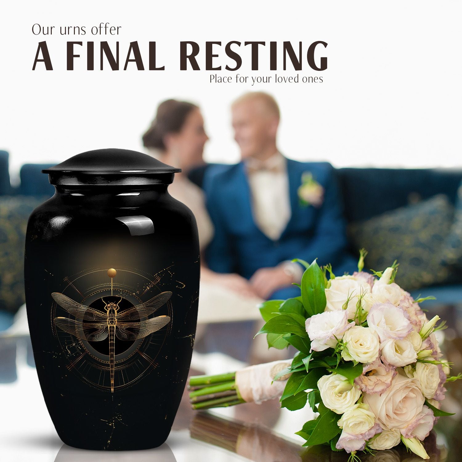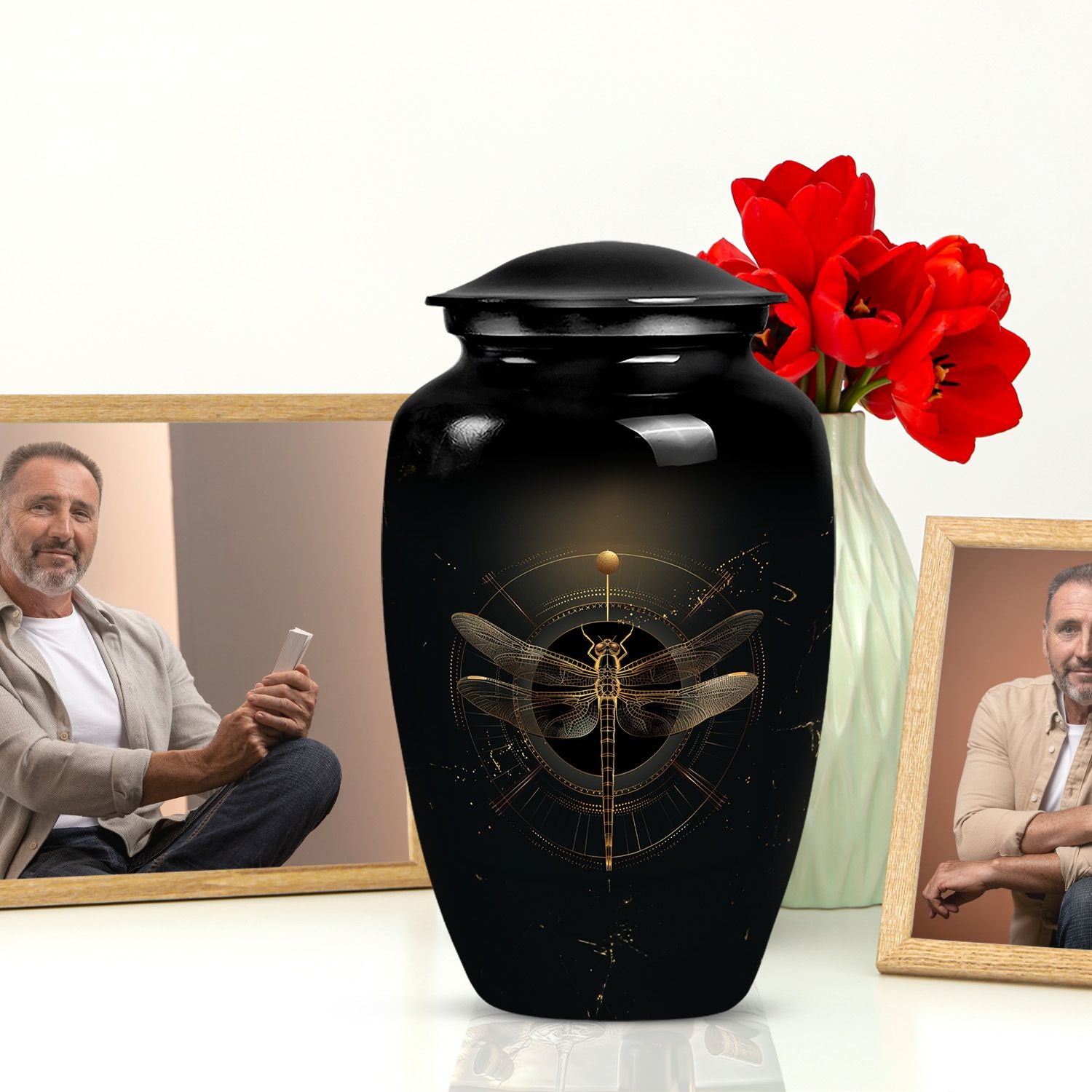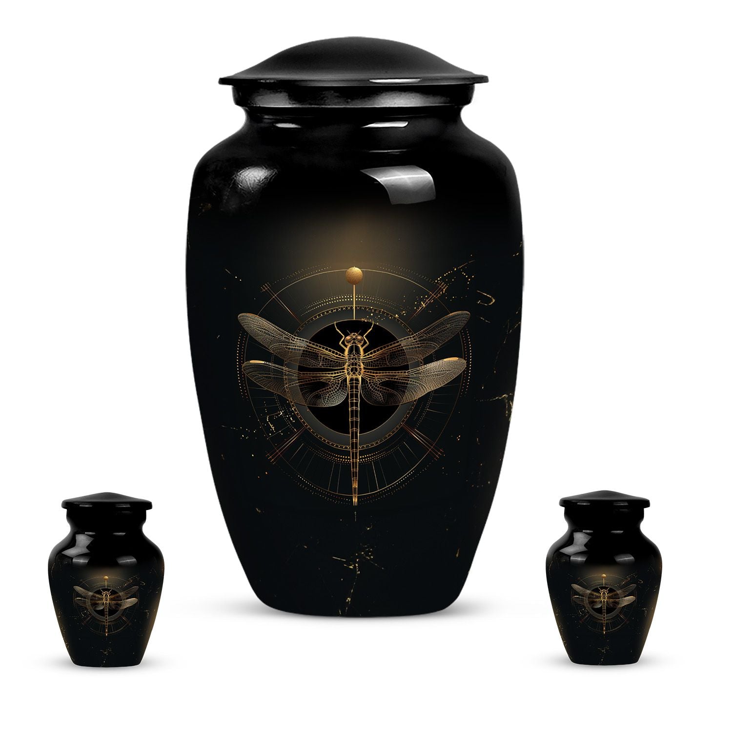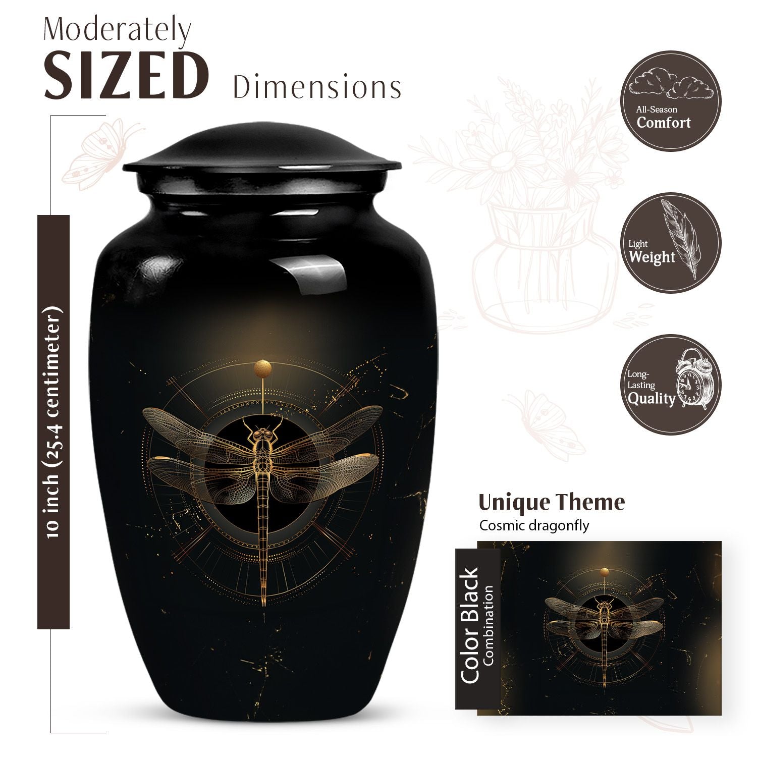 Celebrate the life and memories of your loved ones with the Black Cosmic Dragonfly Cremation Urn. Designed to honor every soul, this exquisite urn is ideal as urns for human ashes women, cremation urns women, or funeral urns men, offering a dignified way to preserve their legacy.