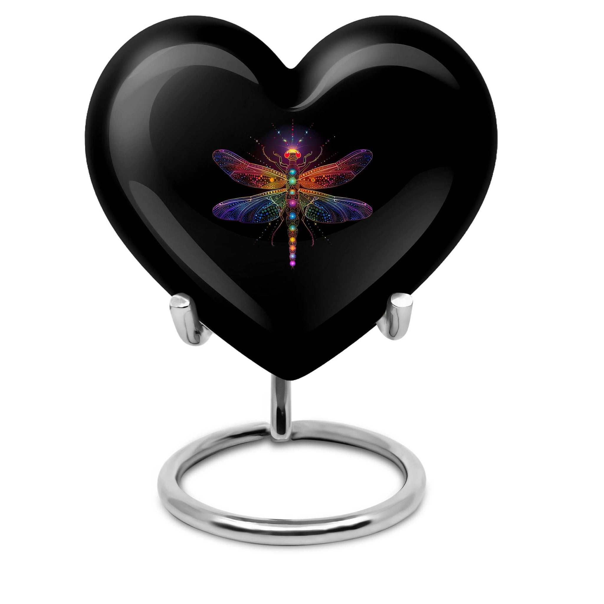 Celebrate the life of your loved one with the Cosmic Dragonfly Heart Urn, a stunning handcrafted memorial symbolizing peace, transformation, and eternal love. With its radiant cosmic finish and heart-shaped design, this piece offers both artistry and security, making it a meaningful option among premium decorative urns.