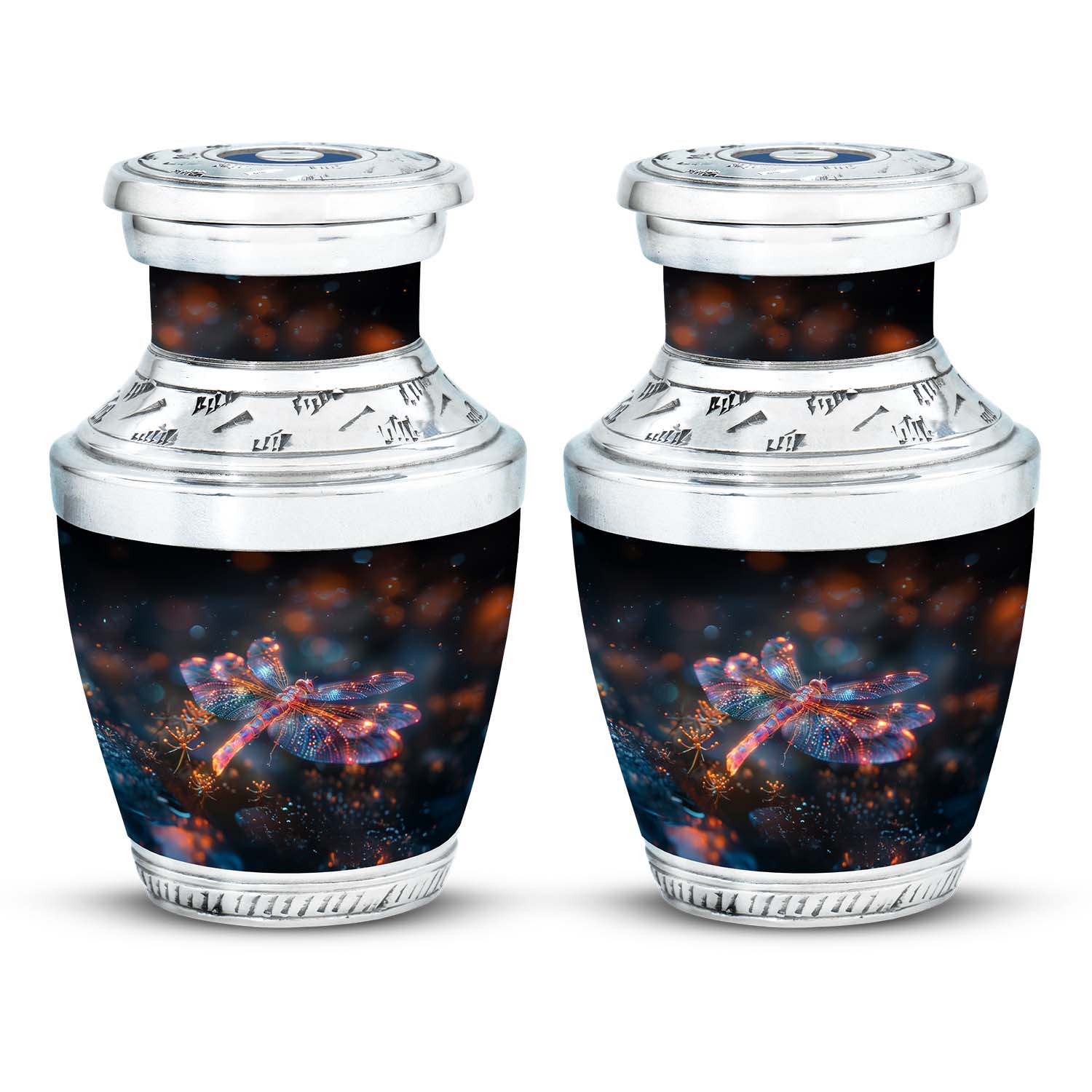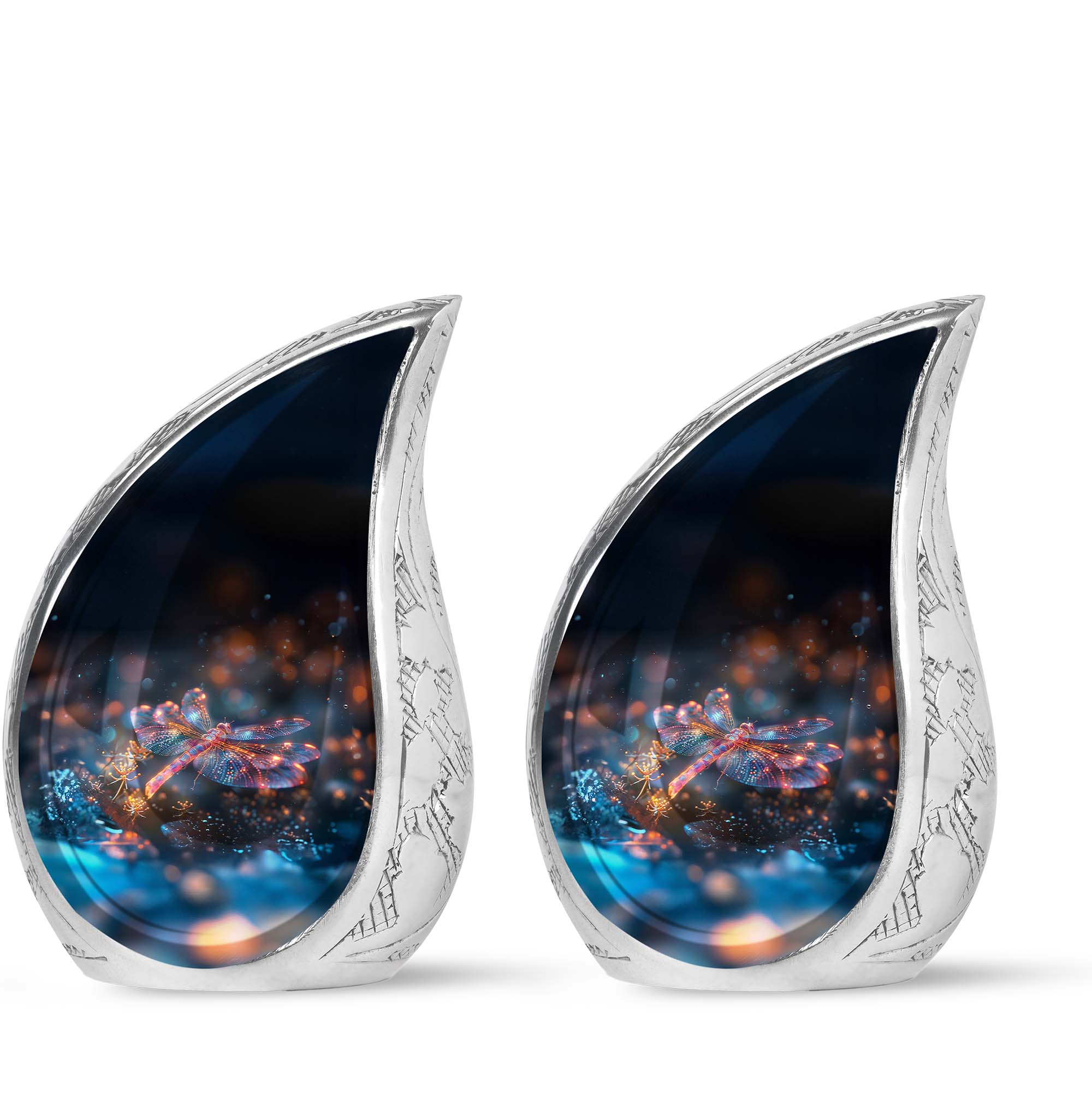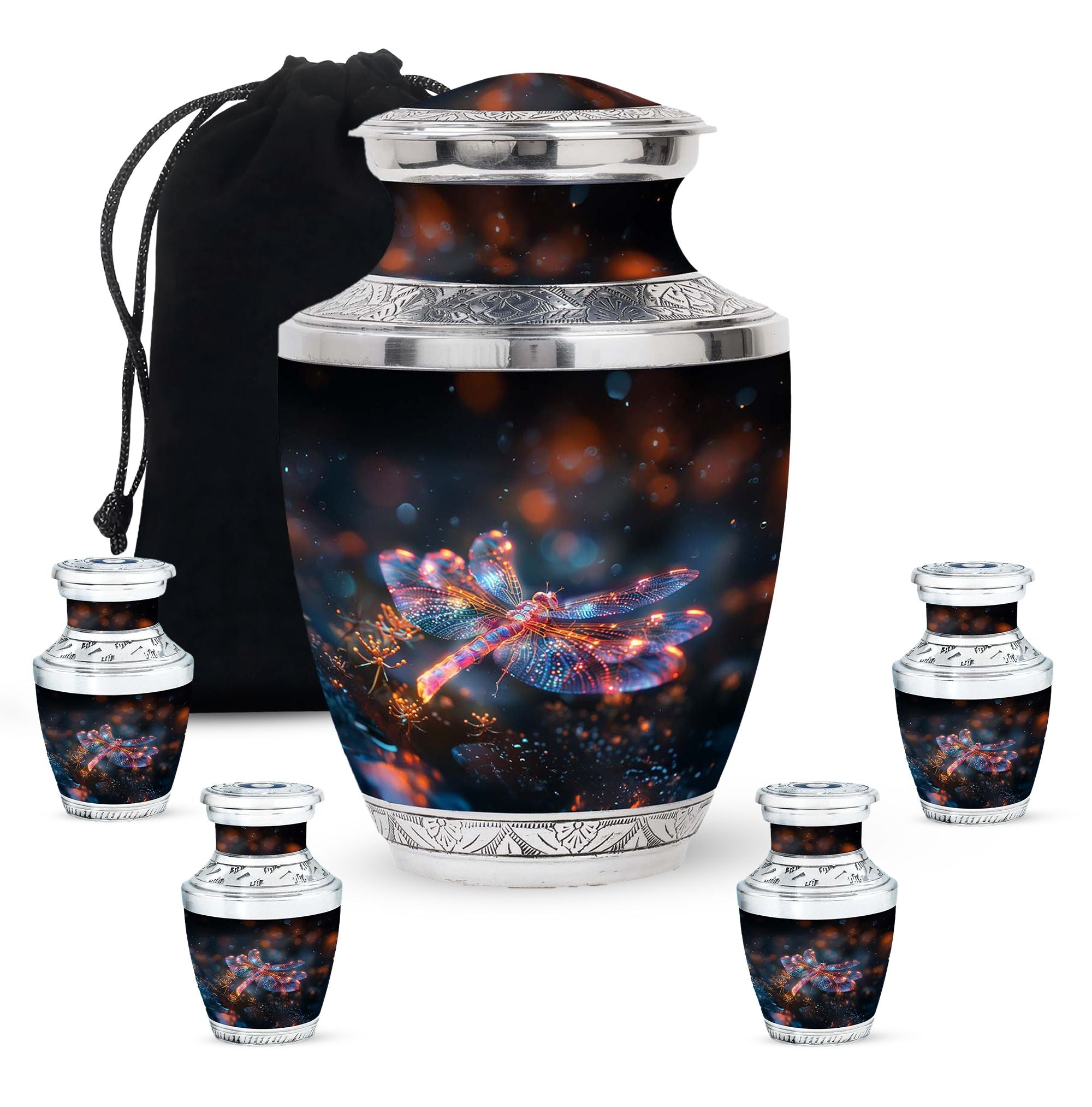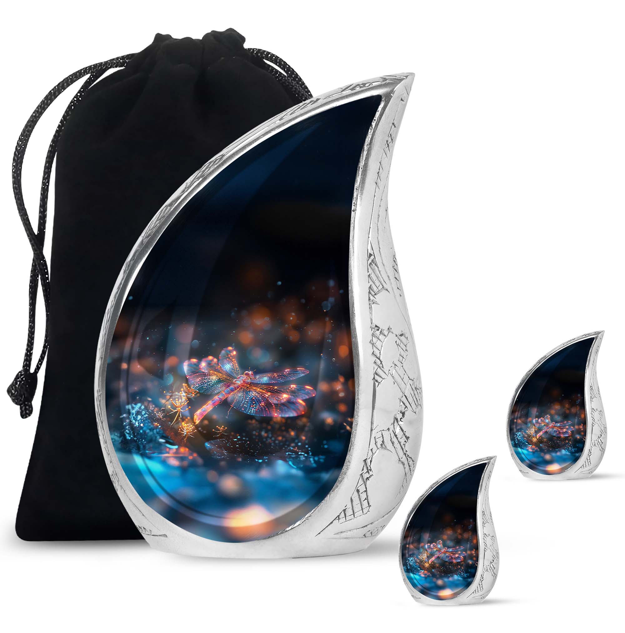The Cosmic Dragonfly Dance Urns offer a graceful way to honor and remember a cherished loved one. Designed for large funeral urn use, they are perfect as urn adult male, urns ashes adult female, or funeral urns for adult ashes women. The delicate dragonfly motif symbolizes transformation and hope, providing comfort and a meaningful tribute for families during times of loss.
