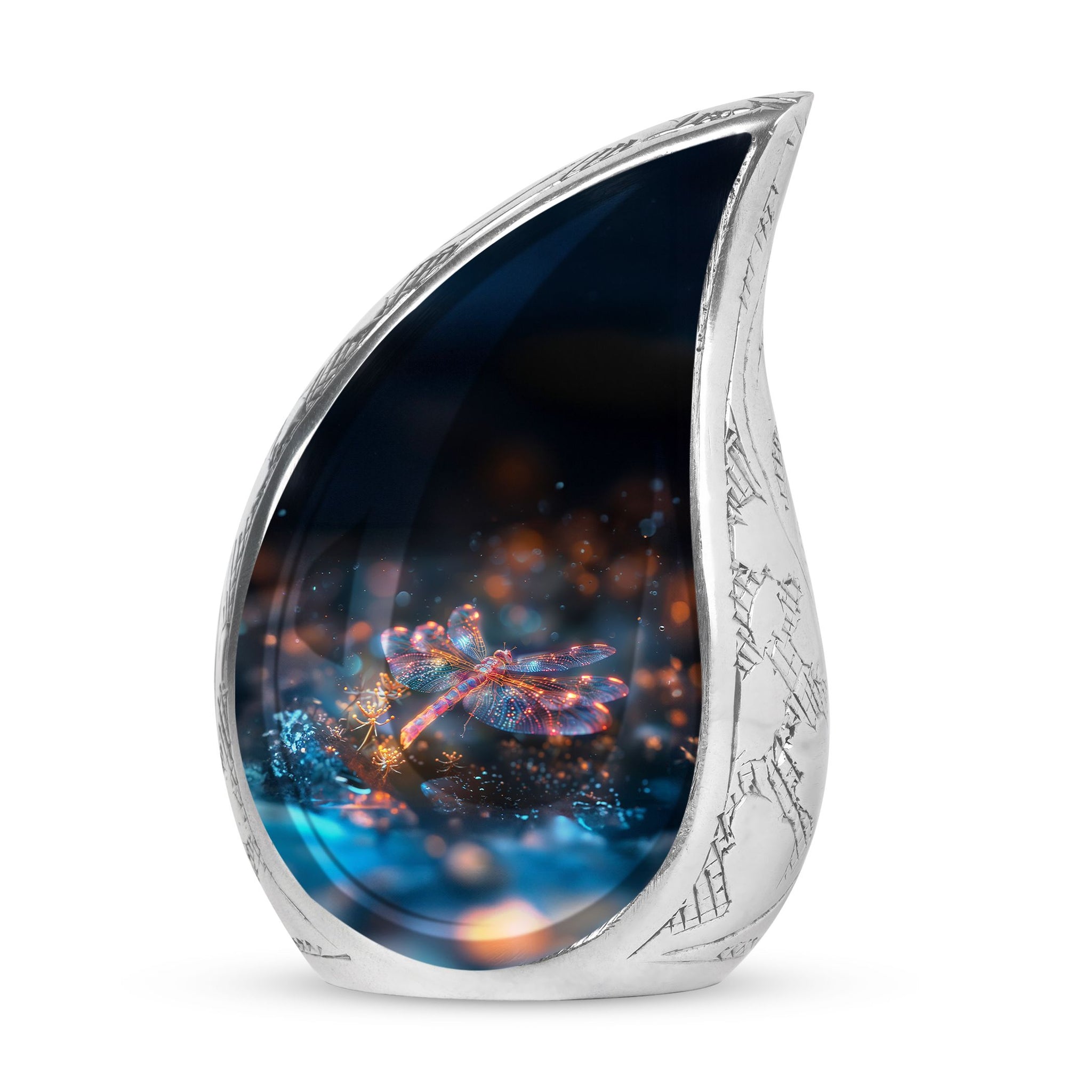 The Cosmic Dragonfly Dance Urn stands as a lasting tribute, blending beauty, emotion, and remembrance into a compassionate memorial for your loved one.