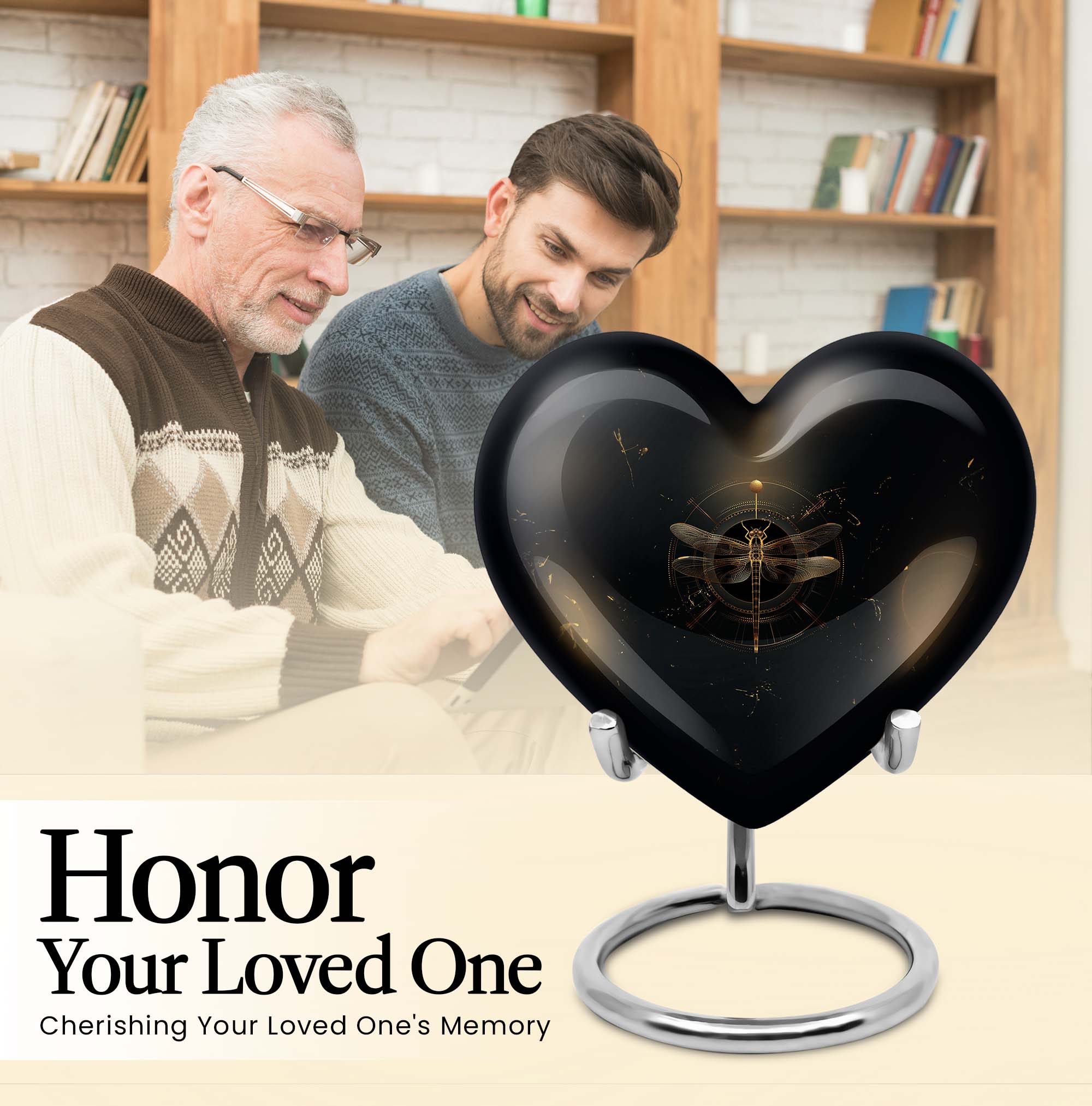 Honor the life of your loved one with this beautifully crafted Cosmic Dragonfly Cremation Urn, designed in an elegant heart shape to symbolize love, transformation, and eternal remembrance. This urn is perfect for families searching for a large urn for human ashes that is both meaningful and durable.