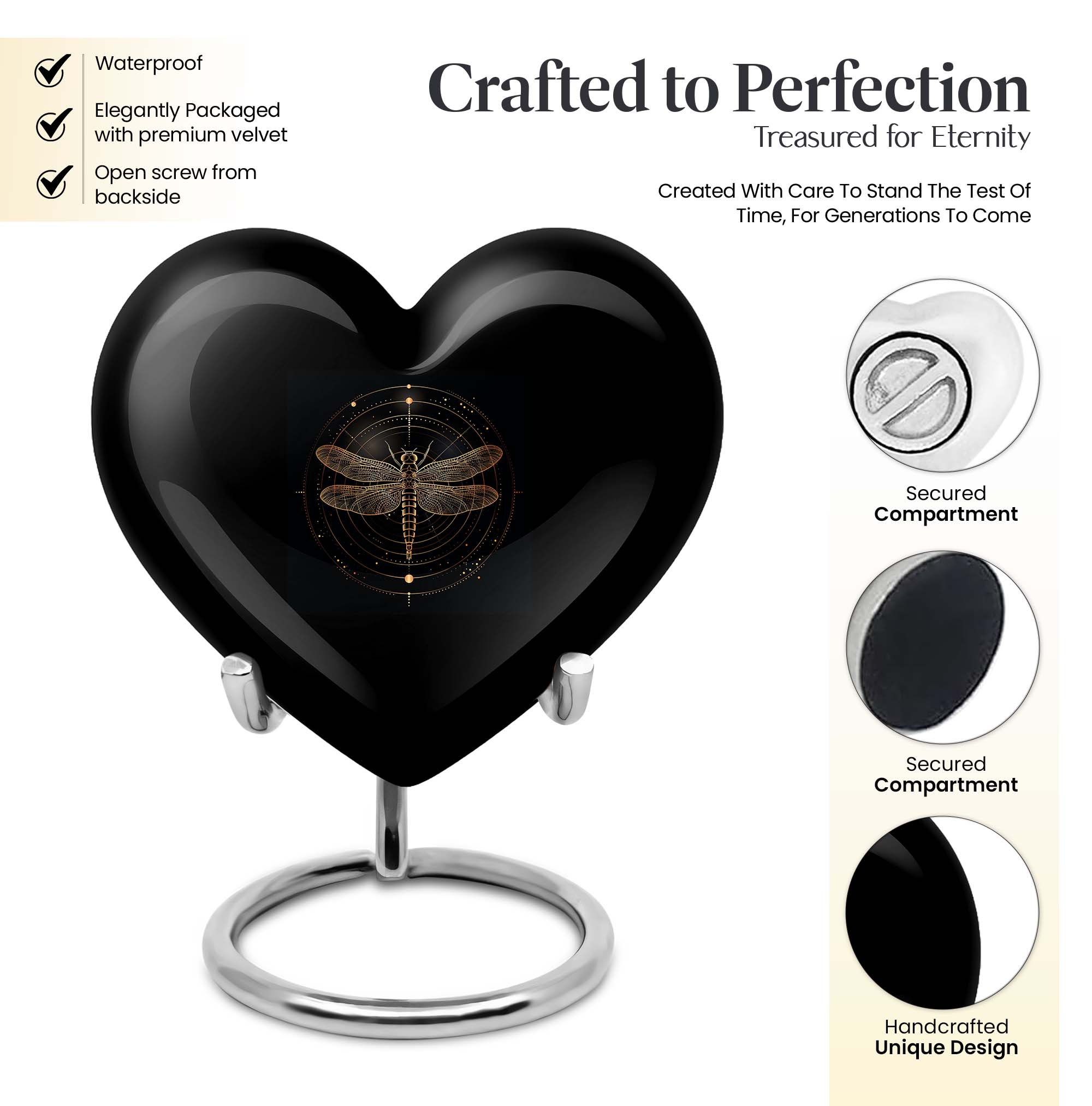 Honor your loved one with the elegance and symbolism of the Cosmic Dragonfly Heart Urn, designed to represent peace, transformation, and eternal love. With its radiant cosmic finish and delicate dragonfly motif, this urn is a heartfelt choice among premium cremation urns for men and women.