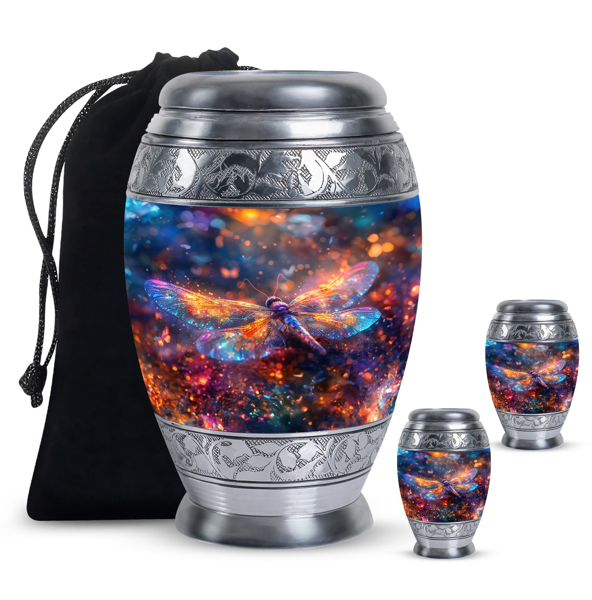 The Cosmic Dragonfly Urn Memorial embodies transformation, hope, and eternal love. Its graceful dragonfly design symbolizes peace and renewal, making it a heartfelt choice for families seeking a large funeral urn that honors the beauty of life and memory. Whether for men or women, this urn serves as a lasting tribute to a loved one’s journey and spirit.