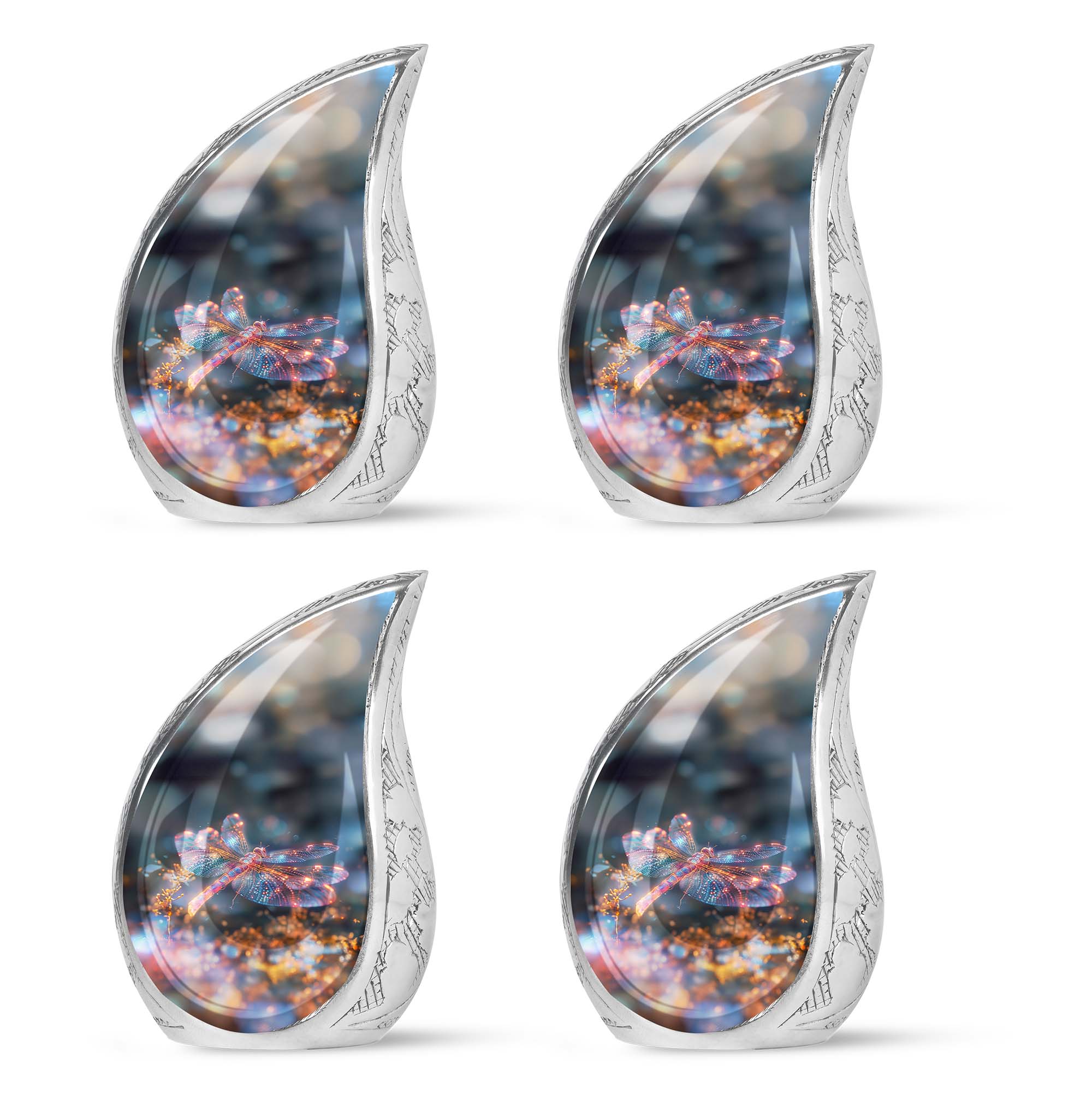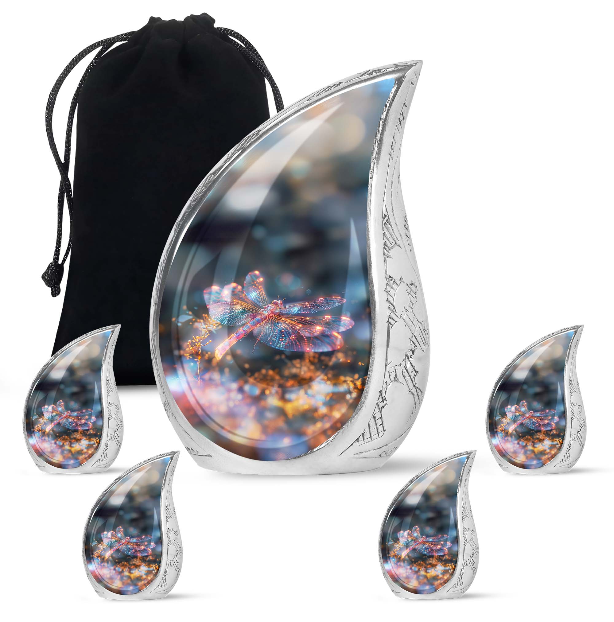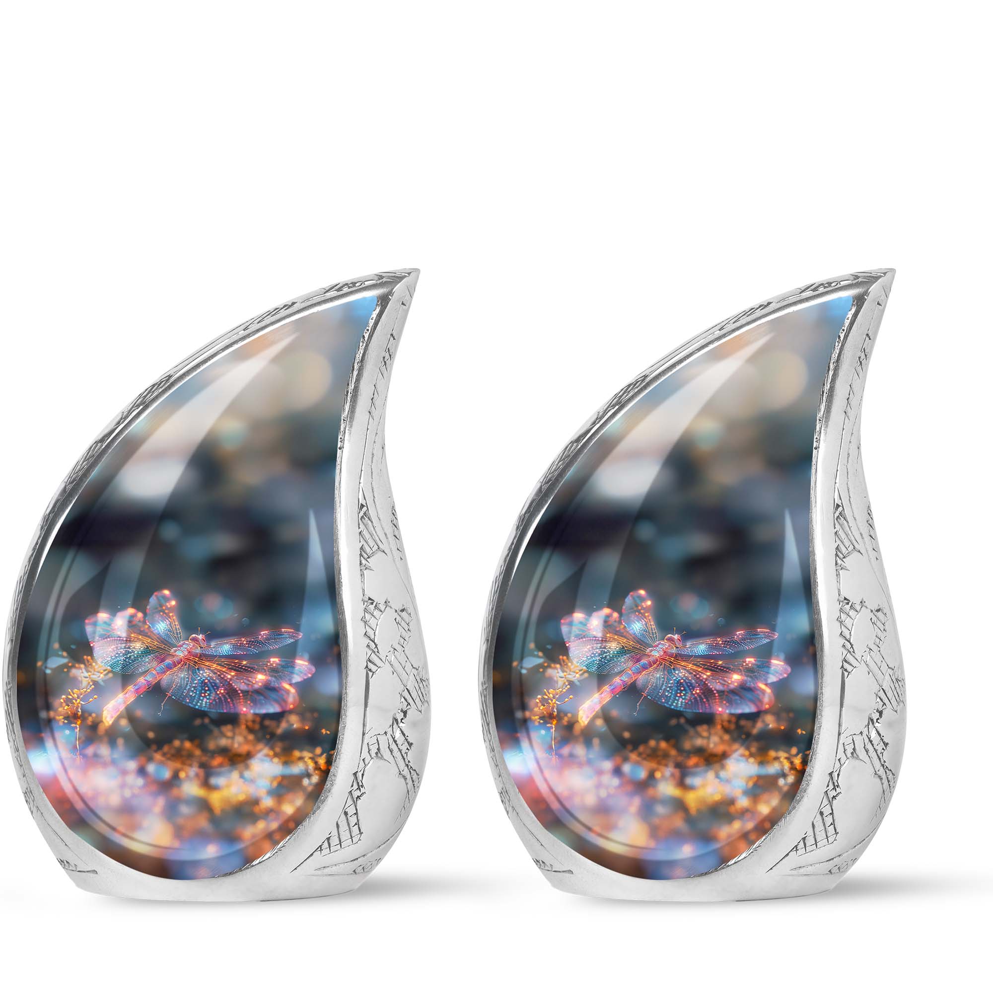 Crafted with precision and compassion, this piece blends fine craftsmanship with durable materials. The vibrant dragonfly motif, glowing in warm fiery tones, represents renewal and peace—making it one of the most meaningful adult urns for men & women. Made of premium aluminium, it provides secure storage for ashes and can be used as a burial urn or a stunning display keepsake. Its versatility makes it perfect for those seeking urns for human ashes women or mens urns for human ashes with equal elegance.