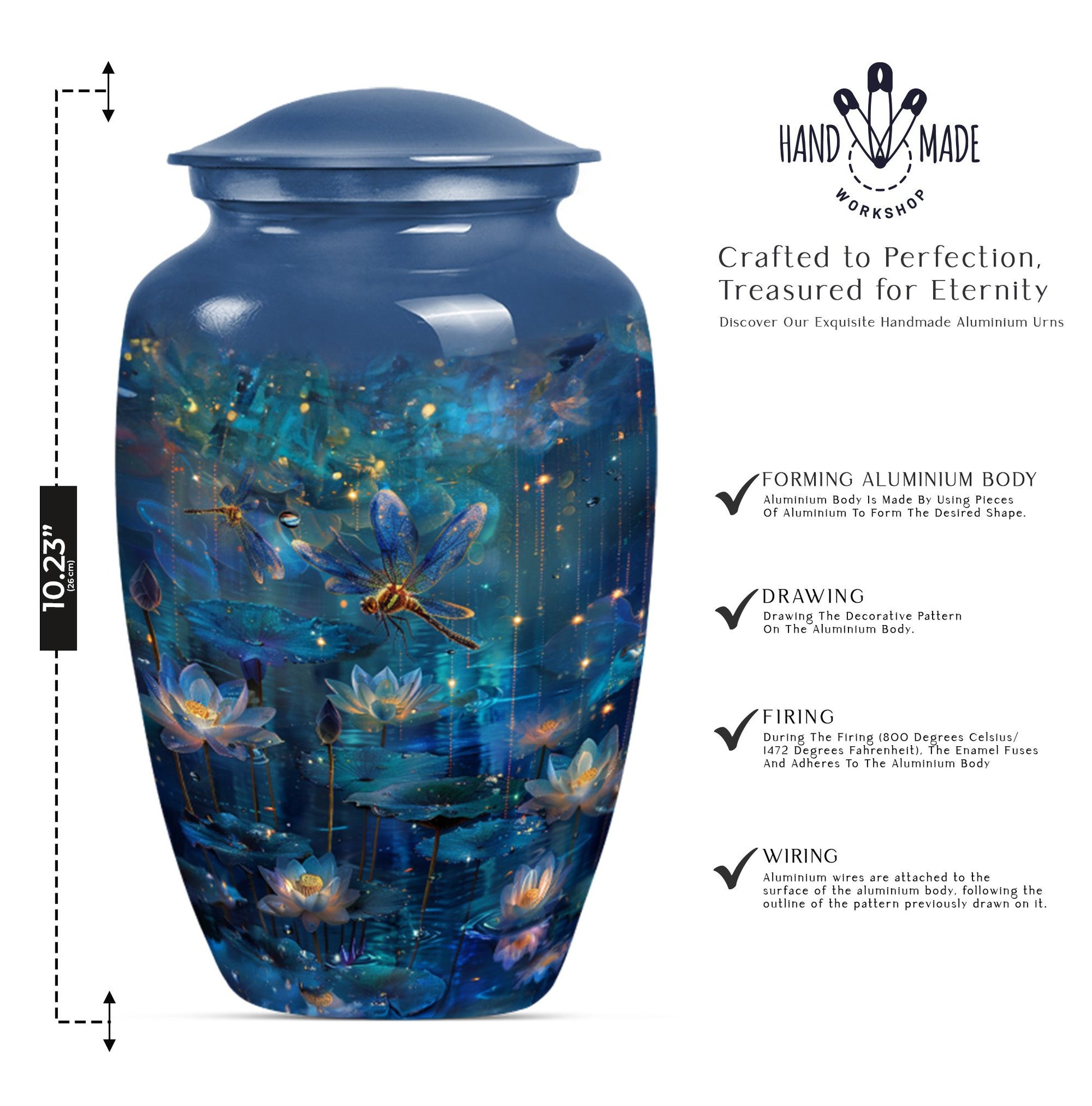 Celebrate a life beautifully lived with this serene and symbolic Dragonfly Cremation Urn for Ashes, a meaningful container for adult human remains. Designed with care and attention to detail, this urn features a peaceful dragonfly motif that symbolizes transformation, grace, and eternal connection.