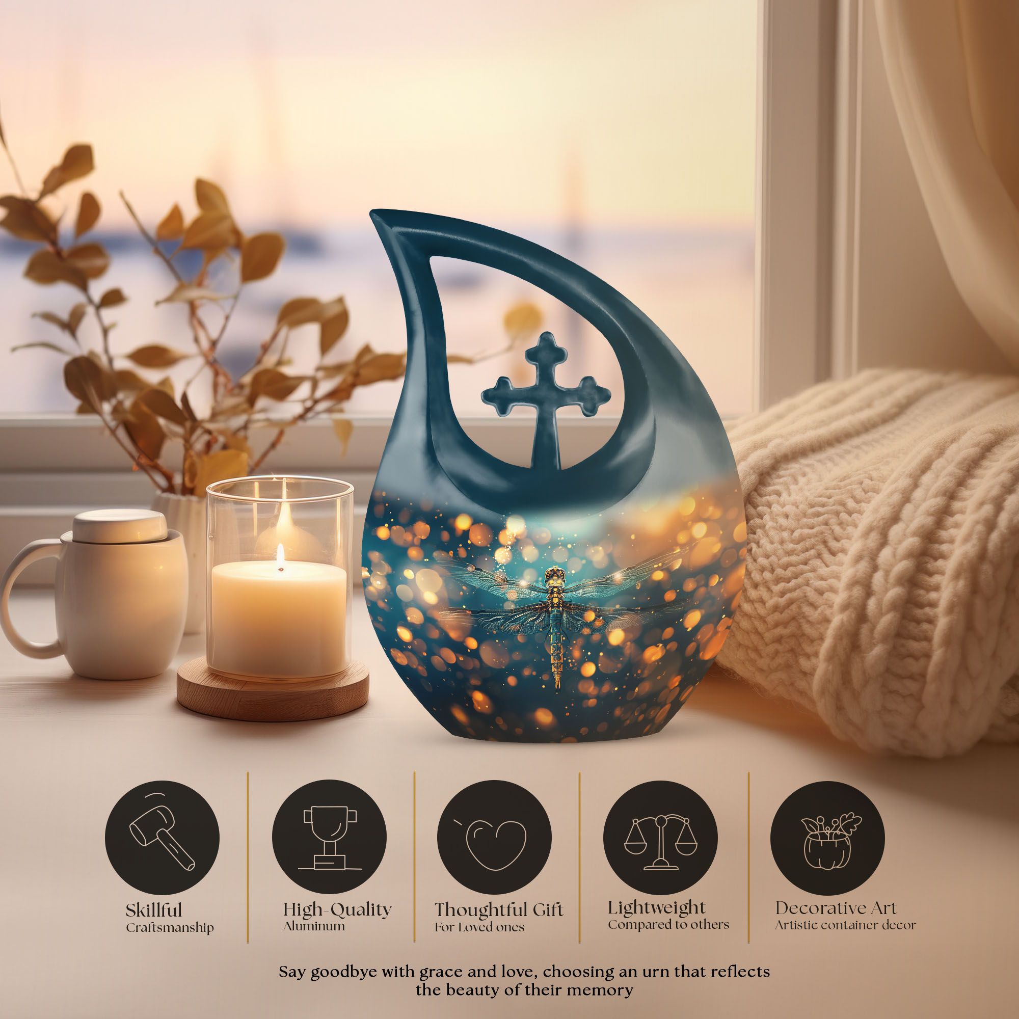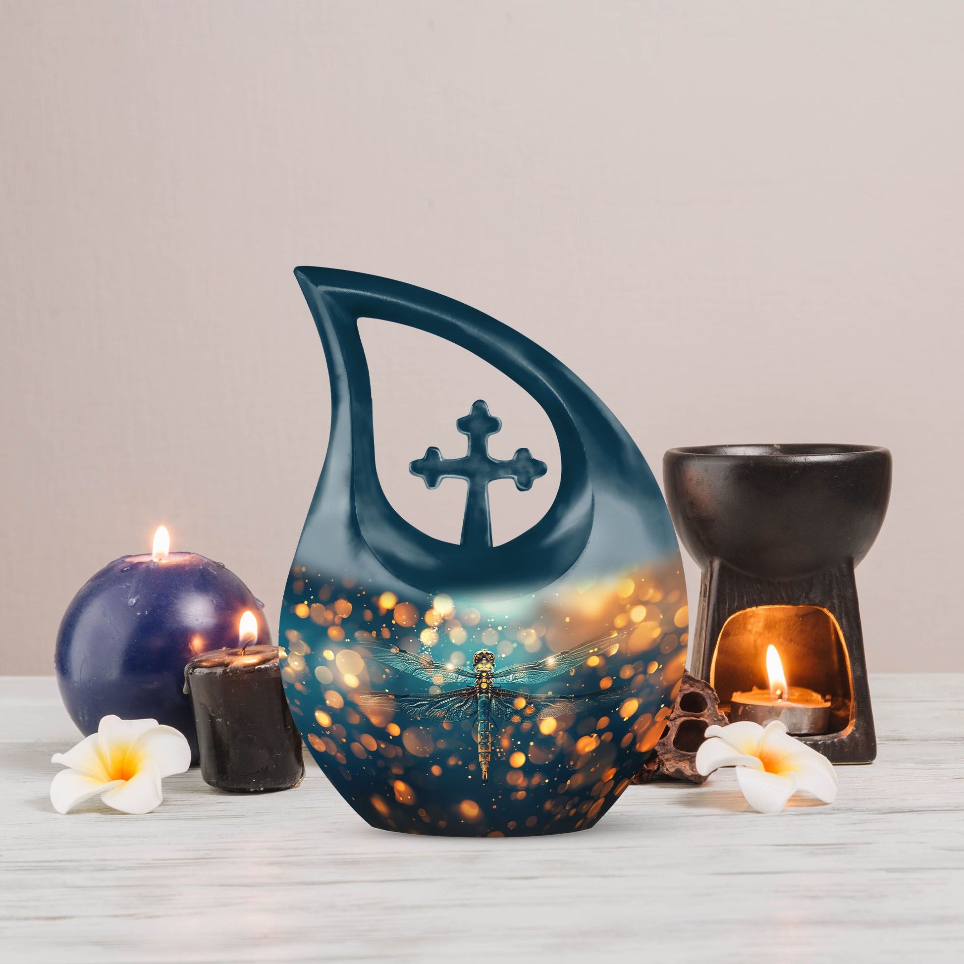 The dragonfly symbolizes change and light, making this small urns for ashes adult female or male a touching reminder that while life changes form, love and memory remain eternal.