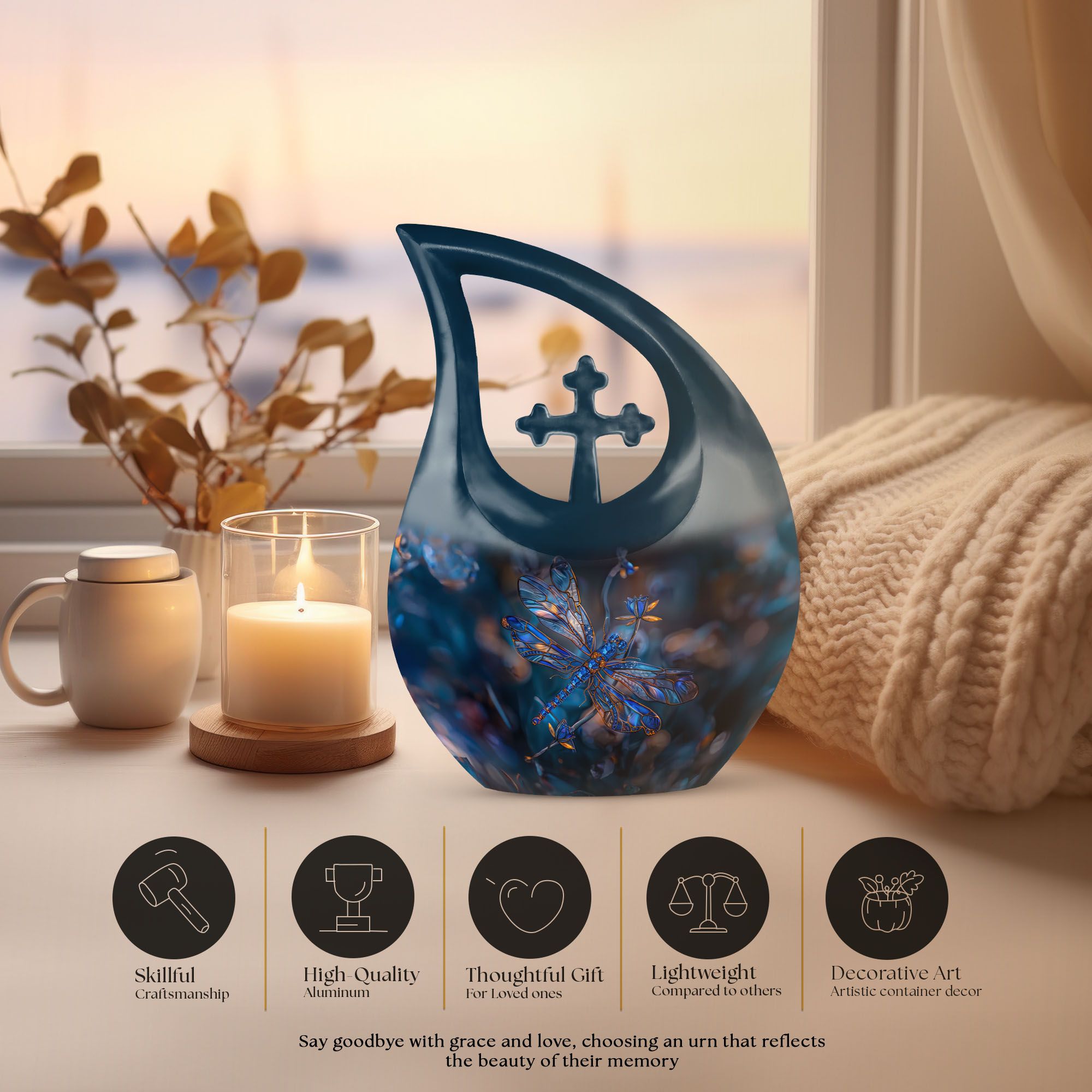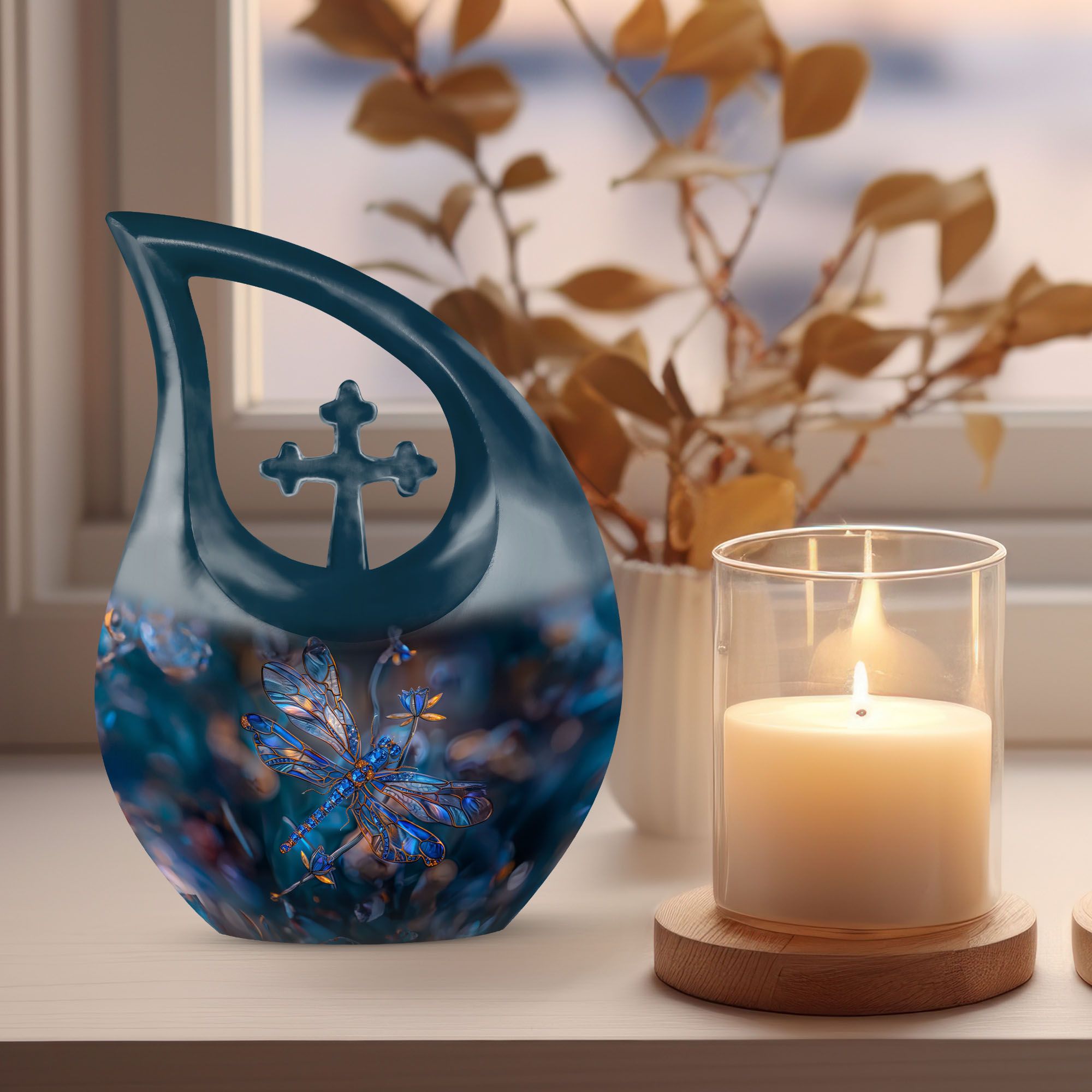 The Blue Dragonfly Urn is more than a memorial — it’s a poetic expression of eternal peace, reminding us that love, like the dragonfly’s flight, continues beyond the horizon.