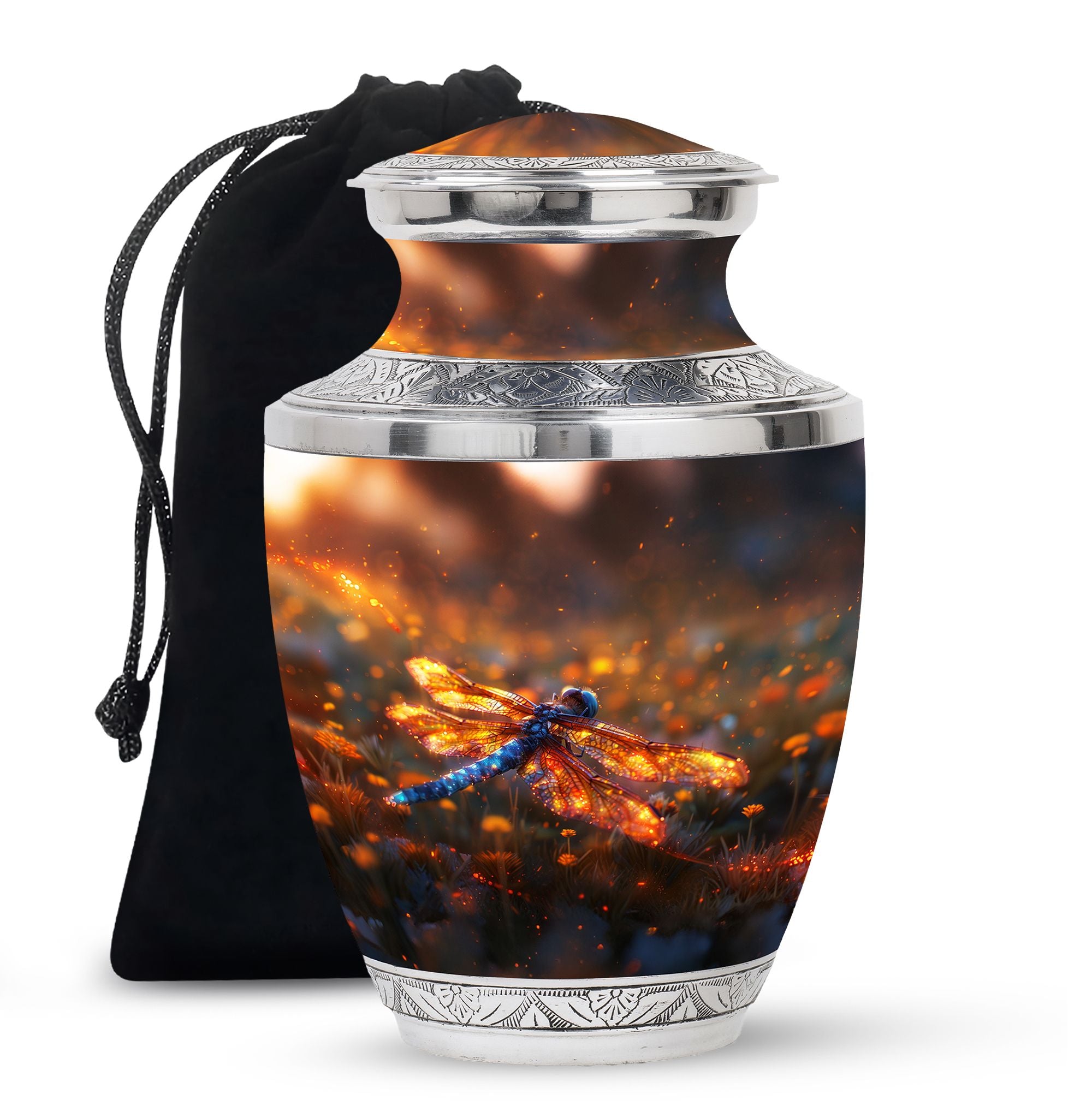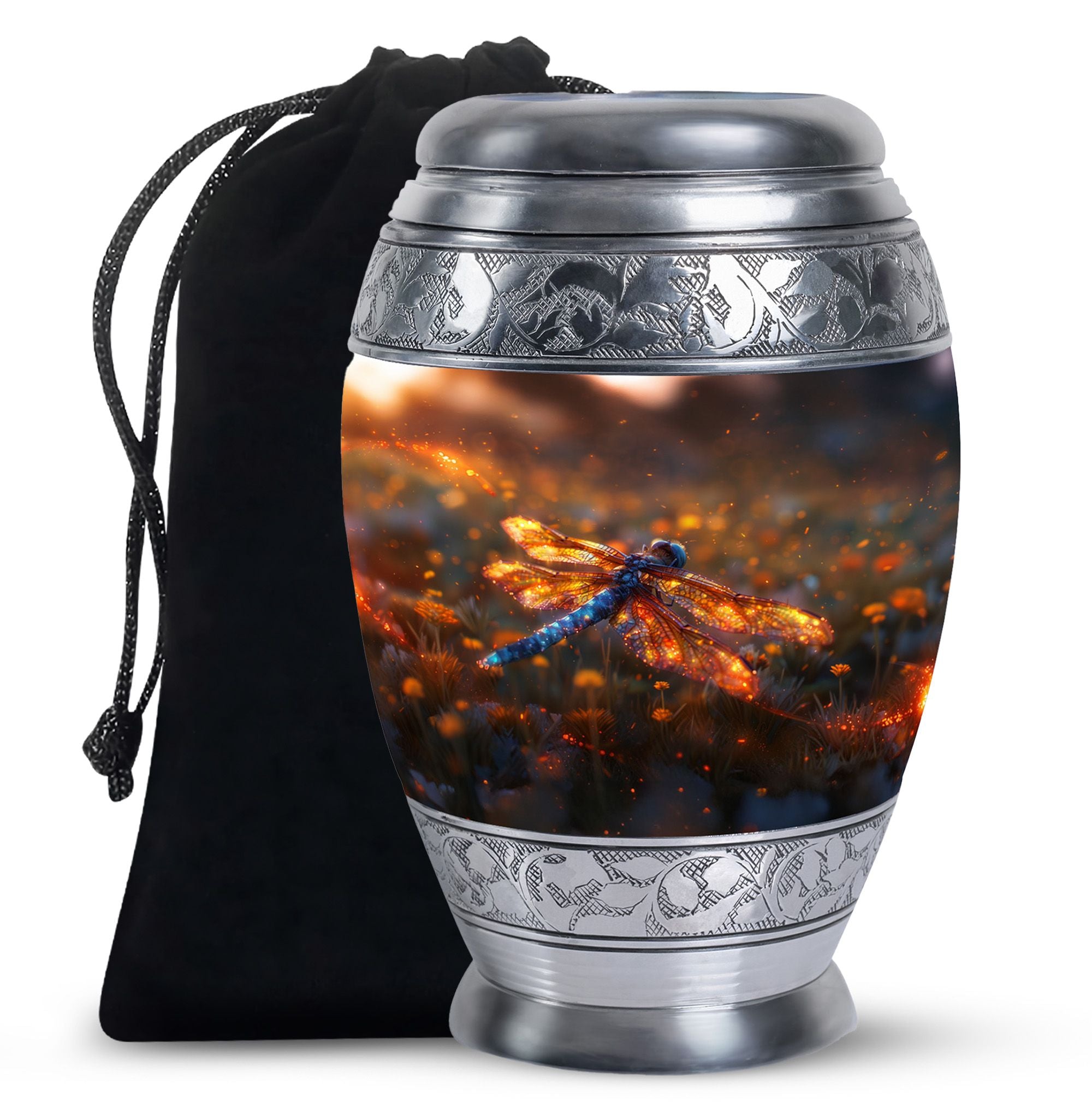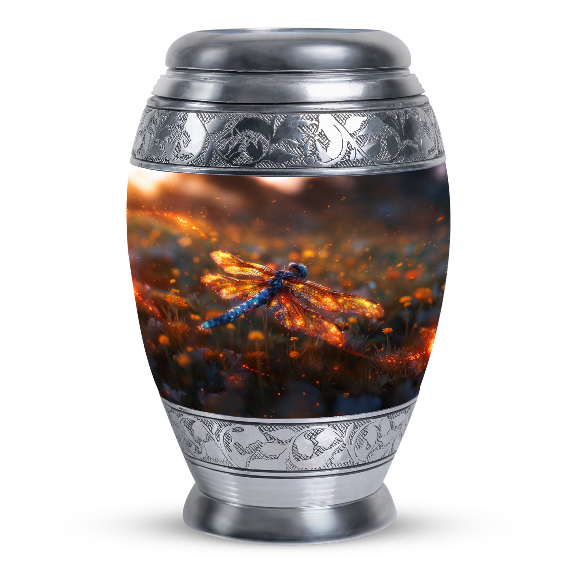 Expertly designed with attention to detail, this urn combines artistic beauty with durable craftsmanship. The vibrant dragonfly motif symbolizes transformation and hope, while the high-quality materials make it one of the finest large human ashes urns. Secure, elegant, and refined, it serves as both a large decorative urn and a functional urn for ashes large, fitting seamlessly into any home or memorial setting.