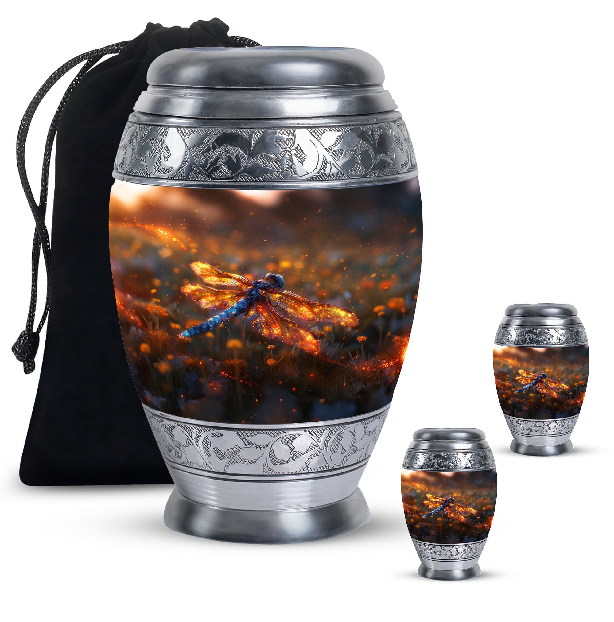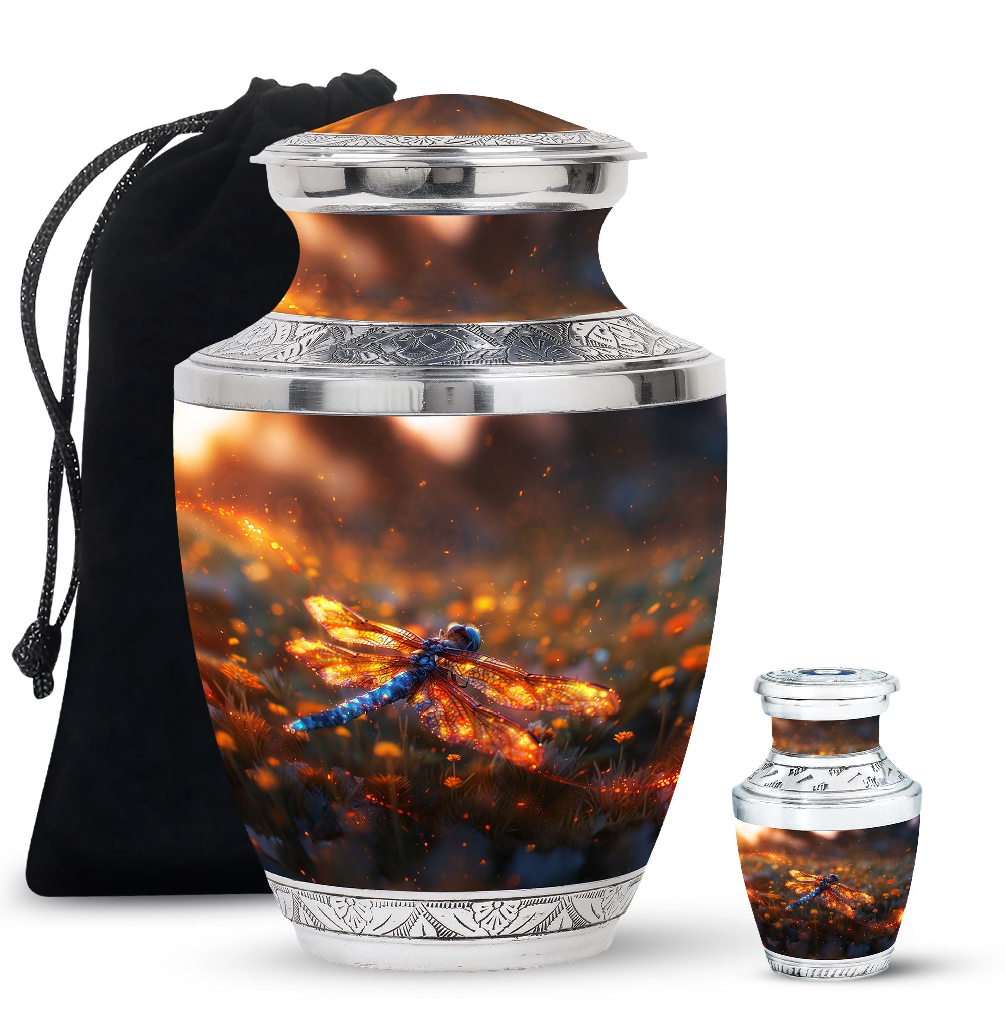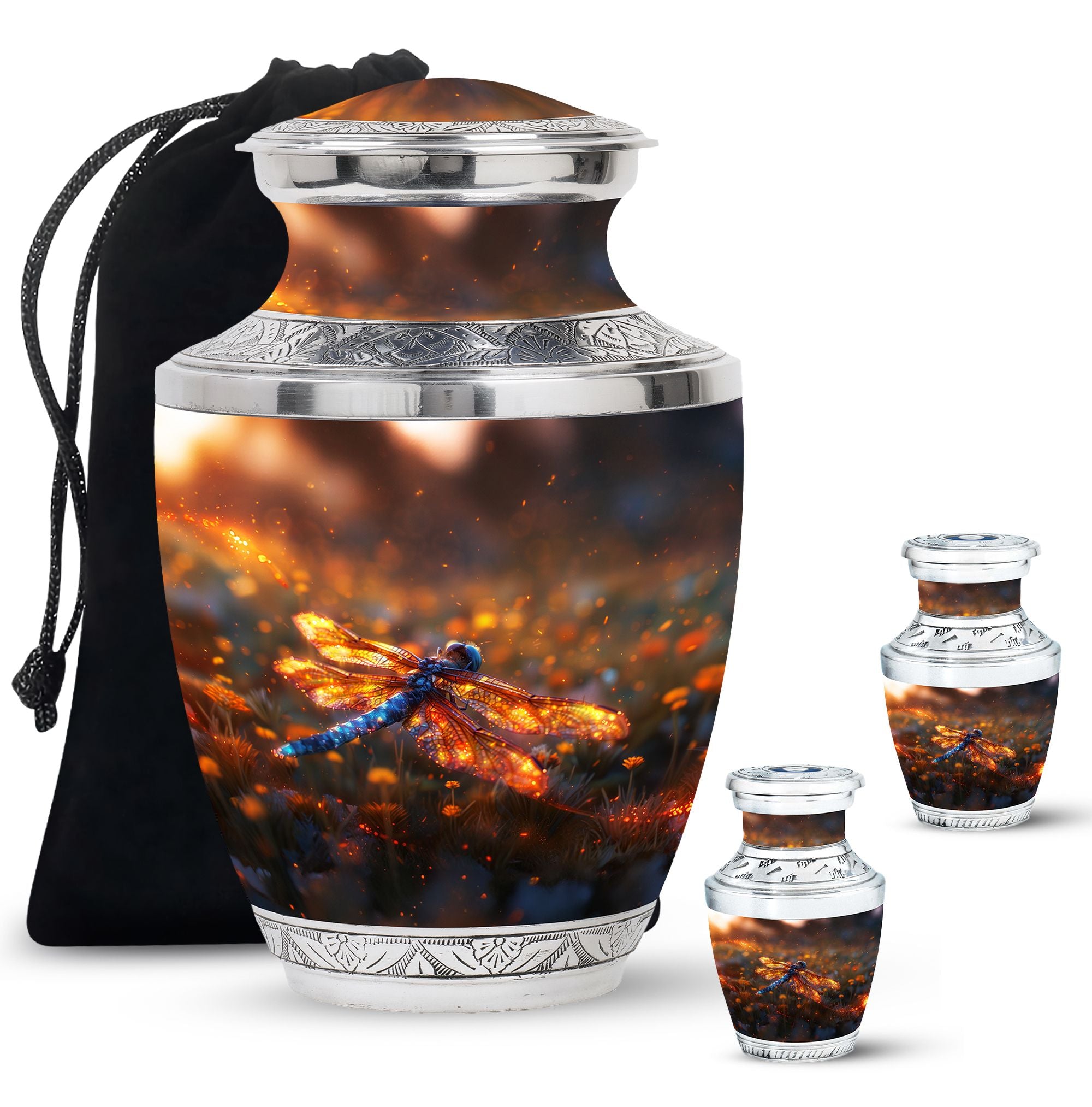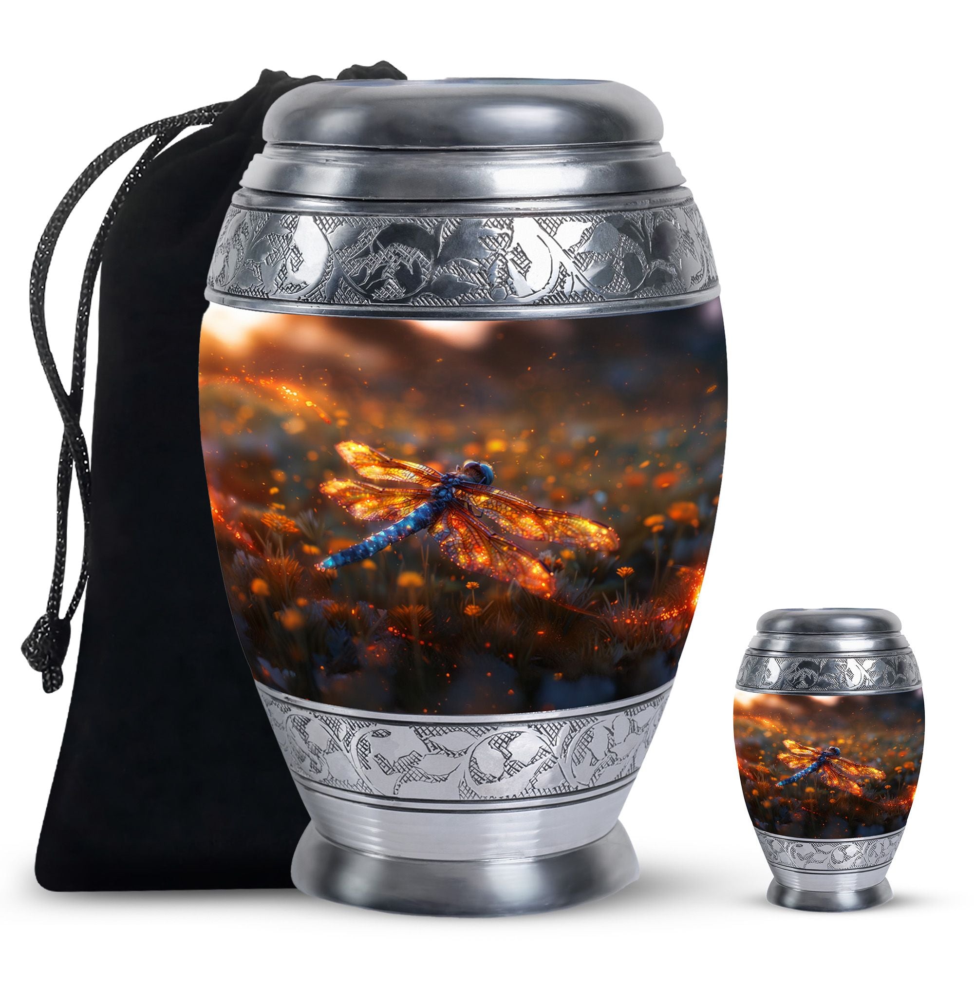 Expertly designed with attention to detail, this urn combines artistic beauty with durable craftsmanship. The vibrant dragonfly motif symbolizes transformation and hope, while the high-quality materials make it one of the finest large human ashes urns. Secure, elegant, and refined, it serves as both a large decorative urn and a functional urn for ashes large, fitting seamlessly into any home or memorial setting.