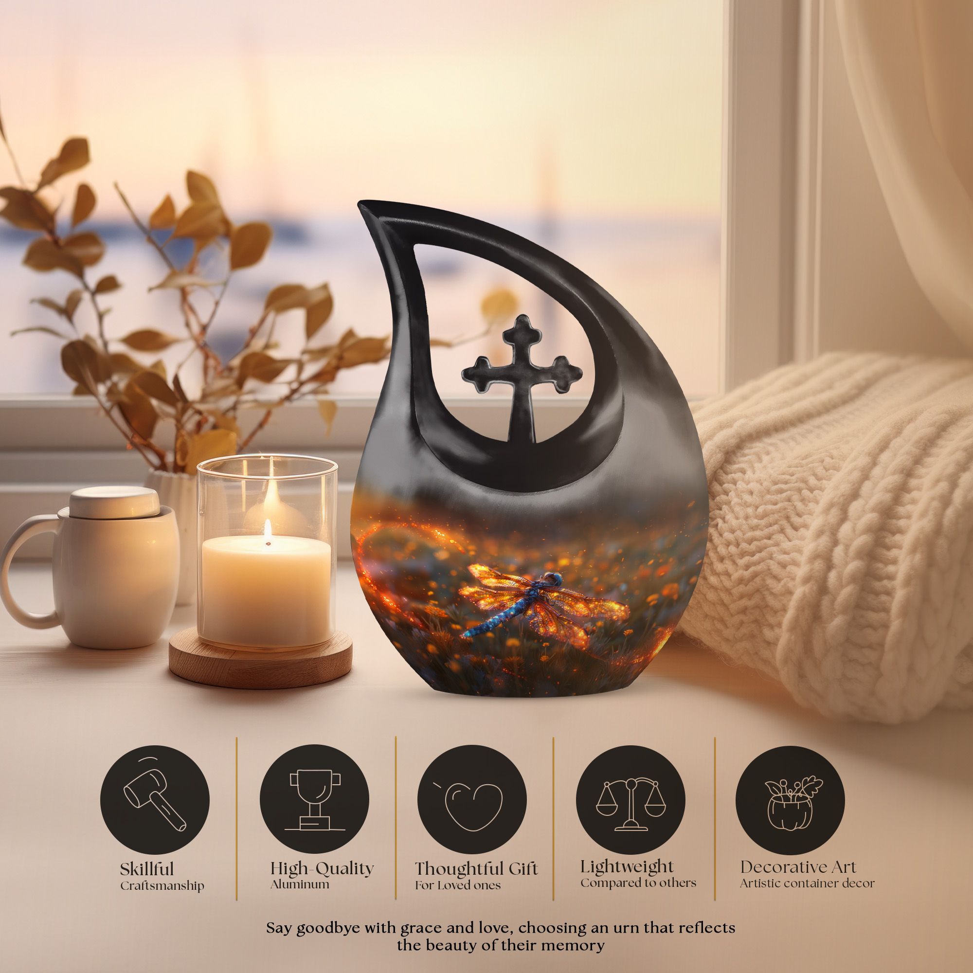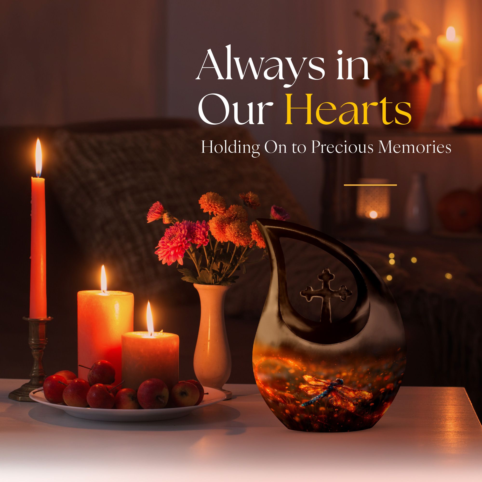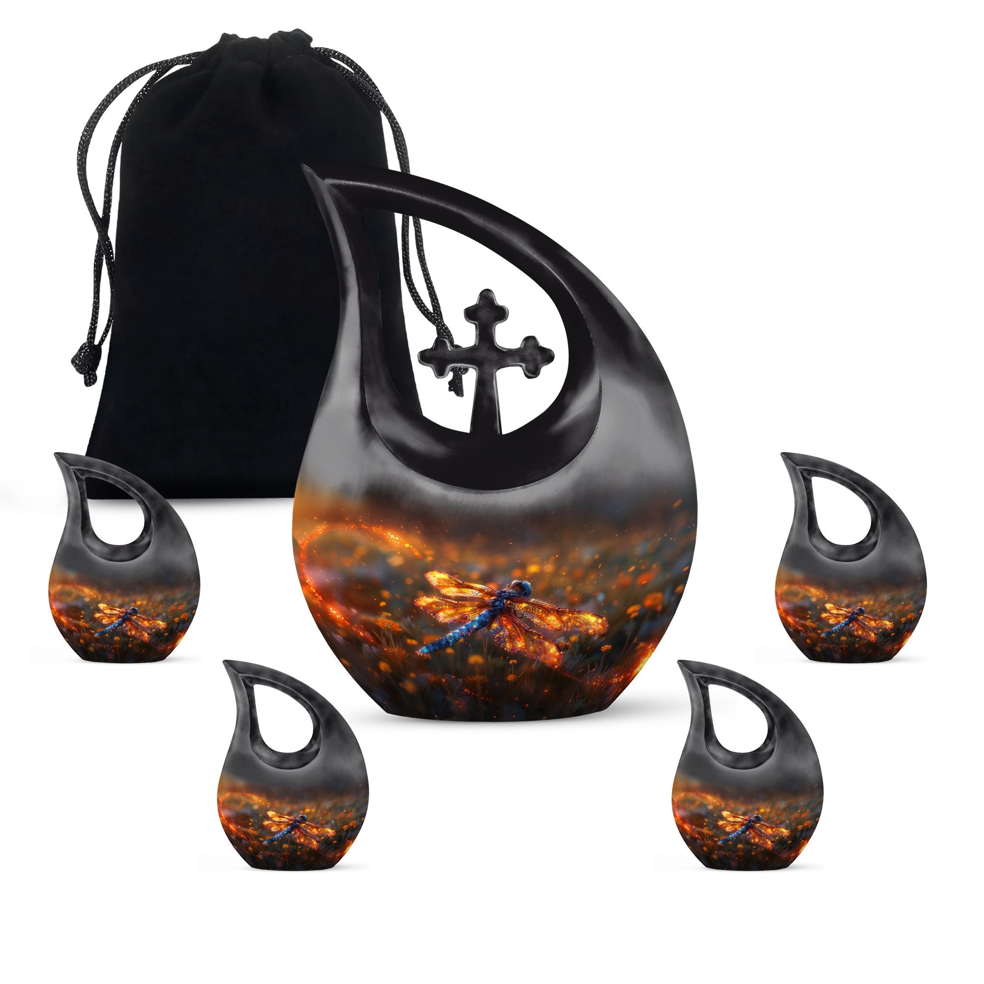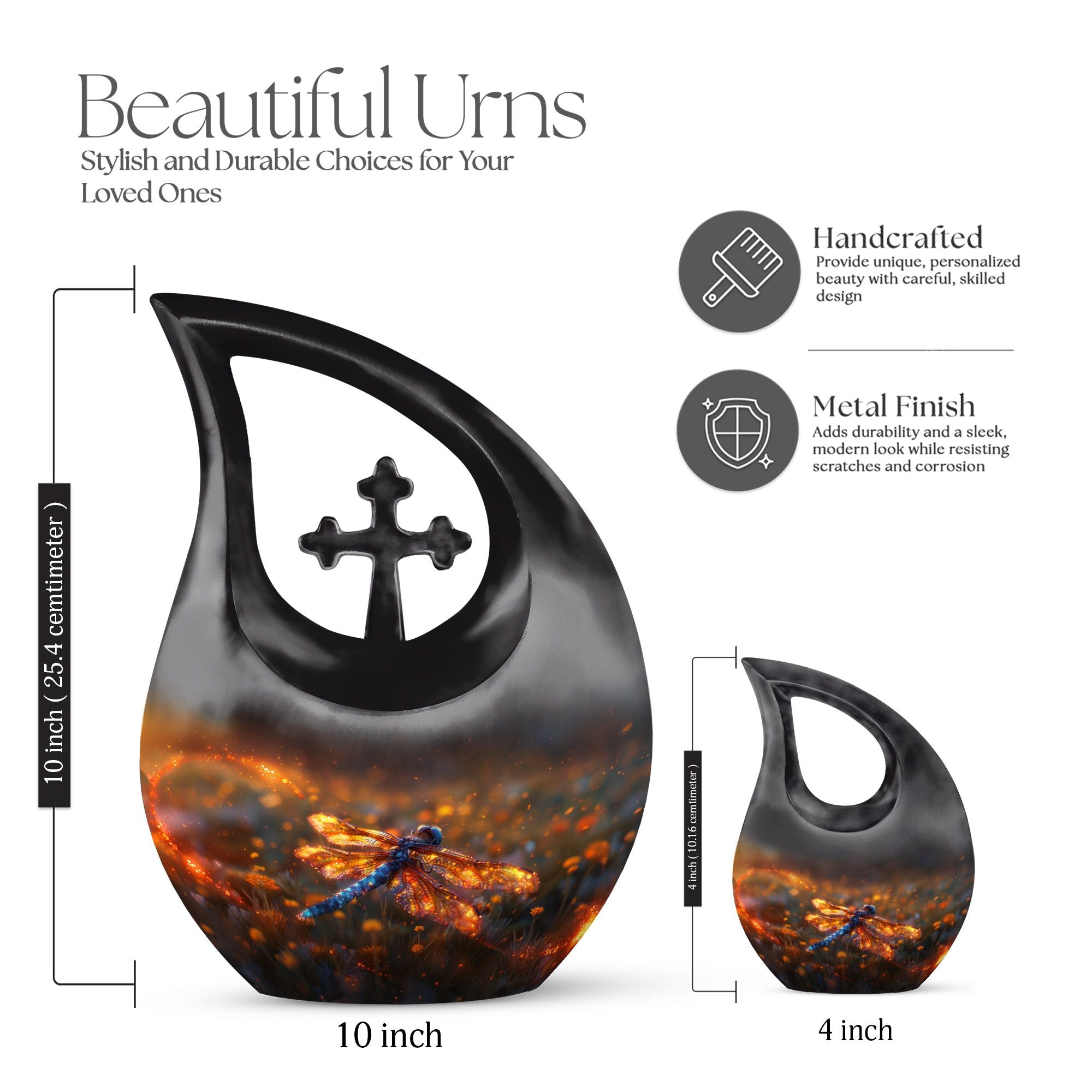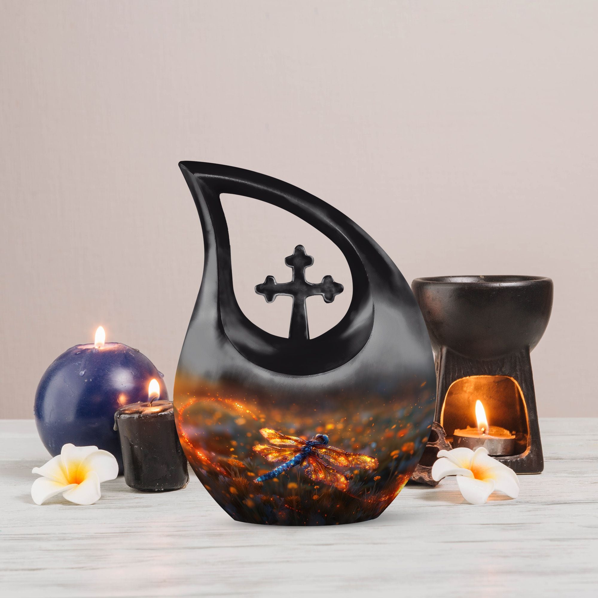Made from durable materials and featuring an elegant glowing dragonfly design, this cremation keepsake urn is ideal for those looking for mini cremation urns for human ashes or a small urn for cremation human ashes to share remains among family members or keep a piece of your loved one close.