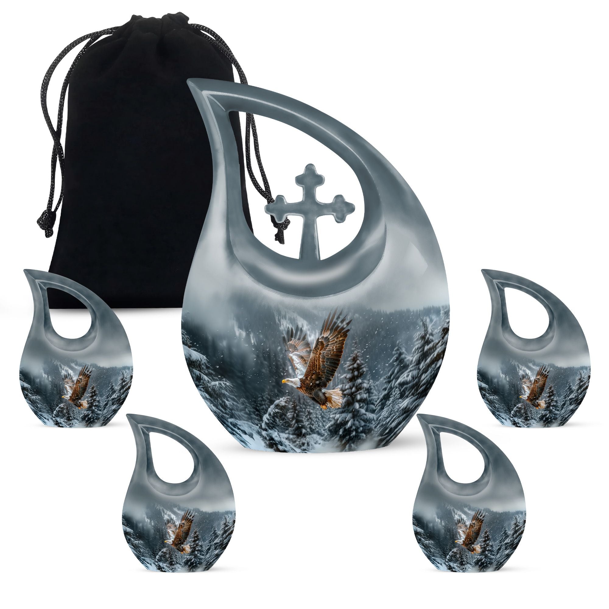 Crafted from durable aluminum, this small urn combines strength with elegance. The soaring eagle design symbolizes freedom and eternal love, making it a fitting choice for families looking for urns for ashes adult female mom or urns for adult female mom memorials. Its compact size is ideal as a keepsake, while still providing a dignified resting place. Families searching for small urns for adult male or human urns for ashes adult female will appreciate its versatility, design, and secure lid for lasting protection.