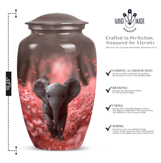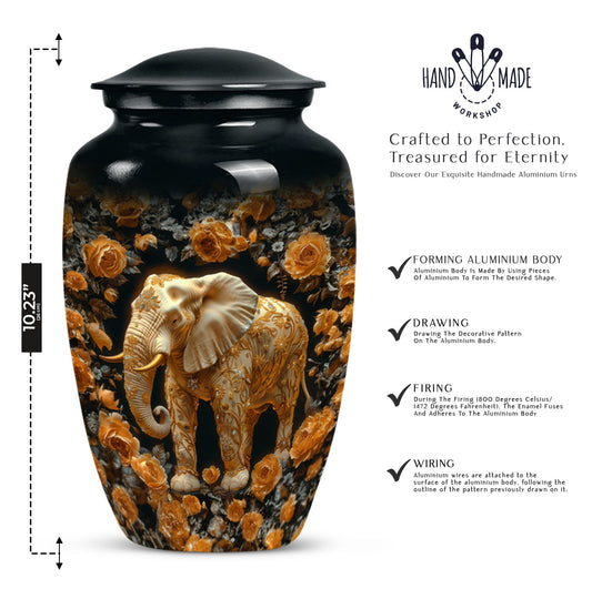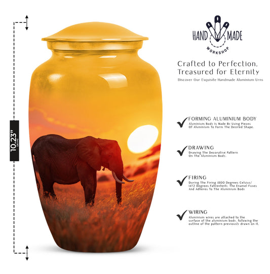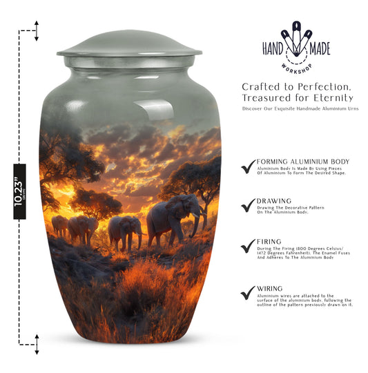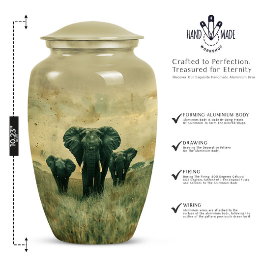 Whether you're looking for a large cremation urn for human ashes, a keepsake urn, or a memorial elephant urn to display at home or during a service, this collection offers a variety of options to meet your needs. Made from durable, high-quality materials such as handcrafted aluminum, our urns are designed to provide a lasting and respectful resting place.