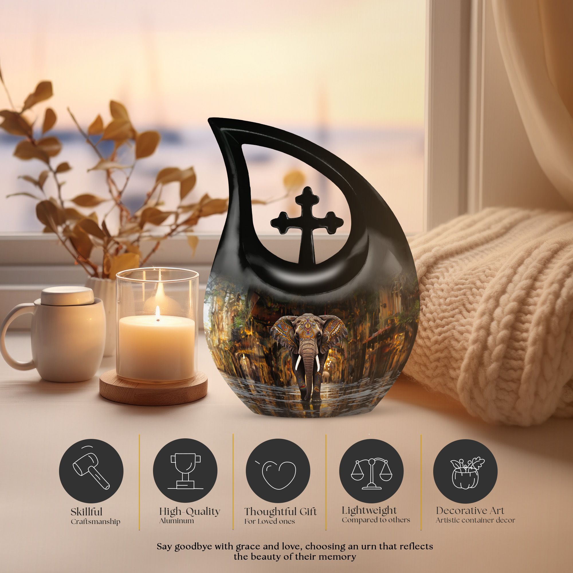 The Divine Elephant Funeral Urn for Human Ashes is a powerful and serene symbol of wisdom, protection, and eternal strength. Embellished with an intricately engraved elephant motif, this cremation urn human ashes design represents stability and faith — making it an ideal memorial for a beloved father, husband, or guardian. It captures the essence of love and guidance that continues beyond life.