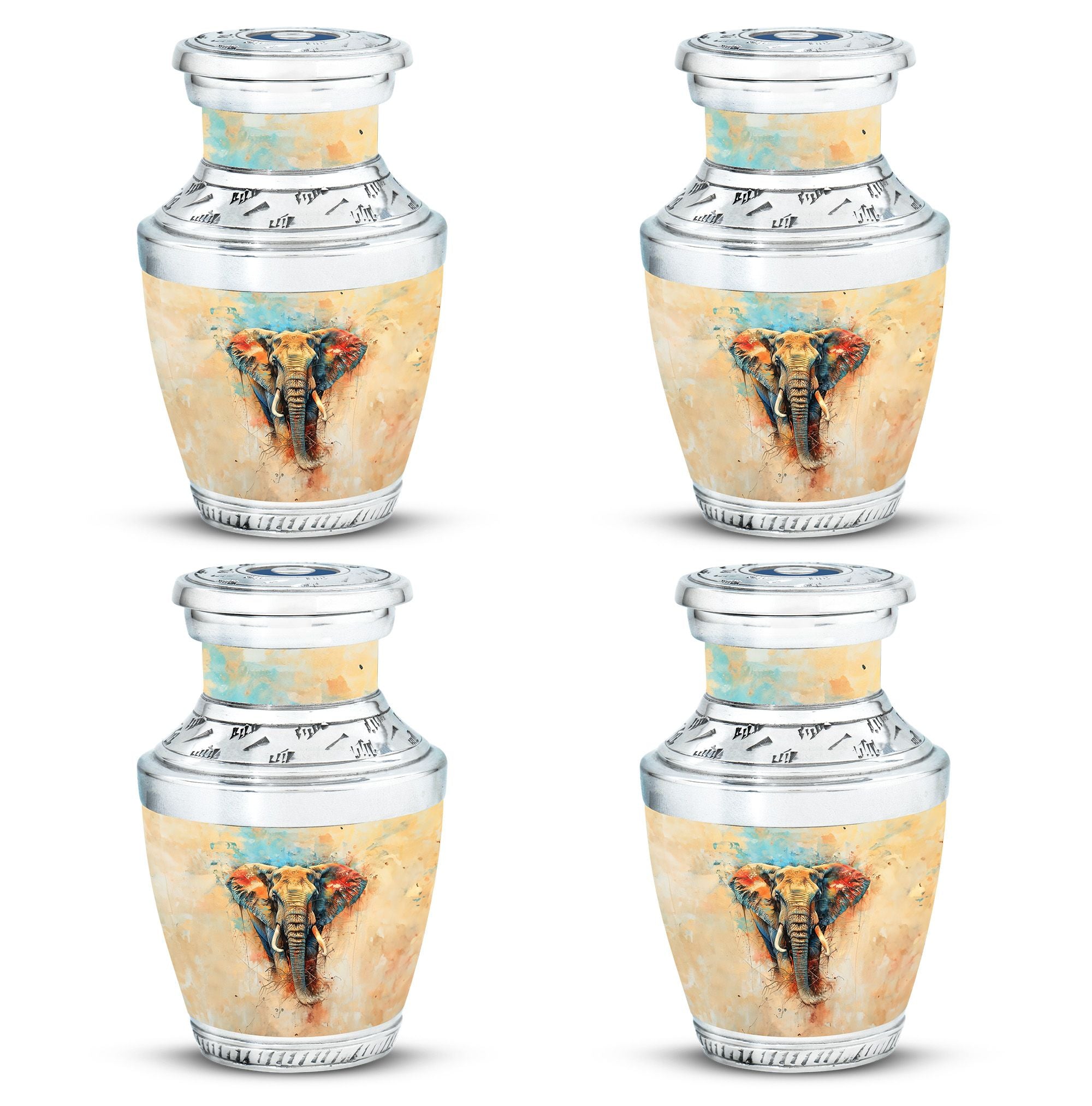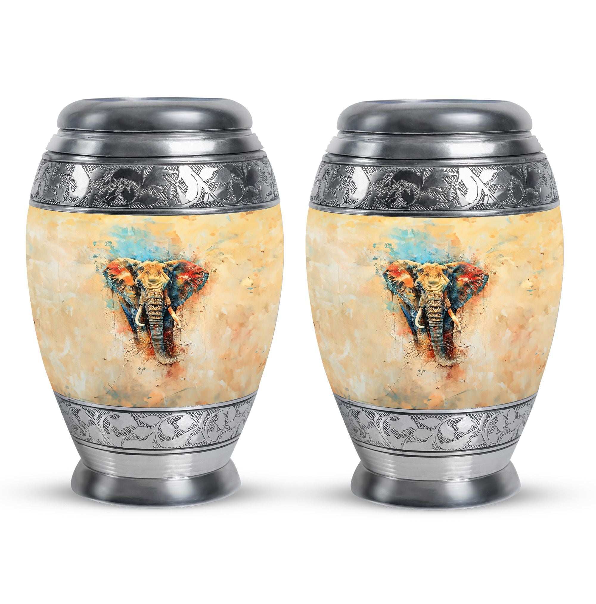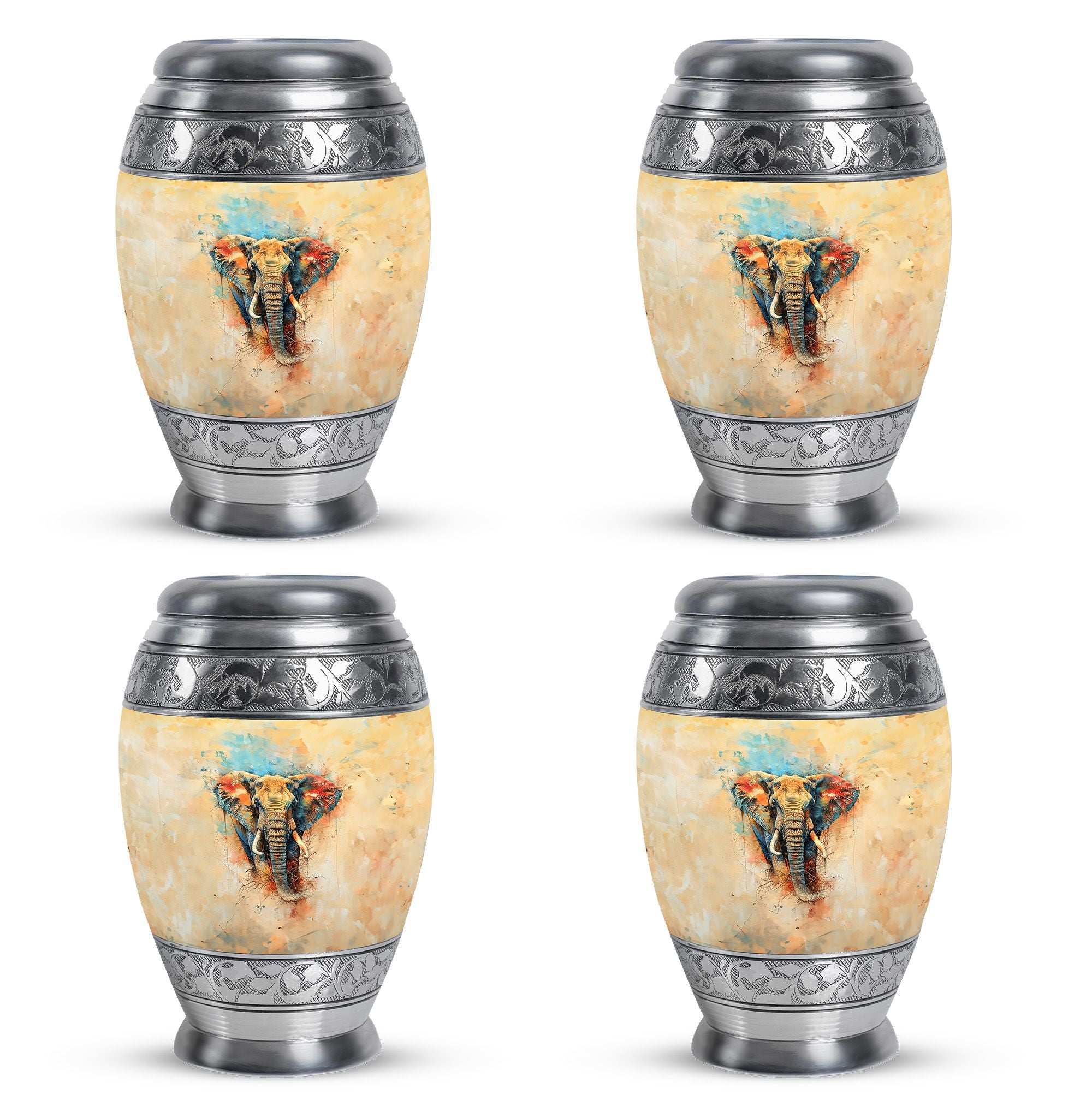 Crafted from durable aluminum, the centerpiece is a large cremation urn adorned with an elegant elephant design, symbolizing guidance and protection. Its secure screw-top lid ensures ashes remain safe, while its artistic finish makes it a striking choice for home memorials or services. Paired with coordinating mini keepsakes, this set offers families a way to hold part of their loved one’s spirit close. Many families select it as large cremation urns for human ashes or cremation urns for large human ashes adult to suit their needs.