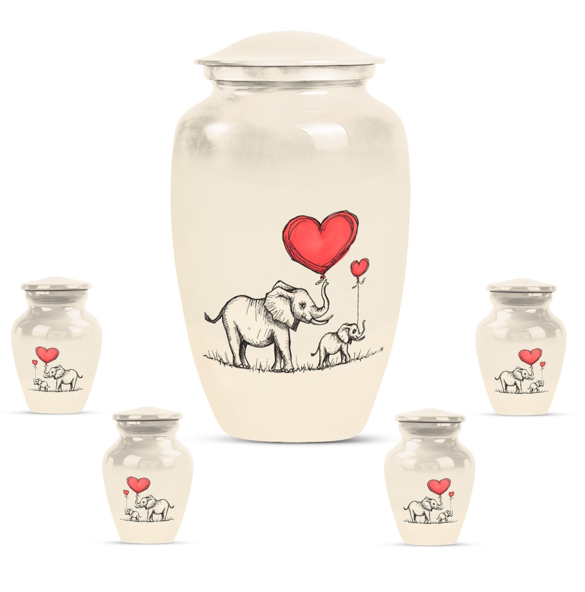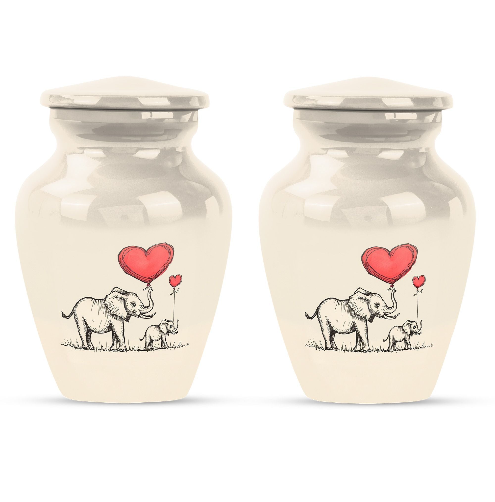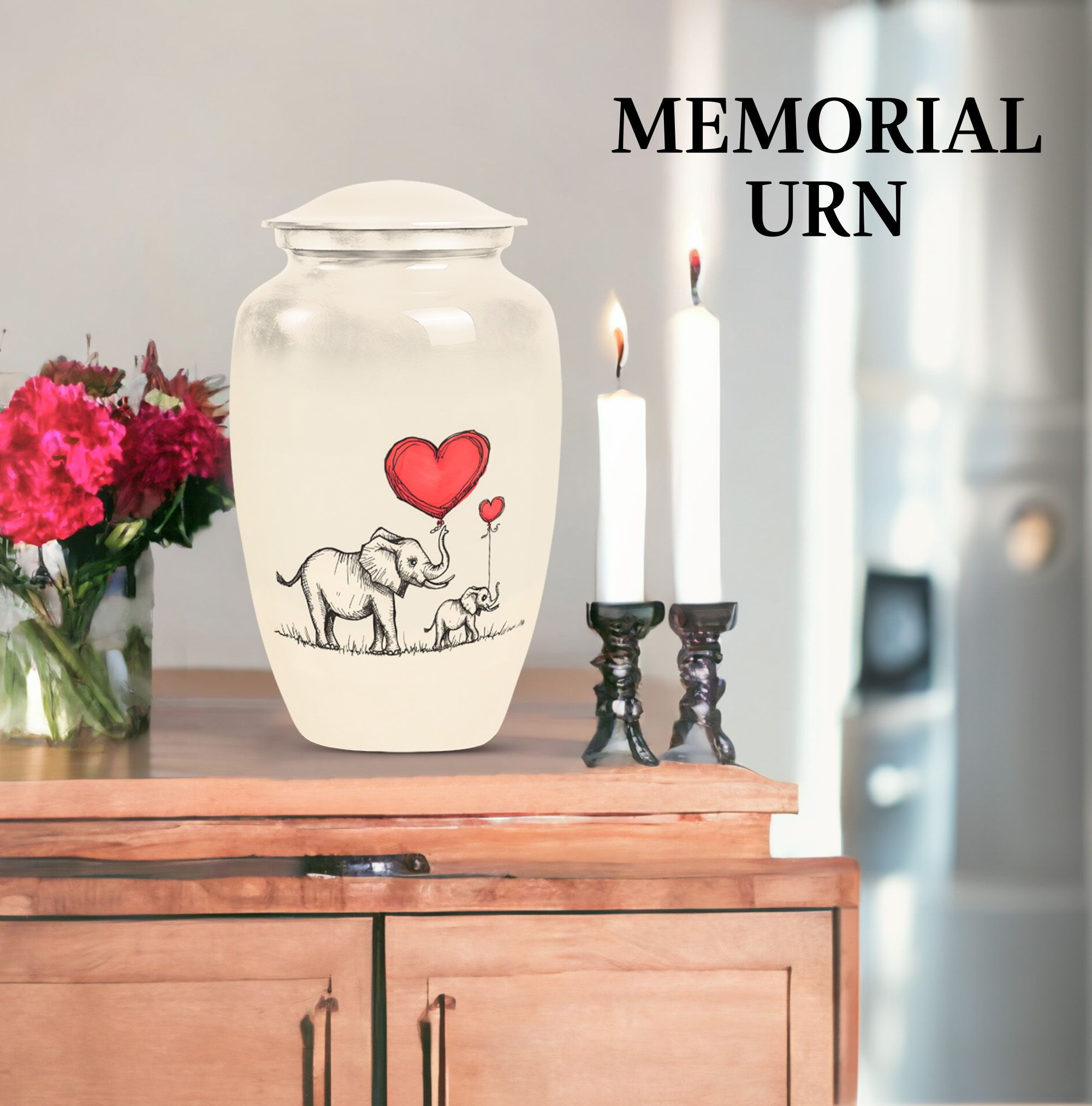 Elevate your tribute to your loved ones with our meticulously fashioned 10 Inch Elephant Family Urn. Crafted from robust aluminium, this large urn weighs a study 3.3 pounds and stands at a dignified height of 10 inches. Able to hold up to 200 cubic inches of remains, it offers ample space for adult human ashes, making it an apt choice for either men or women. The abstract theme adds an artistic touch to the classic urn design, which is further accentuated by the option to personalize it with engraved names. Each purchase includes a sumptuous velvet pouch, providing a delicate containment for the ashes. Ideal for anyone on the lookout for 'burial ash urns for humans', this 'cremation urn' perfectly balances tradition with modernity. The 'elephant family urn' captures a sense of unity and eternal connection, serving as a beautiful symbol of your everlasting bond with the departed.
