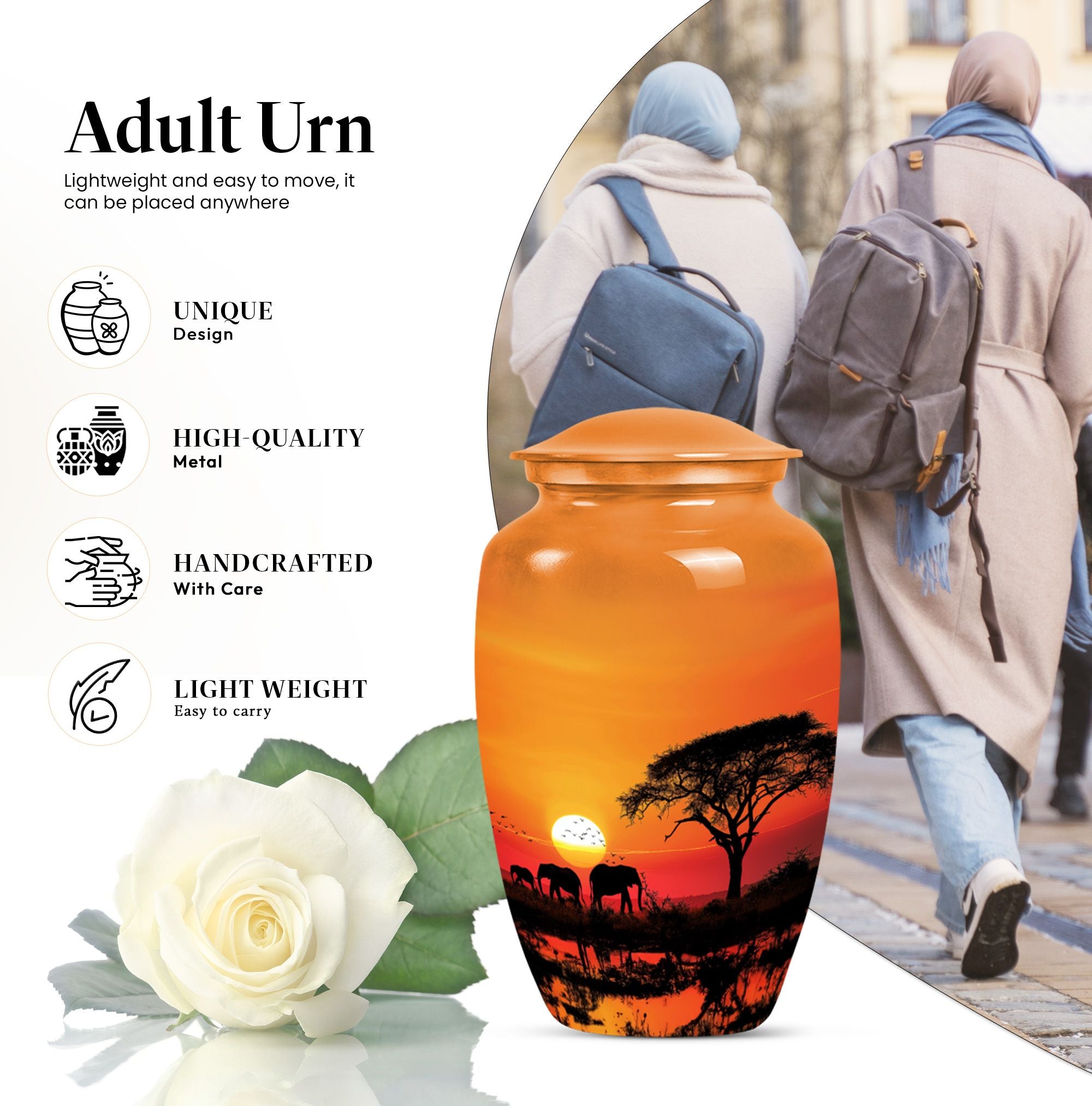 Crafted with precision, this urn combines durability and beauty in one. Made from premium aluminum, it is both sturdy and timeless. The elephant family theme reflects unity and eternal love, making it suitable for funeral urns for human ashes adult families can cherish. Designed for secure use, it represents a perfect choice for cremation urns large adult loved ones deserve, blending aesthetics with functionality.