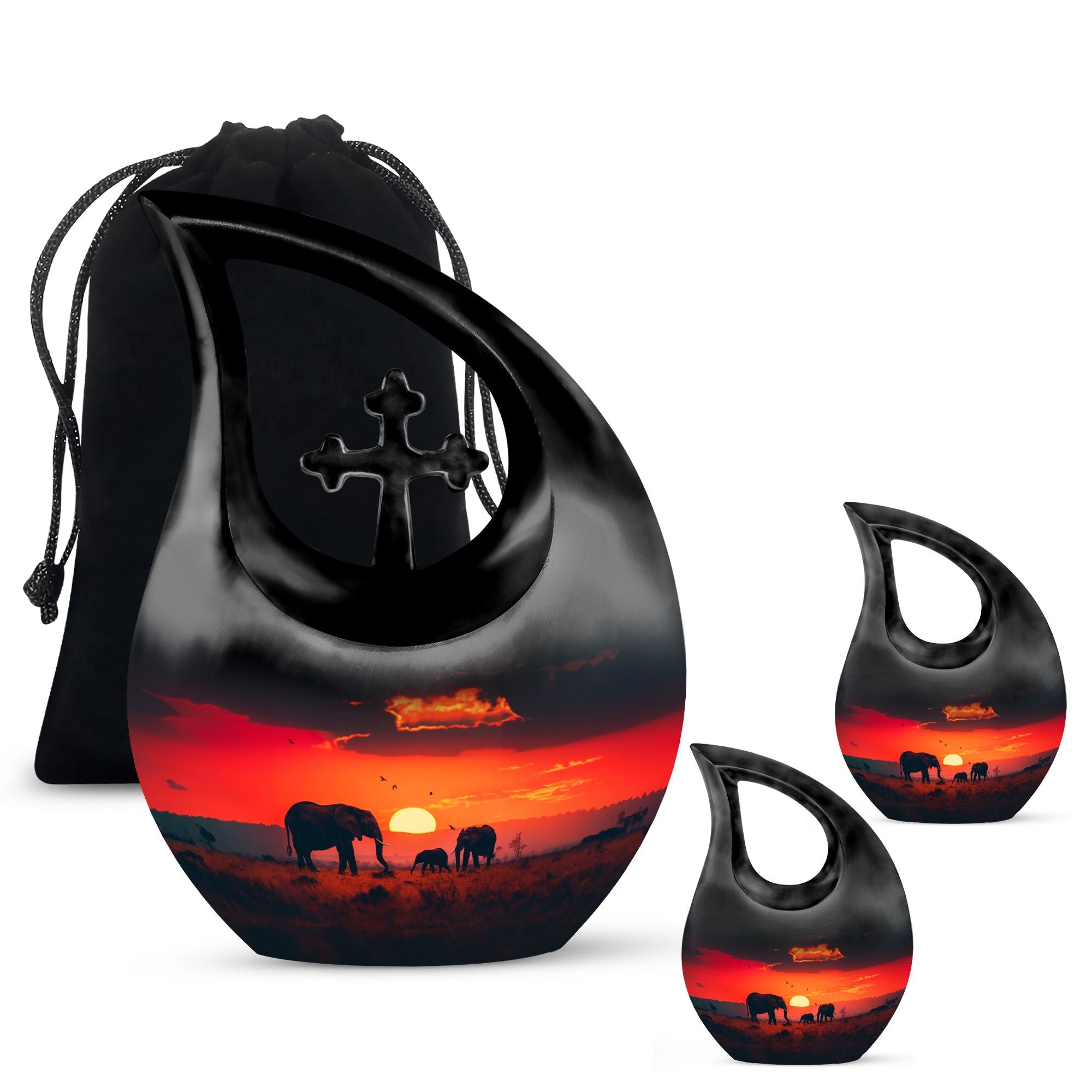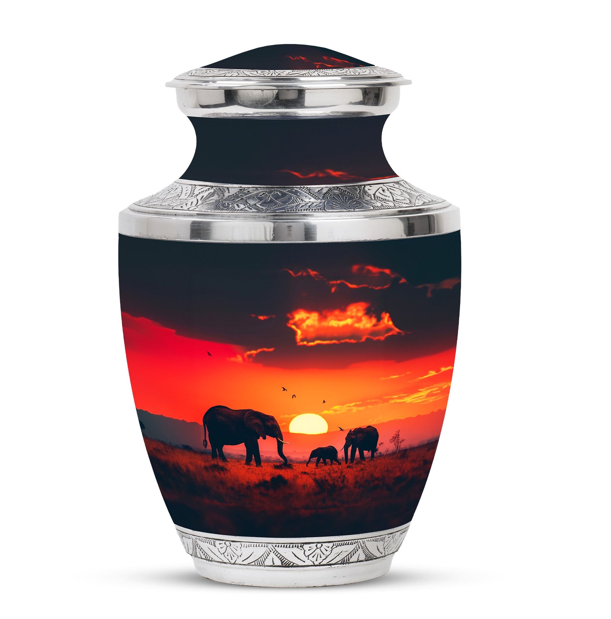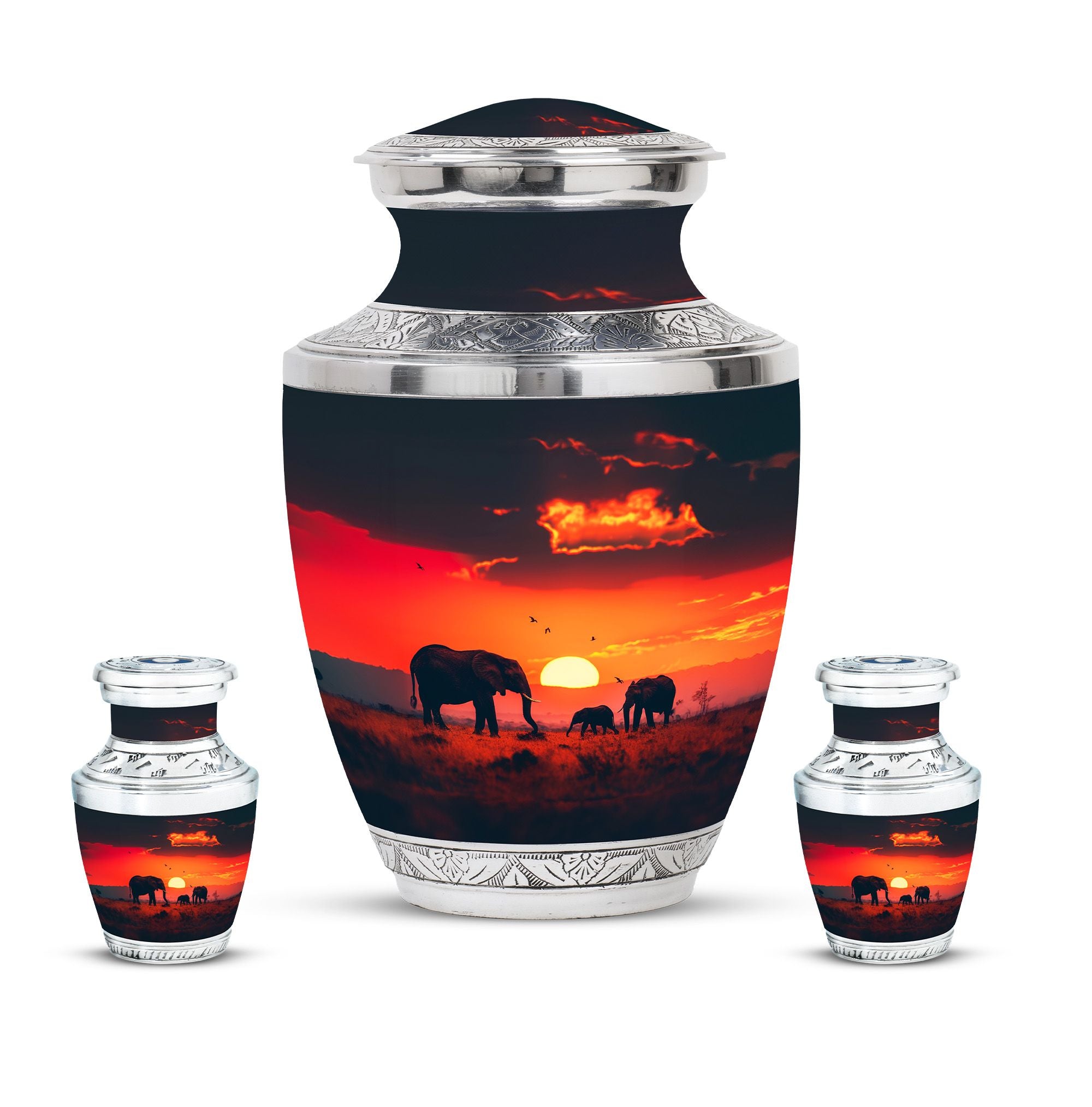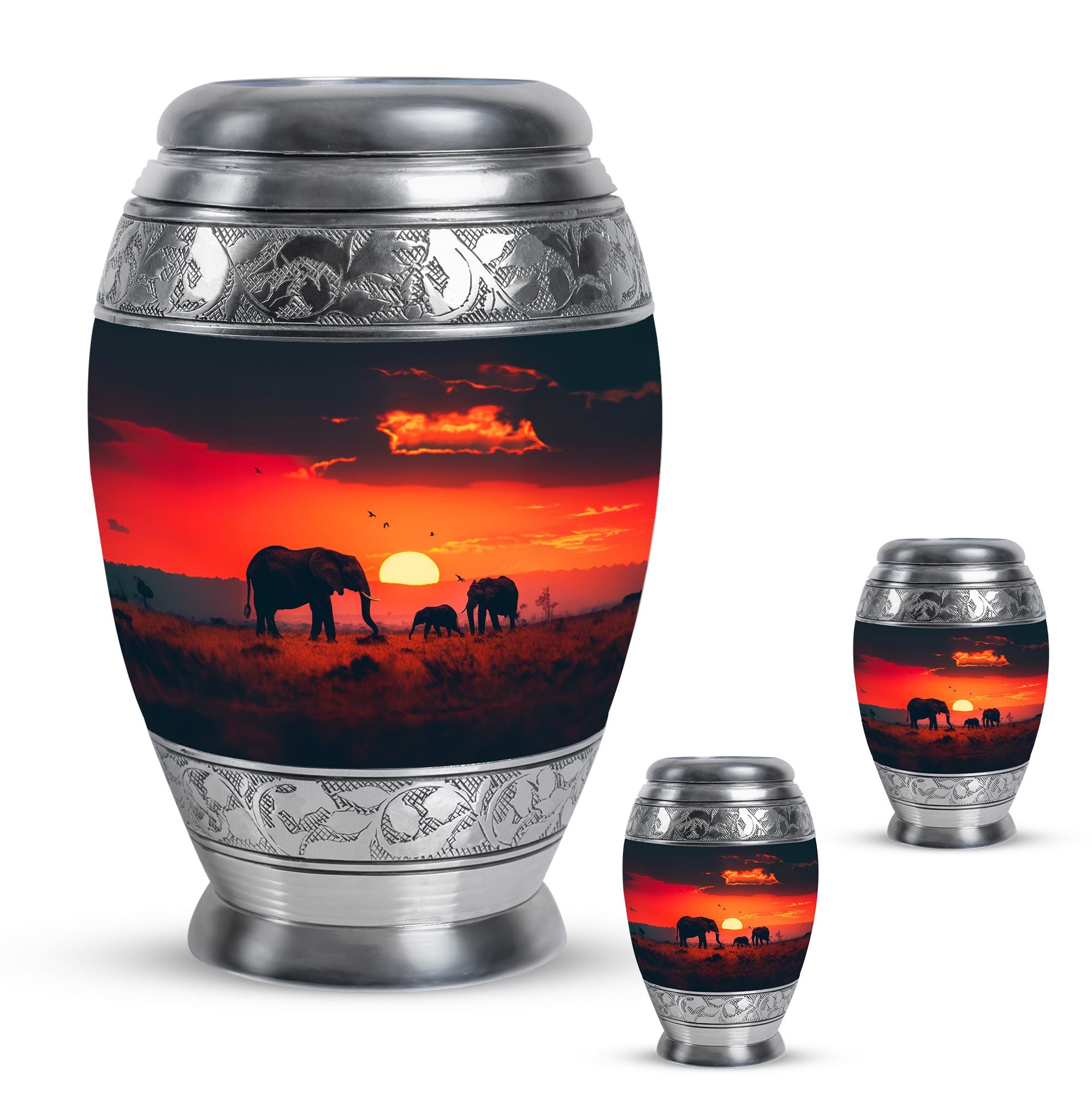 The **Elephant Family Medium Urn** **symbolizes love, unity, and strength, providing a meaningful resting place for your loved one**.