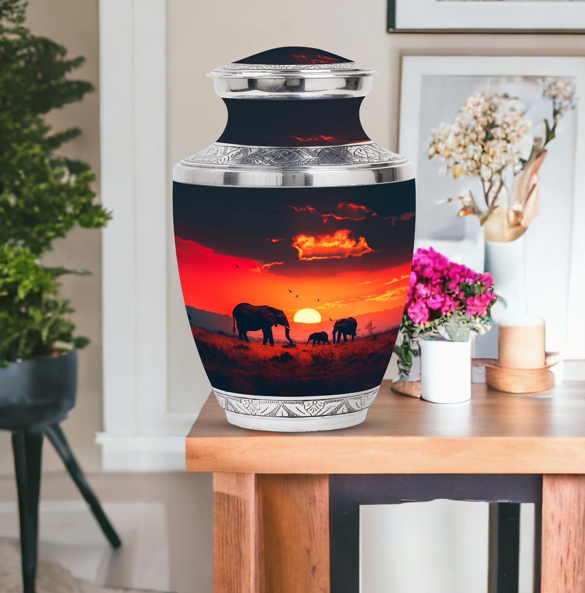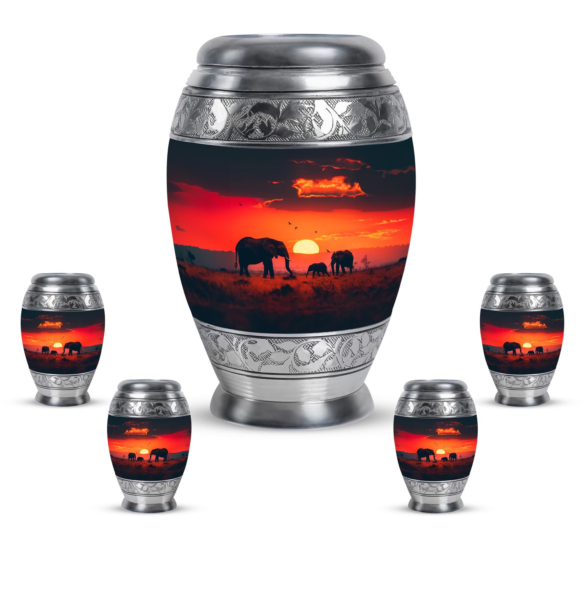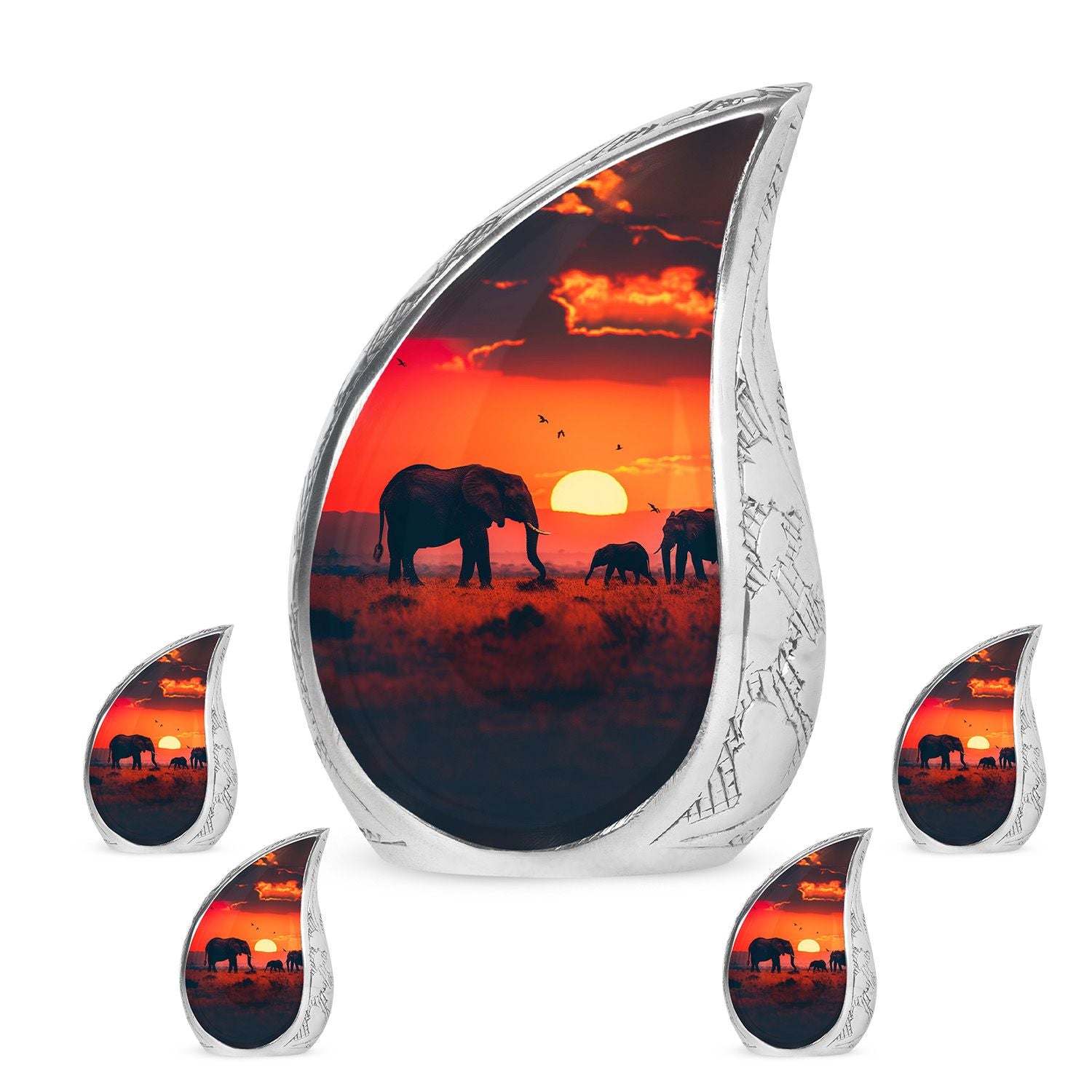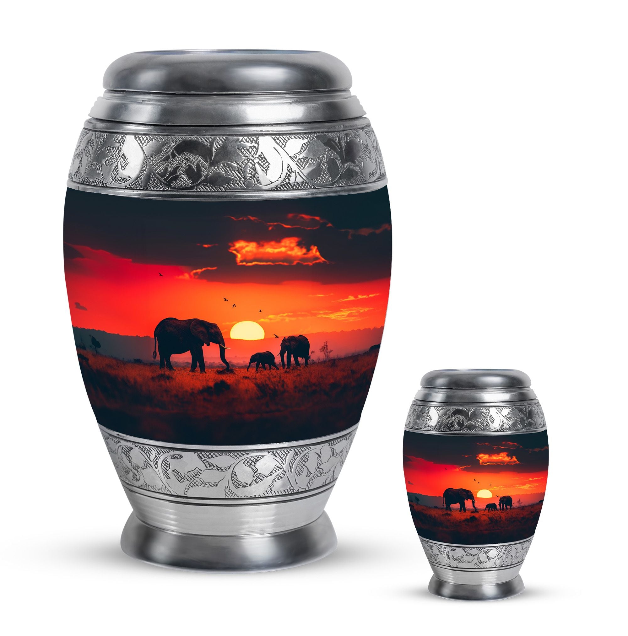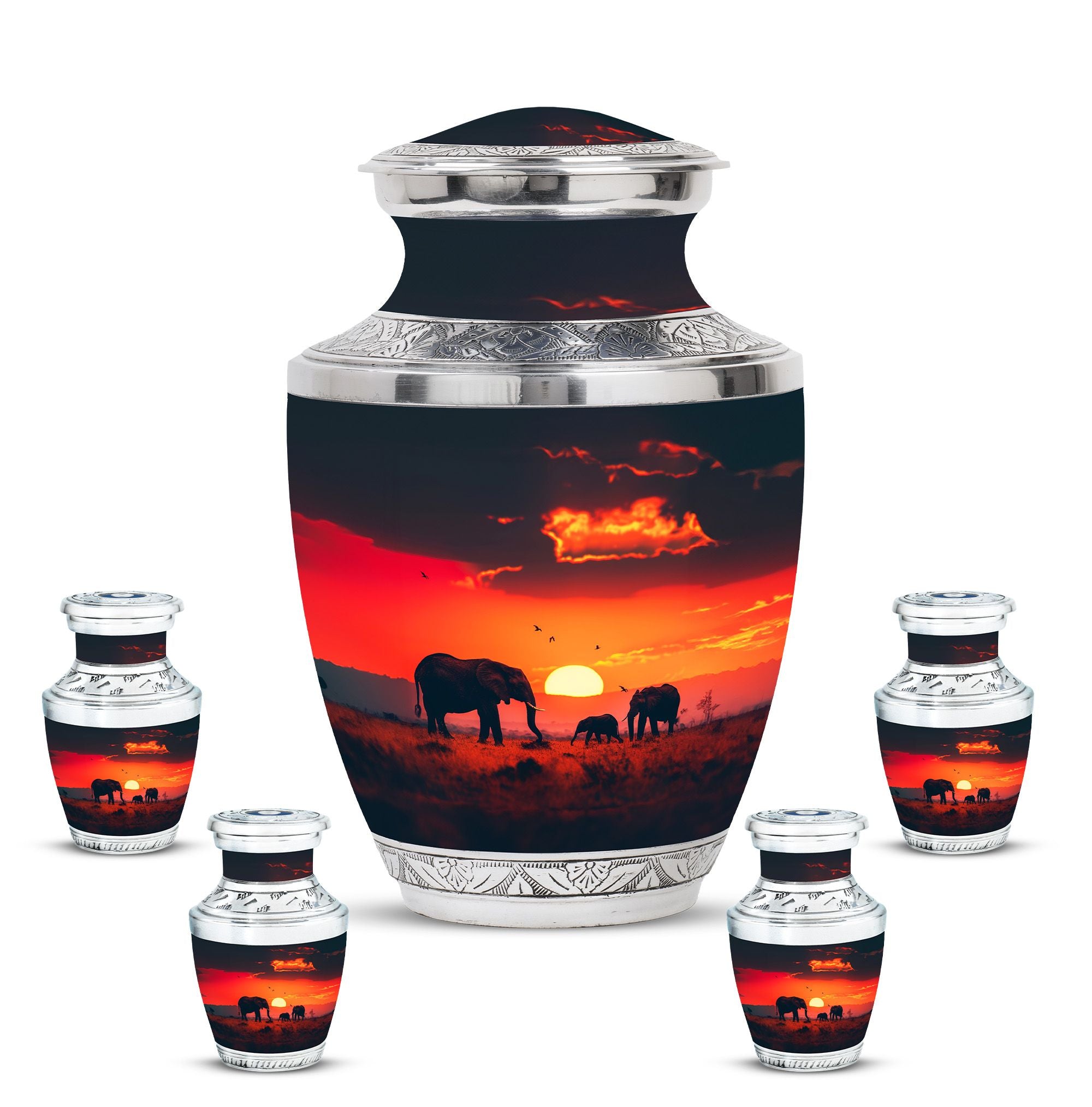 The **Elephant Family Medium Urn** **symbolizes love, unity, and strength, providing a meaningful resting place for your loved one**.