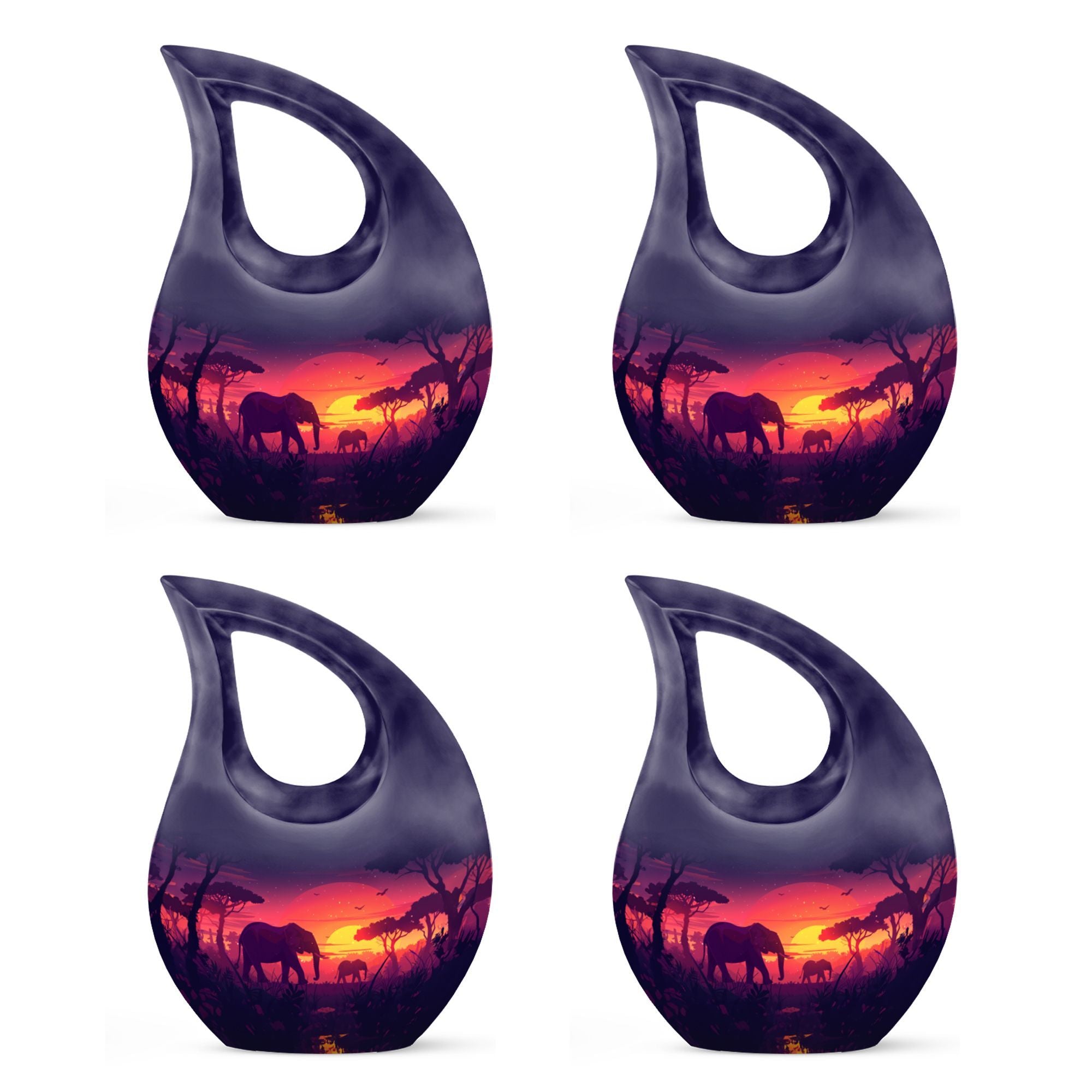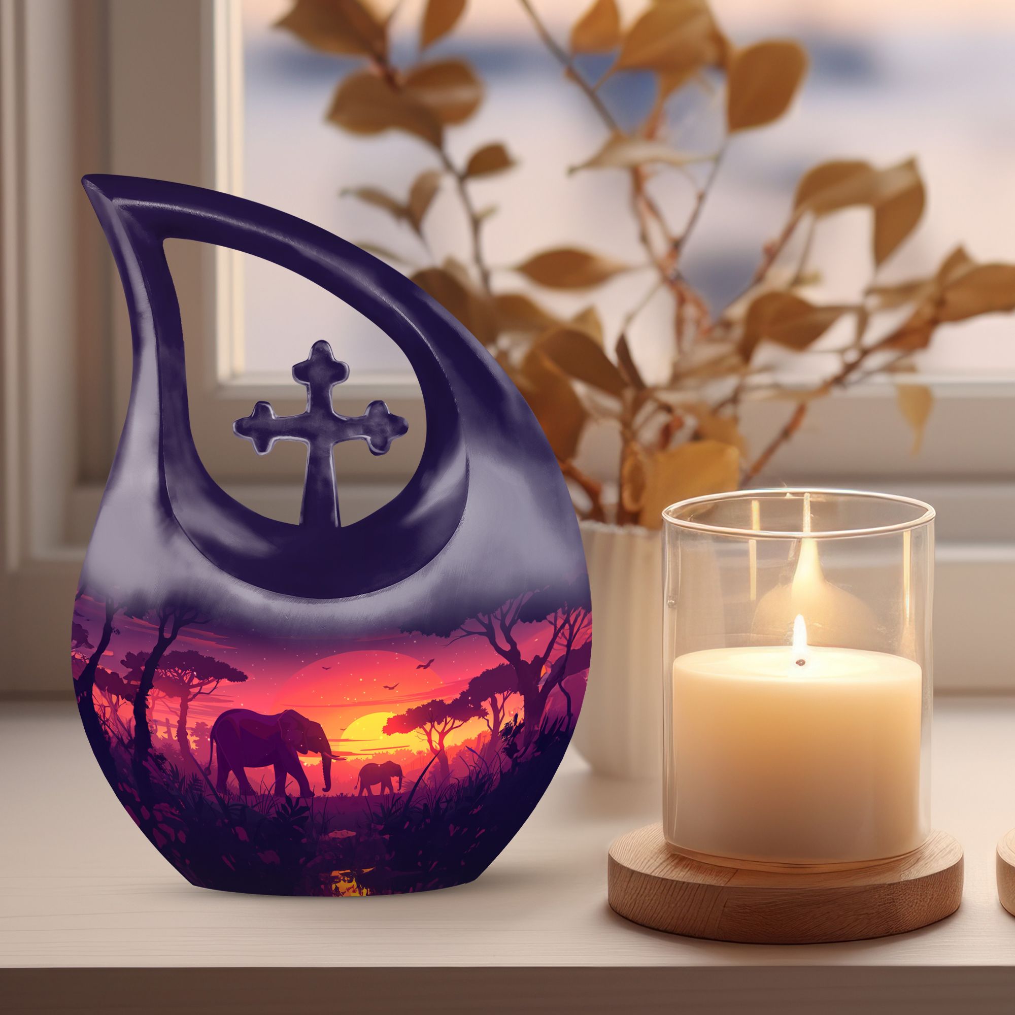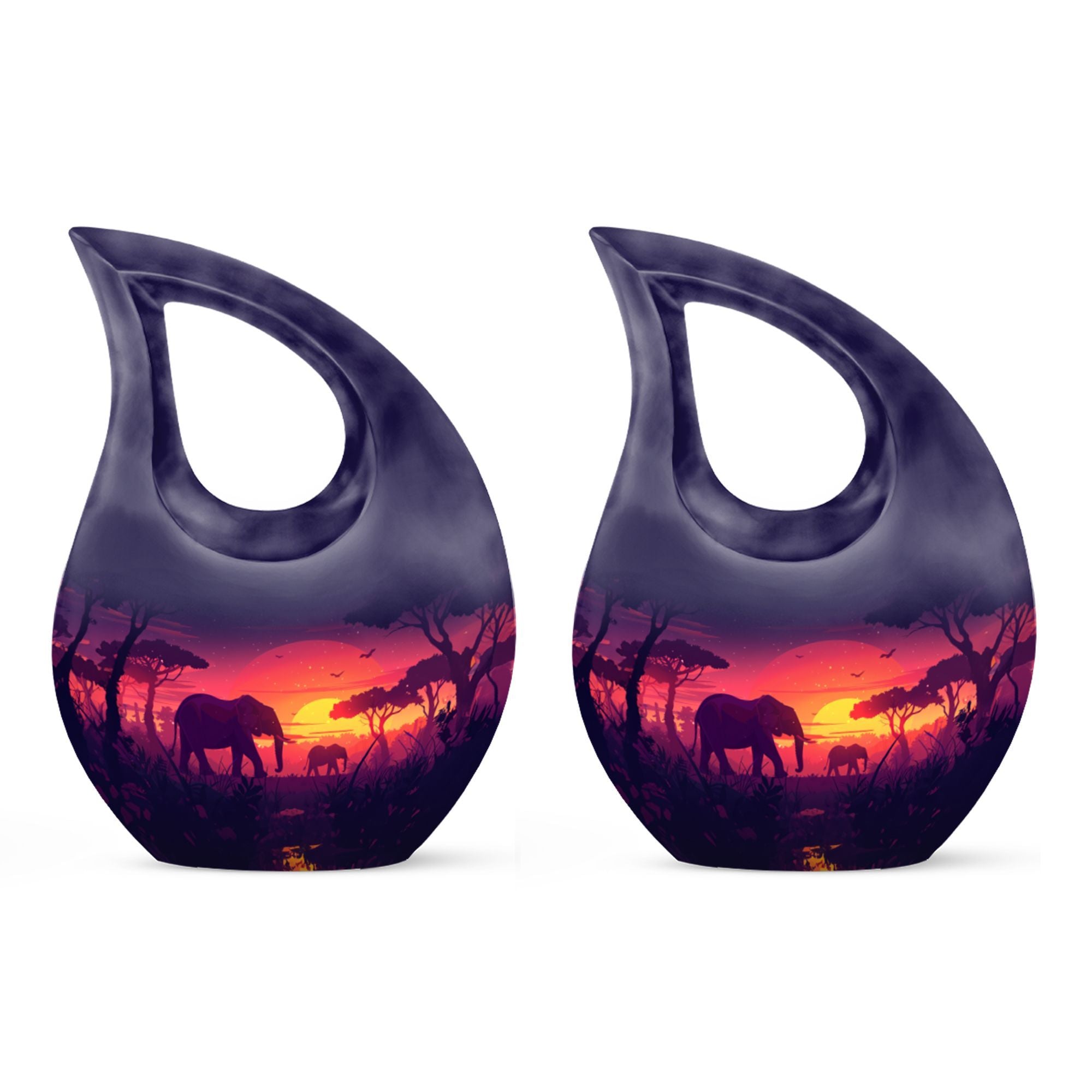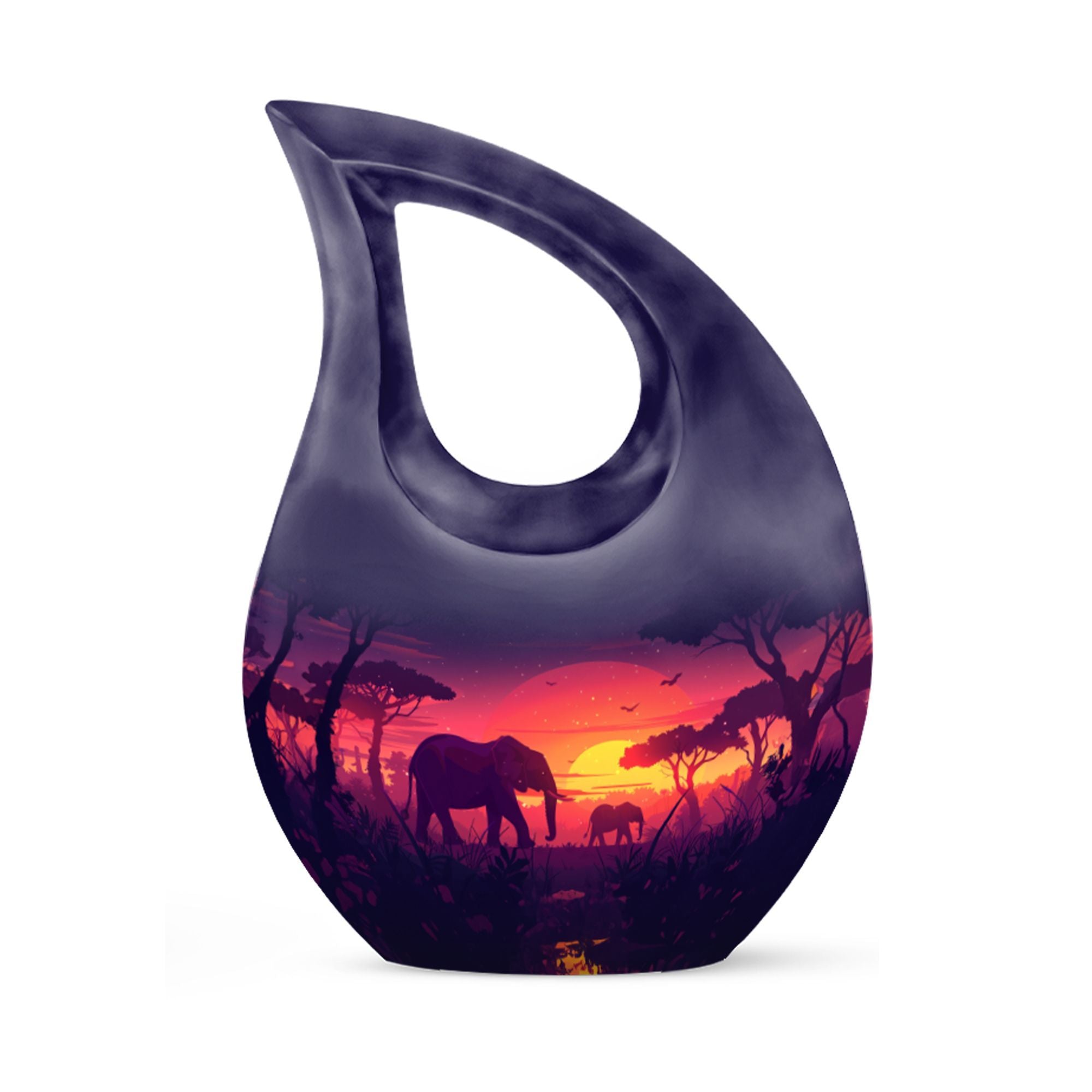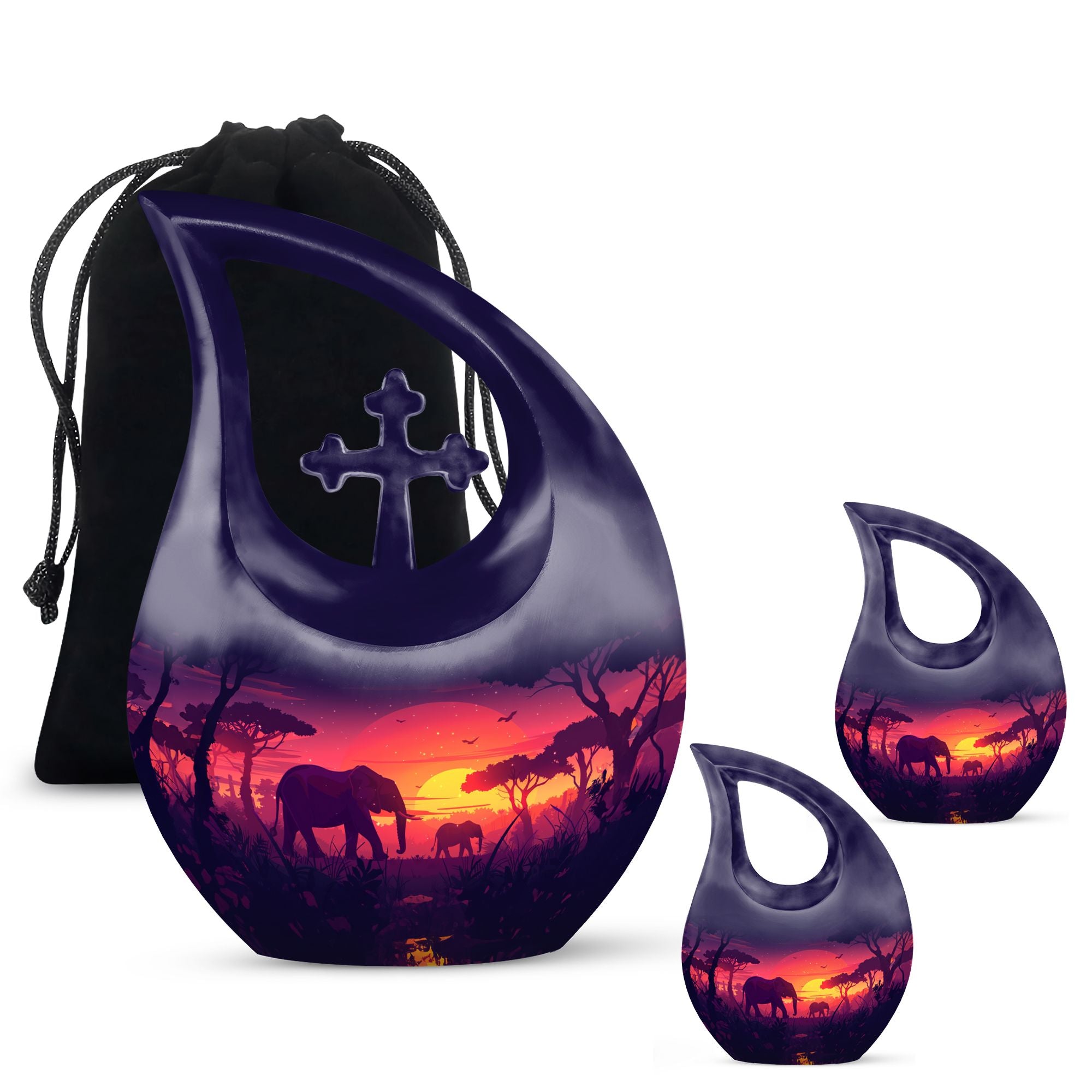 Honoring a loved one's memory becomes a dignified affair with this unique Elephant Family Urn. Made from high-grade Aluminium, this Large Urn stands 10 inches tall and weighs 3.3 pounds, offering a generous capacity of 200 cubic inches. The craftsmanship embraces an extraordinary Cross Drop theme that flawlessly incarnates the eternal familial bond of an elephant family. Its style is not just in its visuals, as it also comes with a velvet pouch, ensuring the safe containment of your beloved's ashes. A prominent advantage of this Urn is its customization feature, where engraved names truly personalize the memorial experience. Despite being a Cheap Cremation Urn, it does not compromise on quality, making it a popular choice in memorial urns. Additionally, it serves well in the categories of Urns For Human Ashes, Low Cost Cremation Urn, Cremation Containers, and Urns For Ashes.