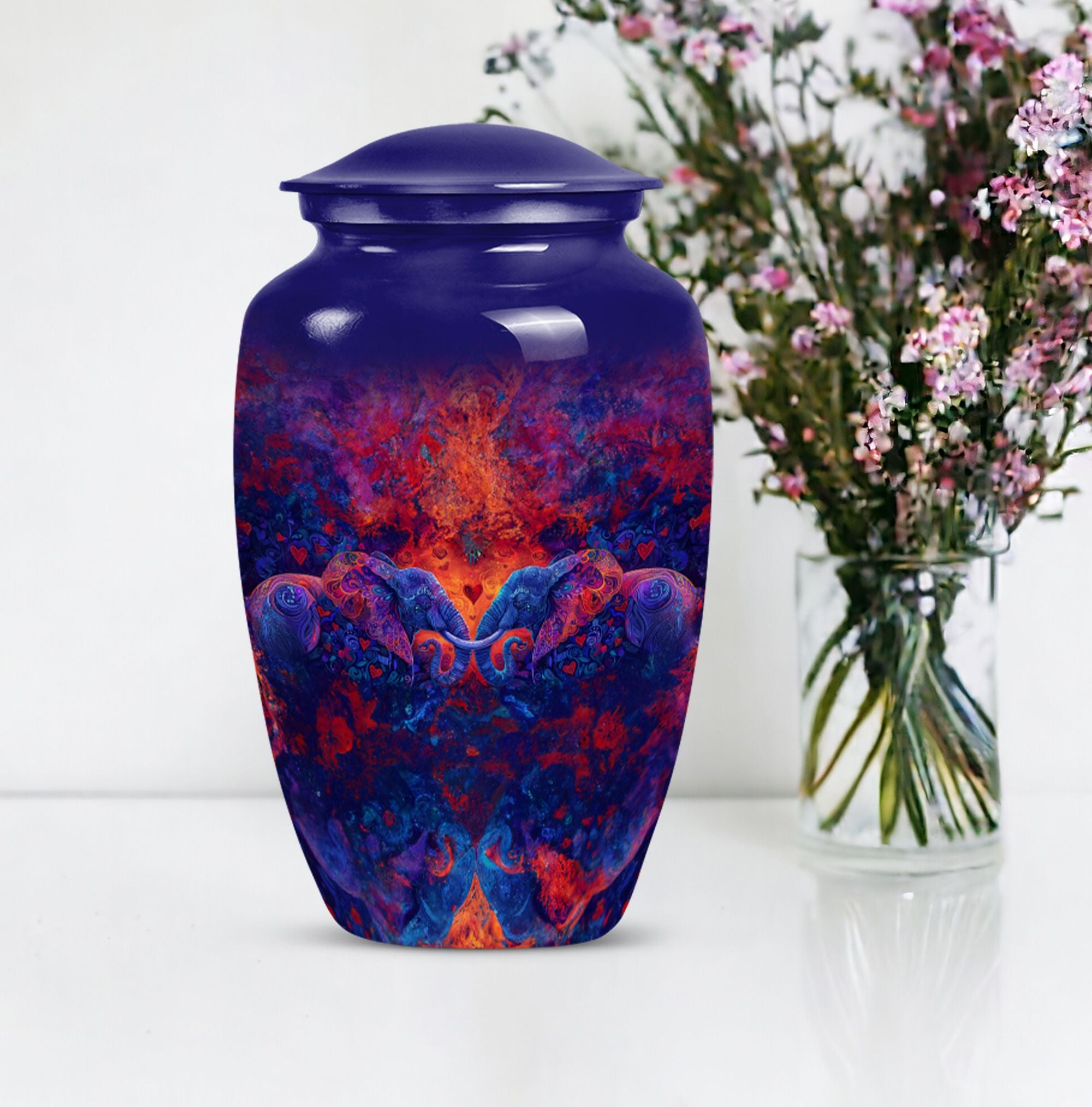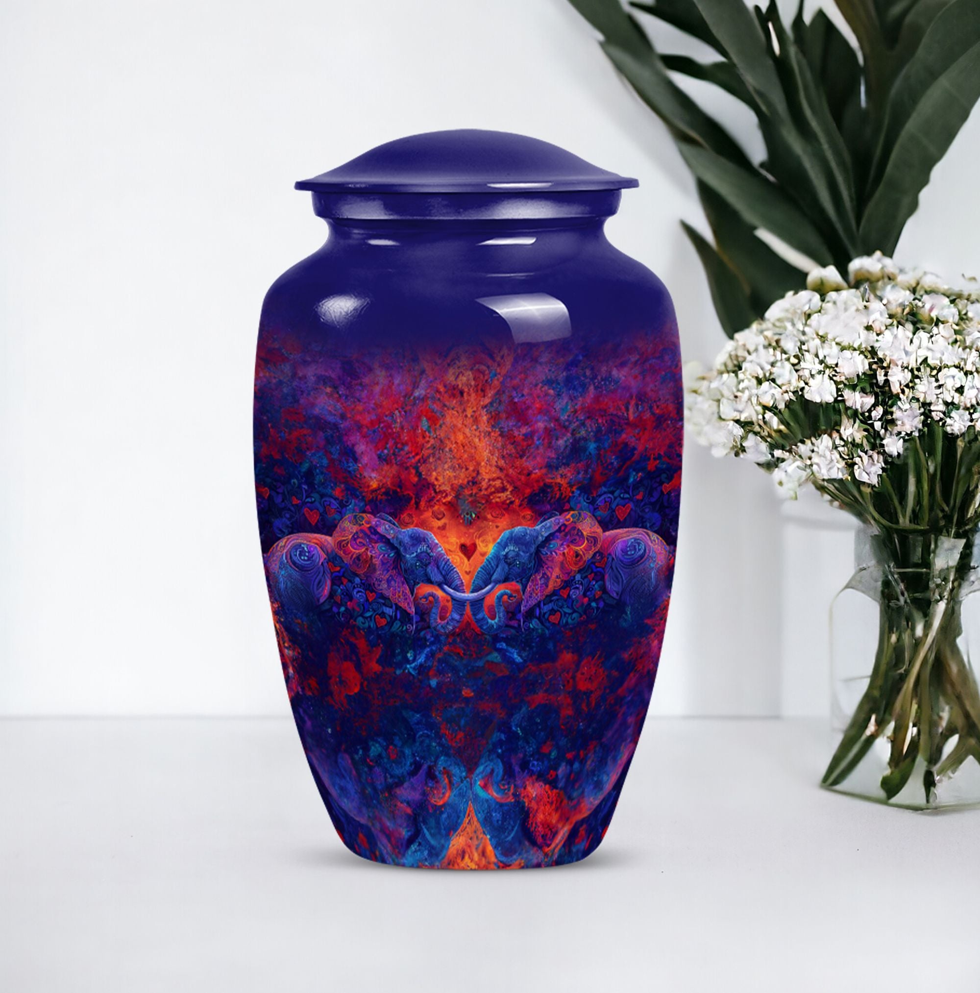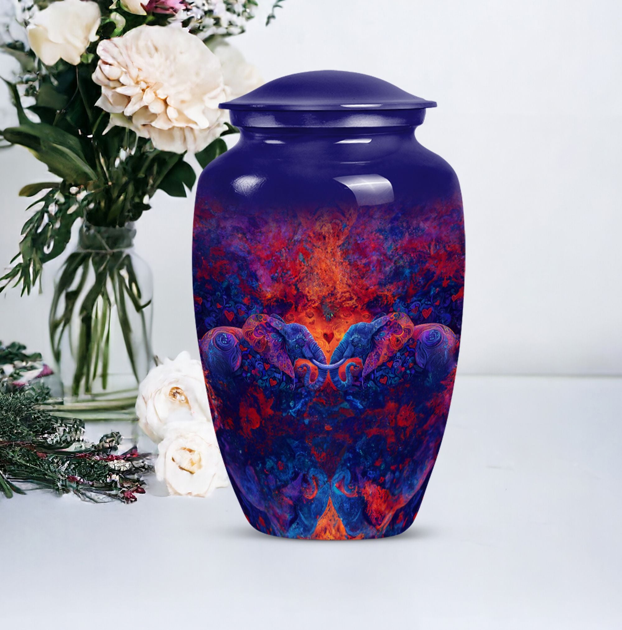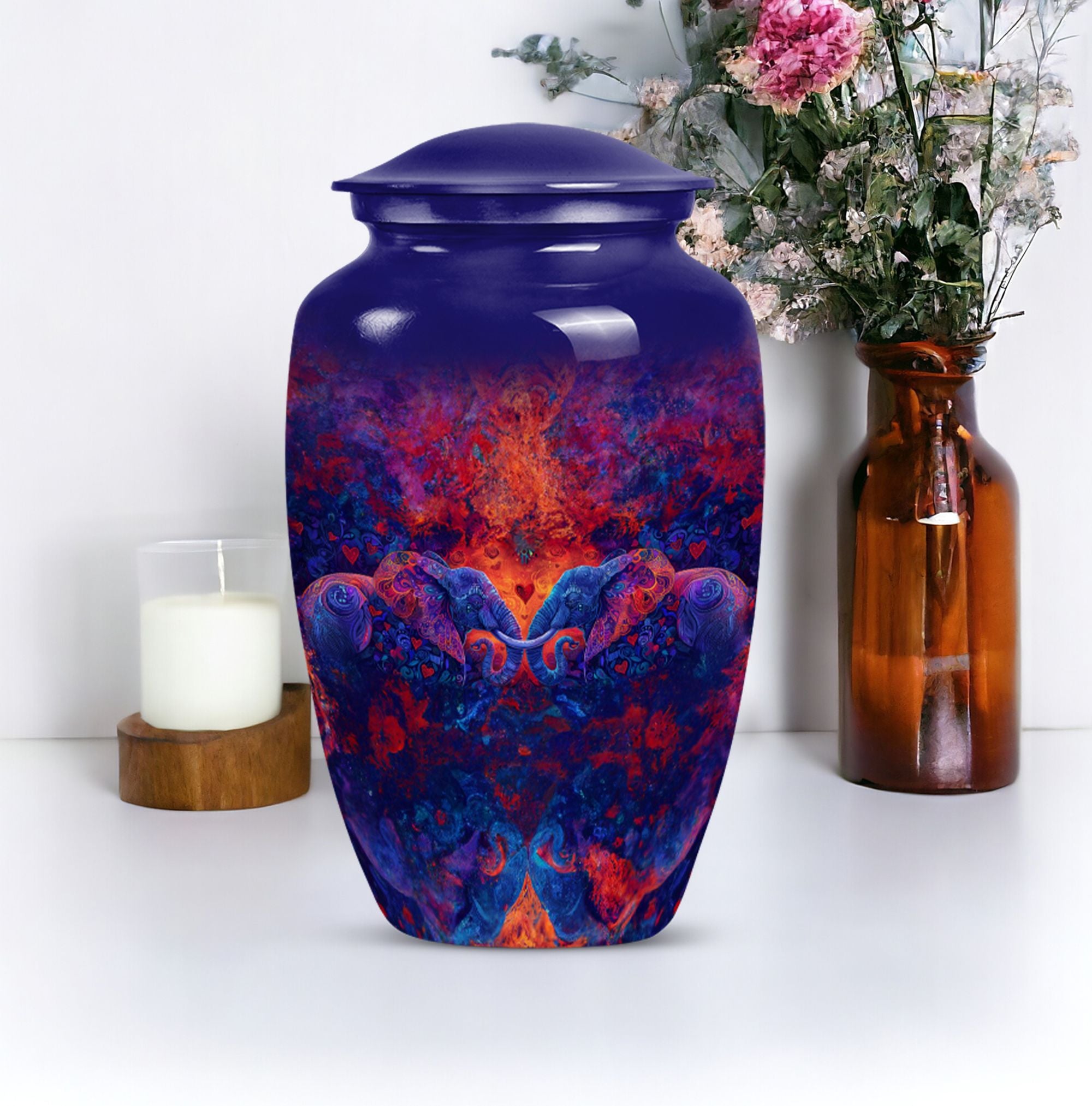 Celebrate the eternal bond with the Elephant Family Urn, a superbly made funeral urn for human ashes. Crafted from durable Aluminium, this large 10-inch urn is as poignant as it is practical, with a capacity of 200 cubic inches, making it an ideal resting place for your loved one. Weighing 3.3 pounds, its solid presence provides a sense of comfort and assurance. The classic urn design, adorned with a subtle butterfly theme, adds a touching symbolism to its purpose. Offering the unique option of personalization, you can engrave names to make it even more special. This urn comes with a velvet pouch for delicate containment and safekeeping of the ashes. Remember your loved ones with the timeless stone urns for lasting memories. This shaped urn is a perfect tribute to the enduring love and memories you shared. Offering more than just a place to keep ashes, it's a meaningful piece that stands as a testament to a life well-lived.
