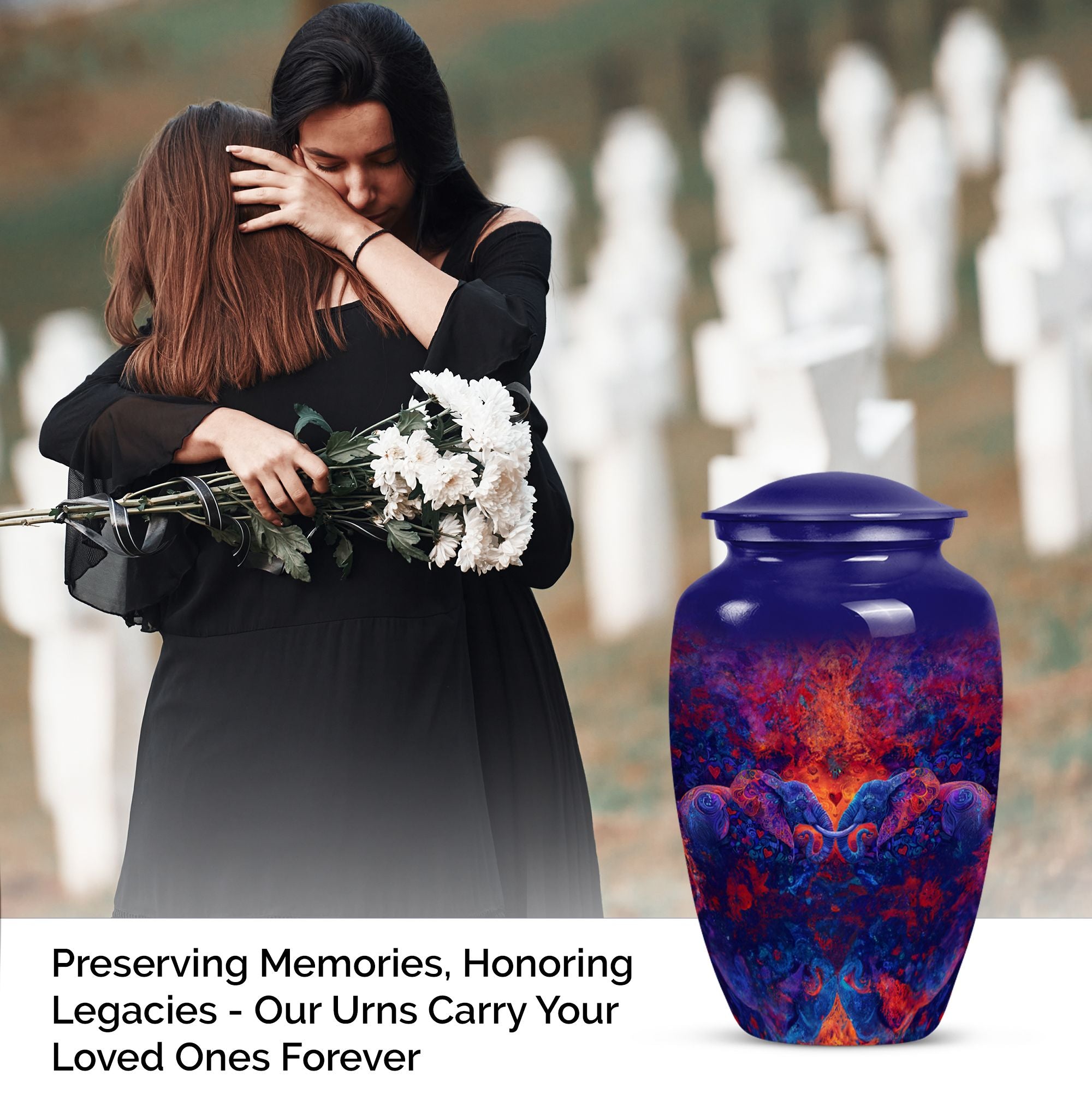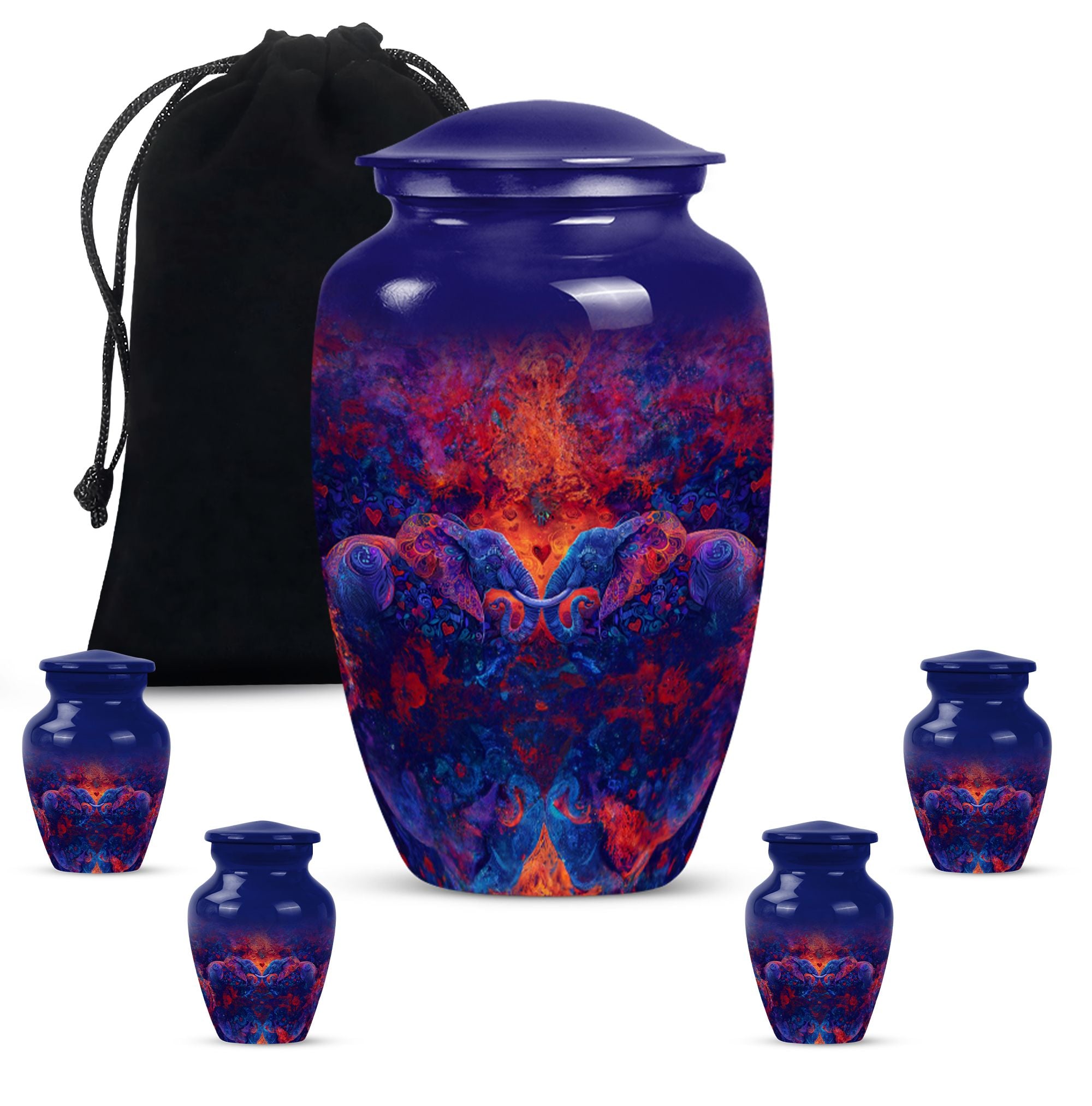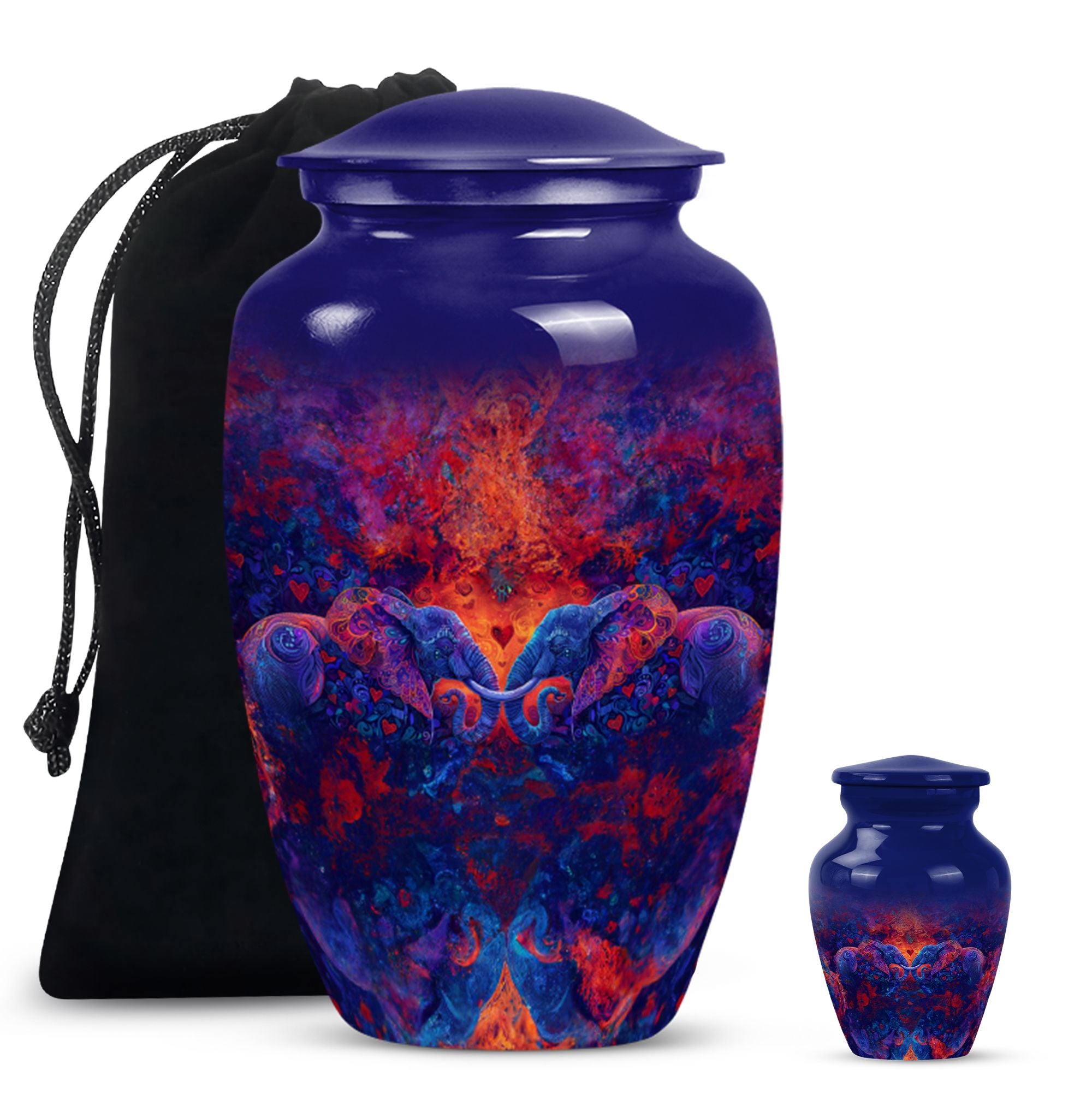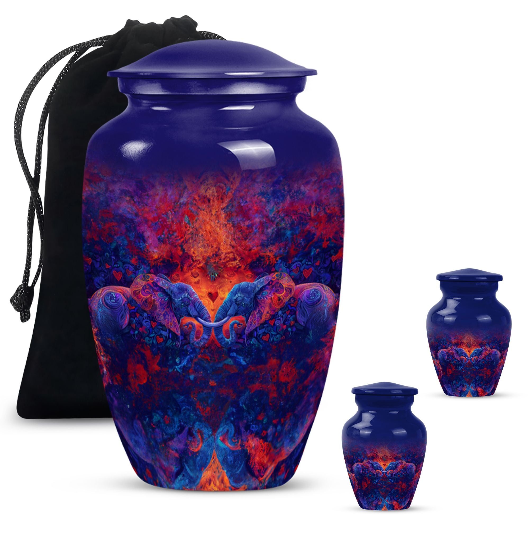 Celebrate the eternal bond with the Elephant Family Urn, a superbly made funeral urn for human ashes. Crafted from durable Aluminium, this large 10-inch urn is as poignant as it is practical, with a capacity of 200 cubic inches, making it an ideal resting place for your loved one. Weighing 3.3 pounds, its solid presence provides a sense of comfort and assurance. The classic urn design, adorned with a subtle butterfly theme, adds a touching symbolism to its purpose. Offering the unique option of personalization, you can engrave names to make it even more special. This urn comes with a velvet pouch for delicate containment and safekeeping of the ashes. Remember your loved ones with the timeless stone urns for lasting memories. This shaped urn is a perfect tribute to the enduring love and memories you shared. Offering more than just a place to keep ashes, it's a meaningful piece that stands as a testament to a life well-lived.