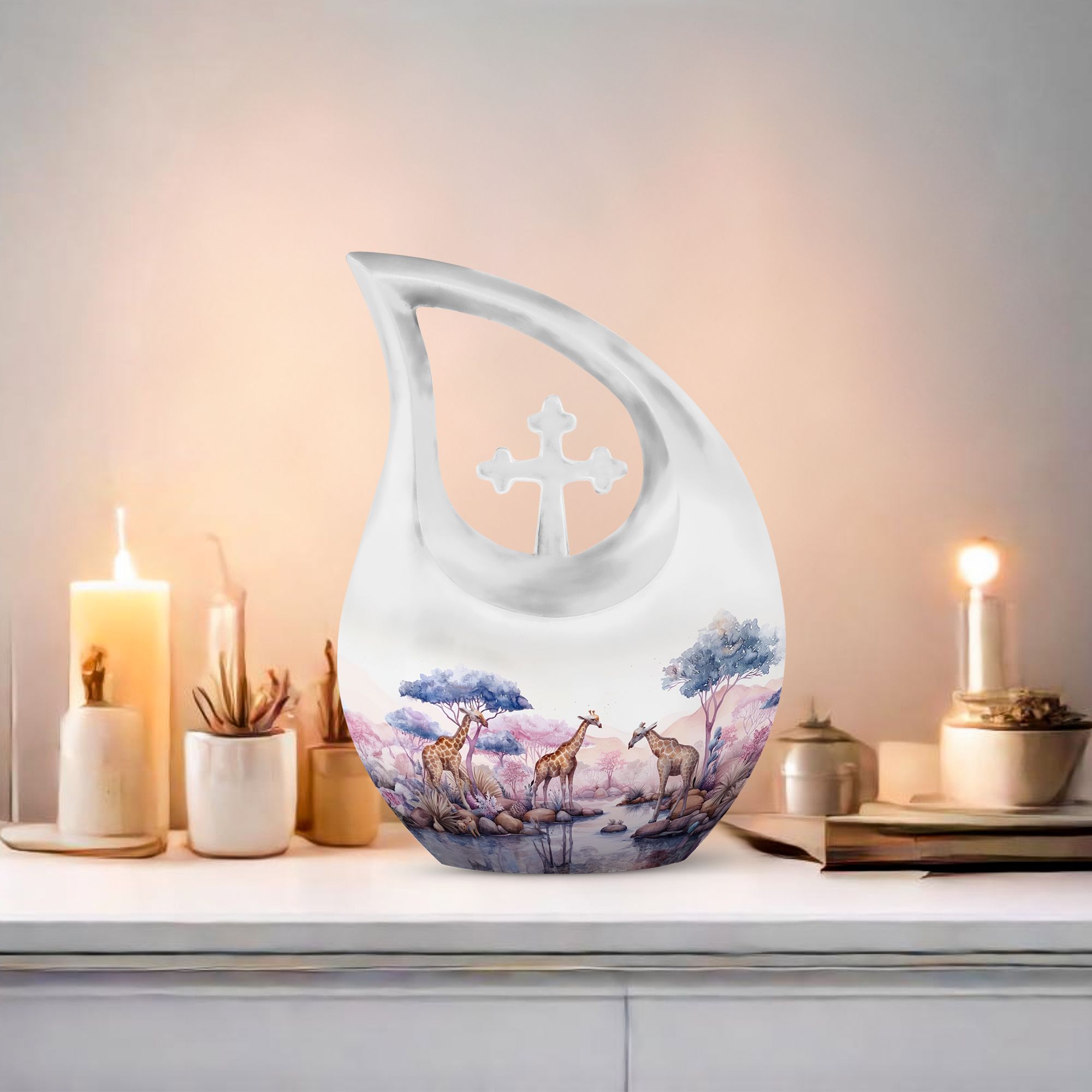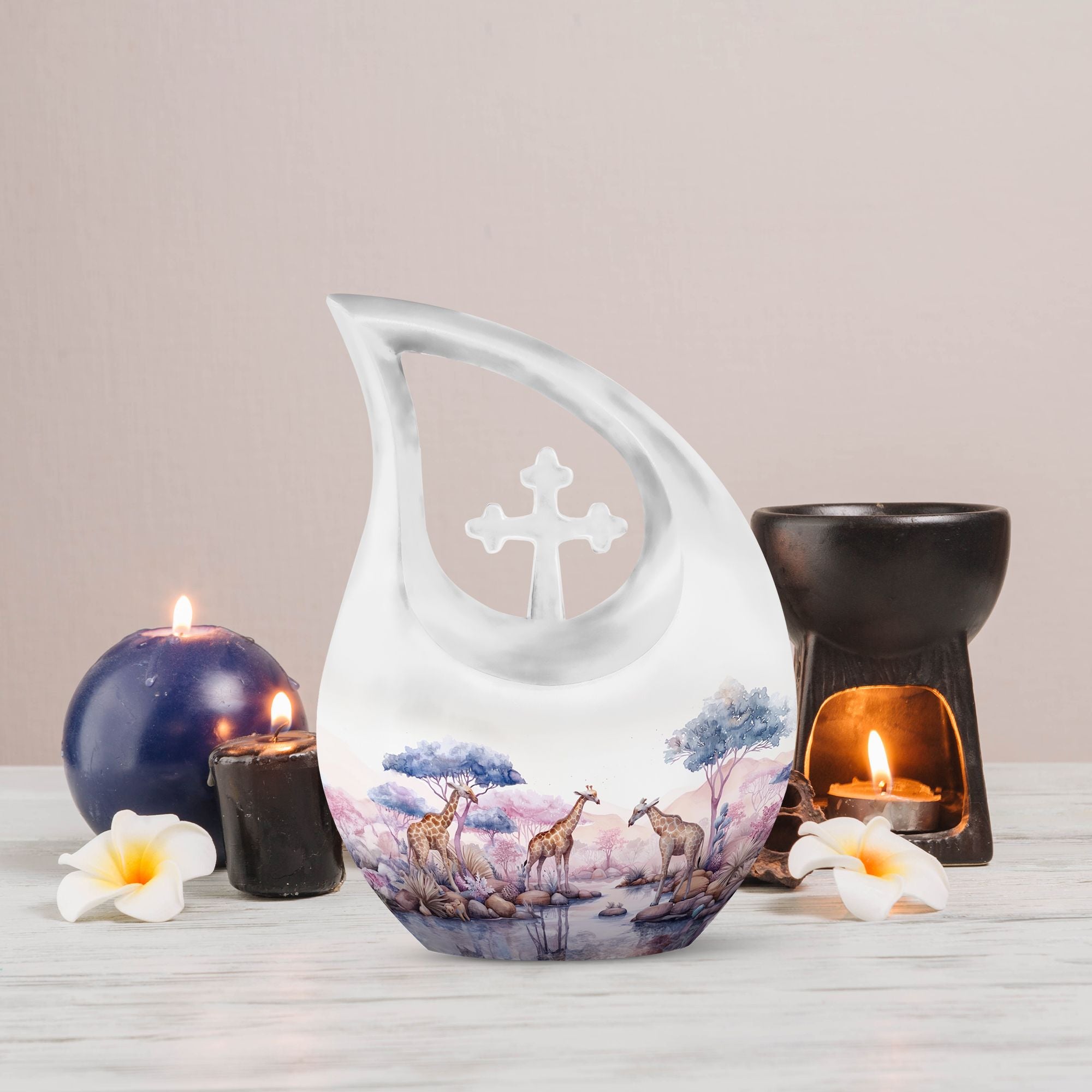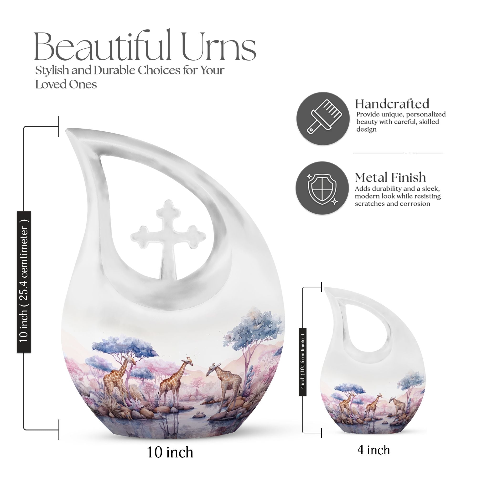 The Elephant Family Urn is an exclusive centerpiece designed for your loved ones. Crafted from the finest aluminium, it stands 10 inches tall and carries an impressive weight of 3.3 pounds. With an elegant Cross Drop framework, it emanates a serene beauty. Sized at 10-inch, this large urn holds a capacity of 200 cubic inches, making it a suitable choice for any memorial. The urn comes with a plush velvet pouch, offering a dignified storage for your cherished one’s ashes. The Elephant Family Urn provides an added option to etch personalized engravings, thus preserving the memory of your loved one in a more special way. As an affordable urn, it encompasses all aspects of grandeur and sentiment. It can also be sought after as an empathetic gift. With 'Elephant Family Urn', 'Large Cremation Urns', 'Miniature Urns For Ashes' and 'Large Urns For Human Ashes' as its keywords, it is easily found in search queries, ensuring seamless purchasing experience for those in need of memorial urns. A dignified remembrance, the Elephant Family Urn is a symbol of affection, crafted for an everlasting memorial.