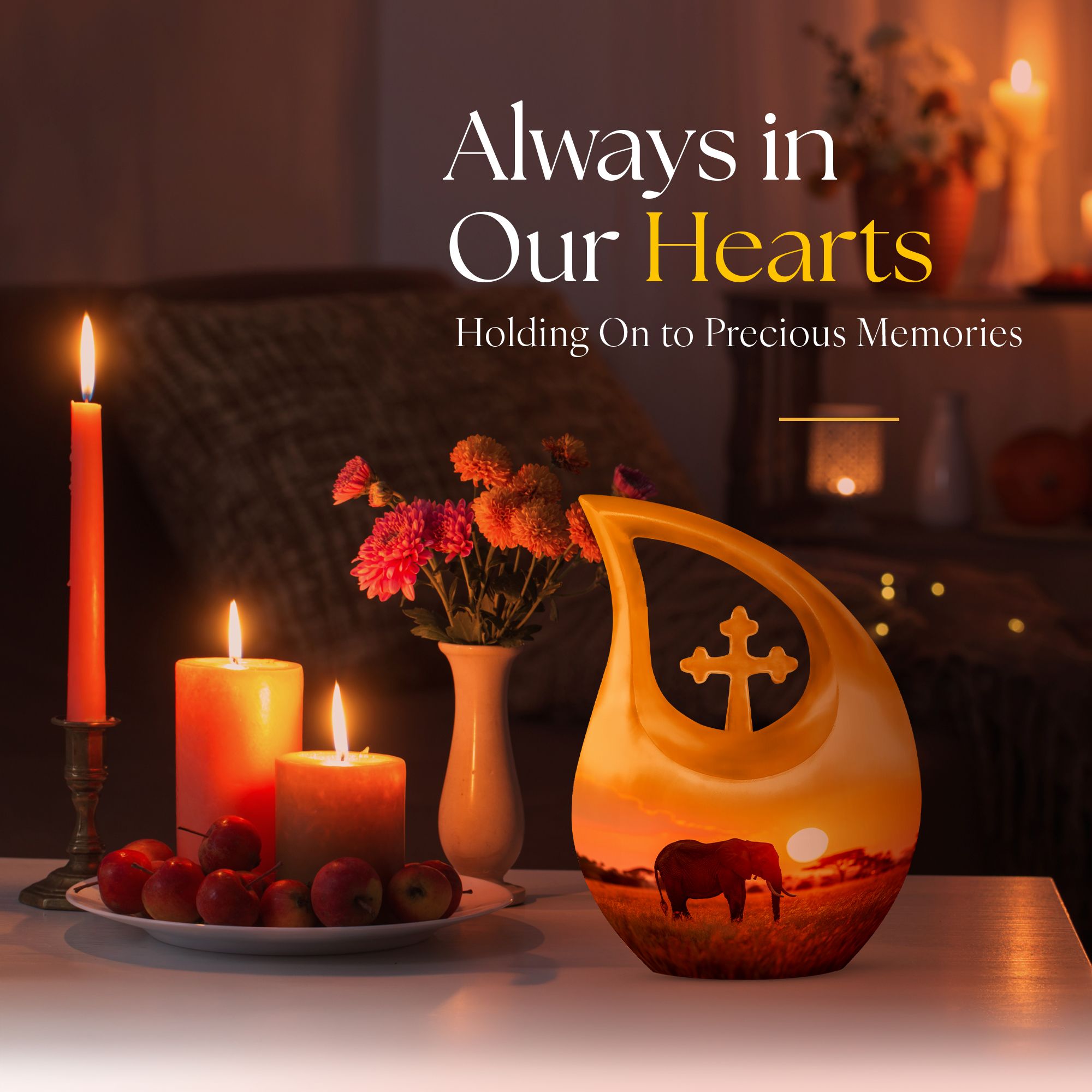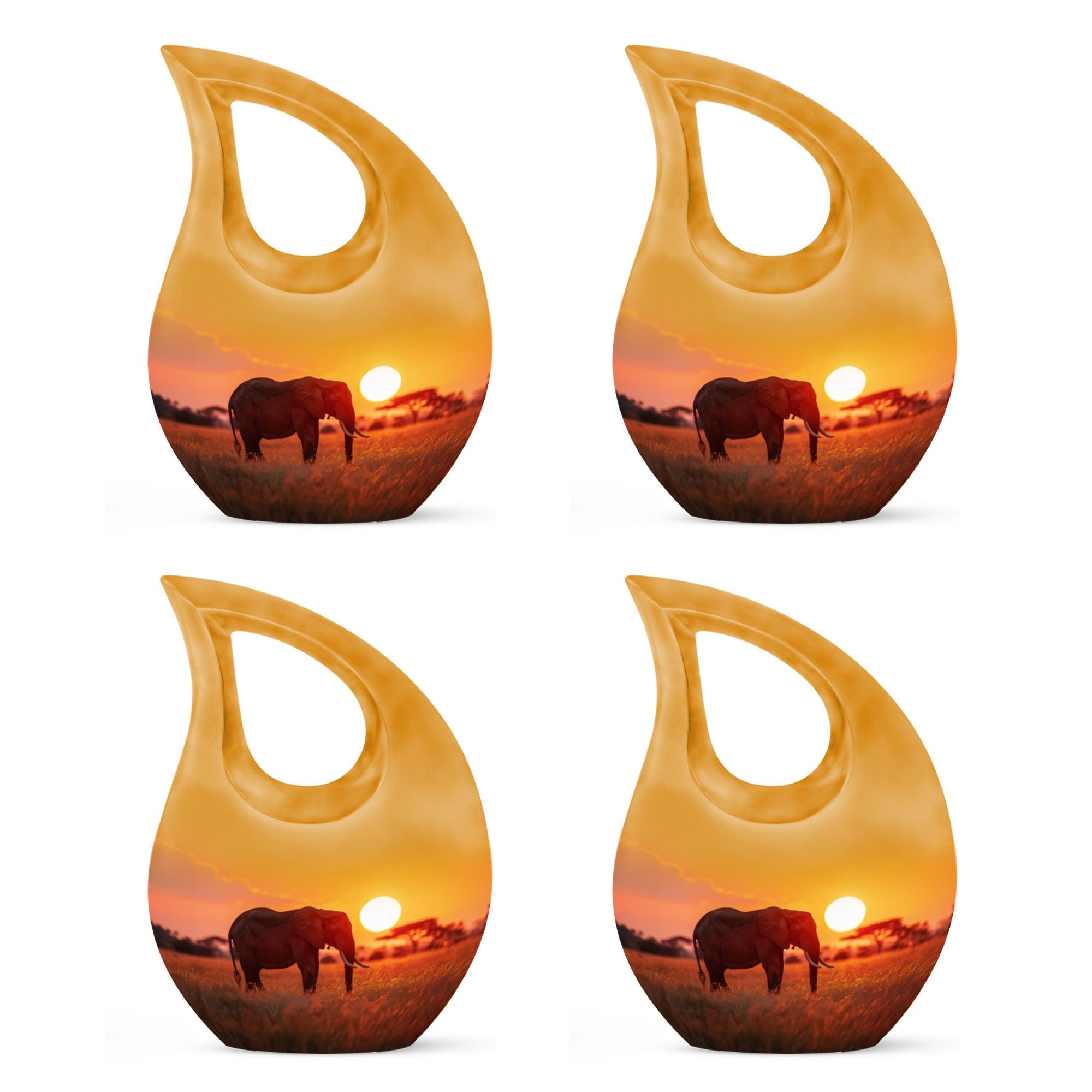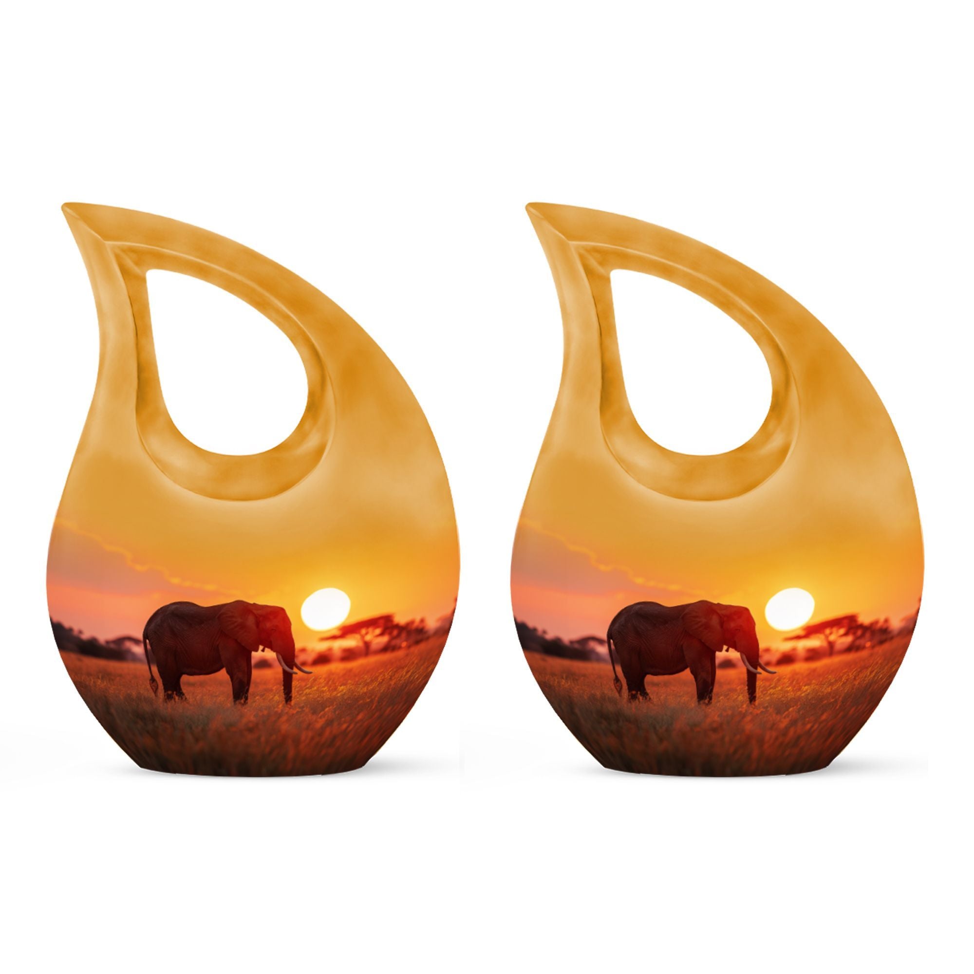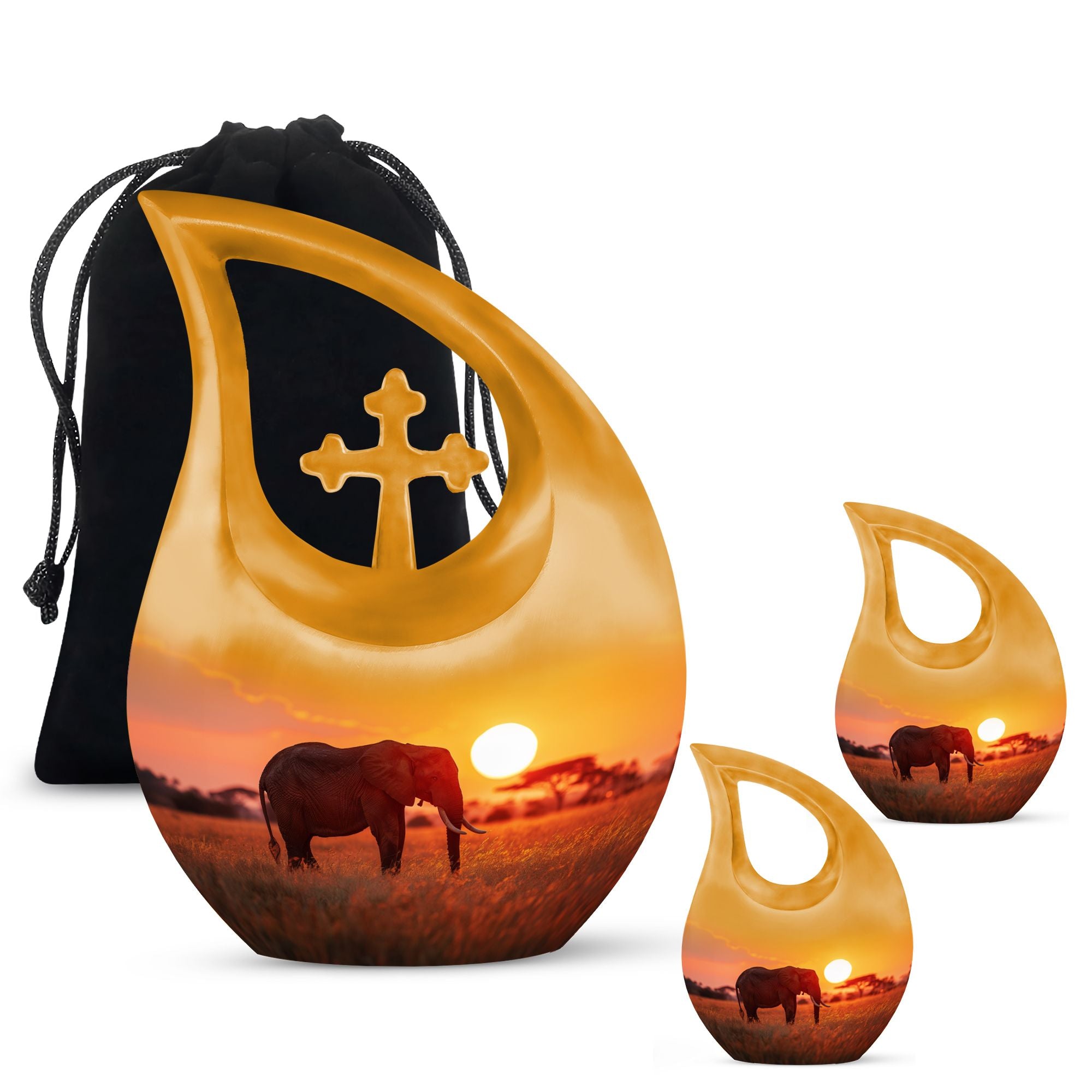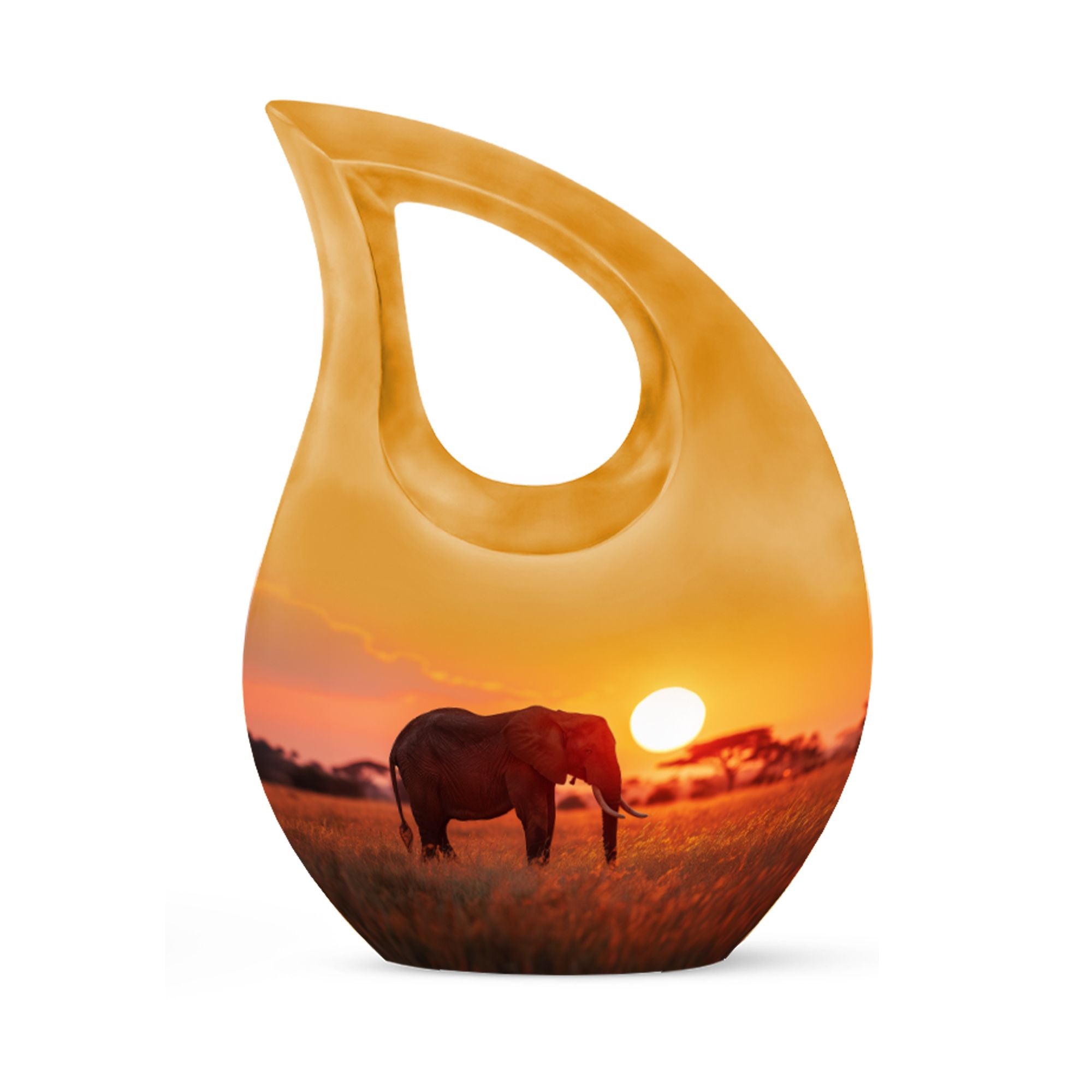 Find solace in our Extra Large Elephant Urn, a dignified and timeless way to preserve the memory of your loved one on a grand scale. This exemplar of memorial urns stands at 10 inches tall, featuring an intricately depicted Elephant theme, symbolizing strength and wisdom. Every detail is lovingly crafted from durable Aluminum, weighing a sturdy 3.3 pounds. The Cross Drop design offers a comforting touch to this resting place, symbolizing faith and hope. With a generous capacity of 200 cubic inches, it is highly suitable for larger individuals or for holding the remains of two individuals who wish to be together in eternity. Along with the urn, you will receive a soft velvet pouch, providing a respectful containment for ashes. For that extra personal touch, you can customize the urn by engraving names on it. This urn isn't just a container, it's a majestic testimony of a life well-lived. Ideal for those searching to Buy Urn or seeking the Best Urns, our Elephant Urn truly stands out in the Metal Urns For Ashes category, perfectly blending elegance with an enduring sentiment.