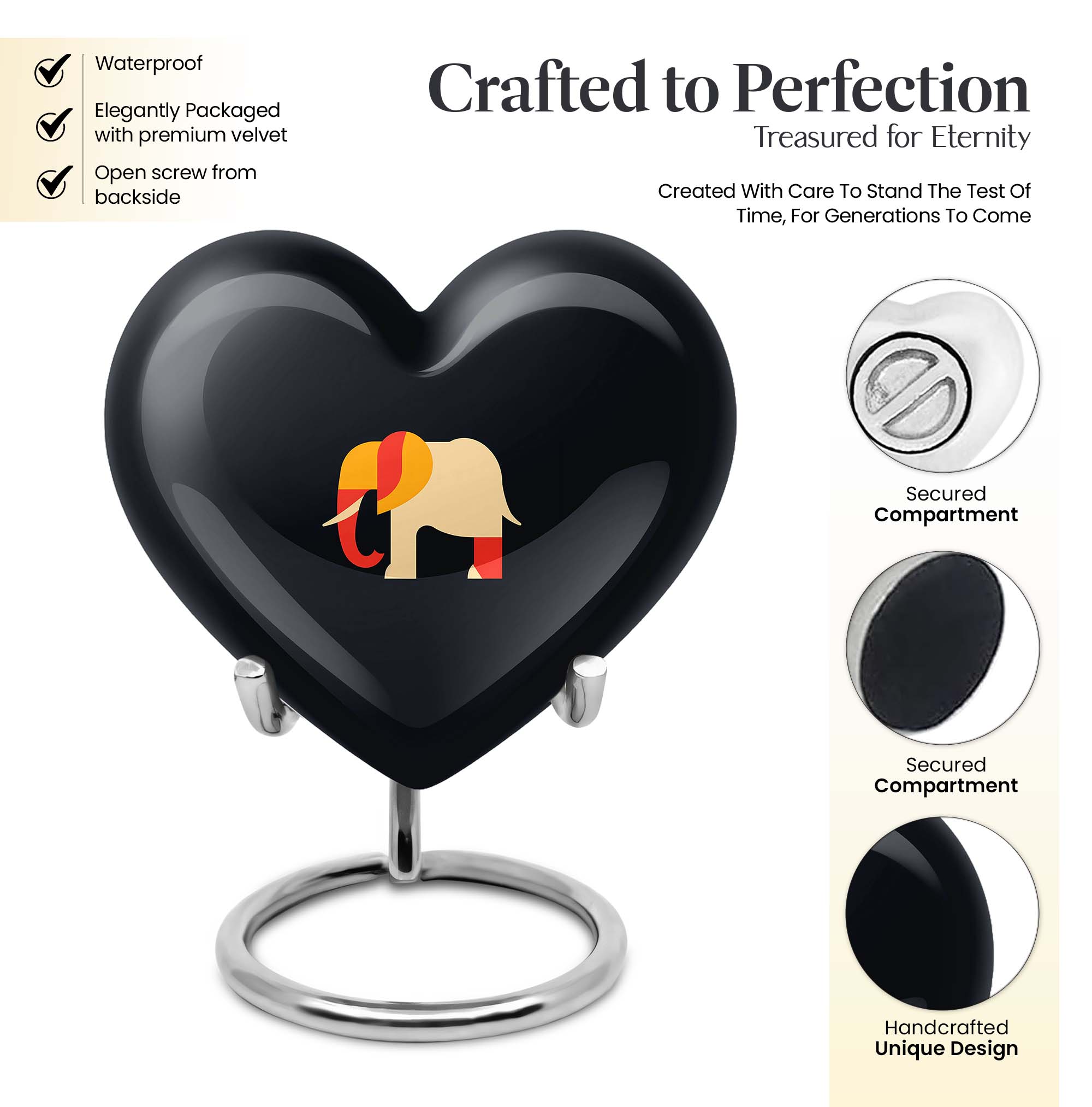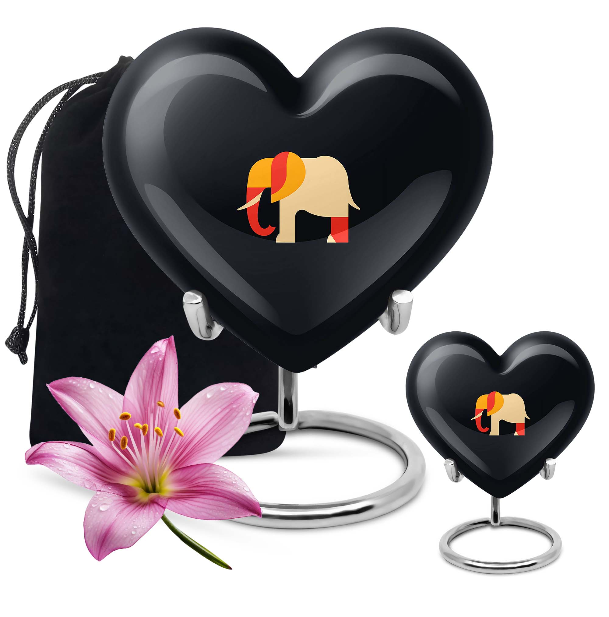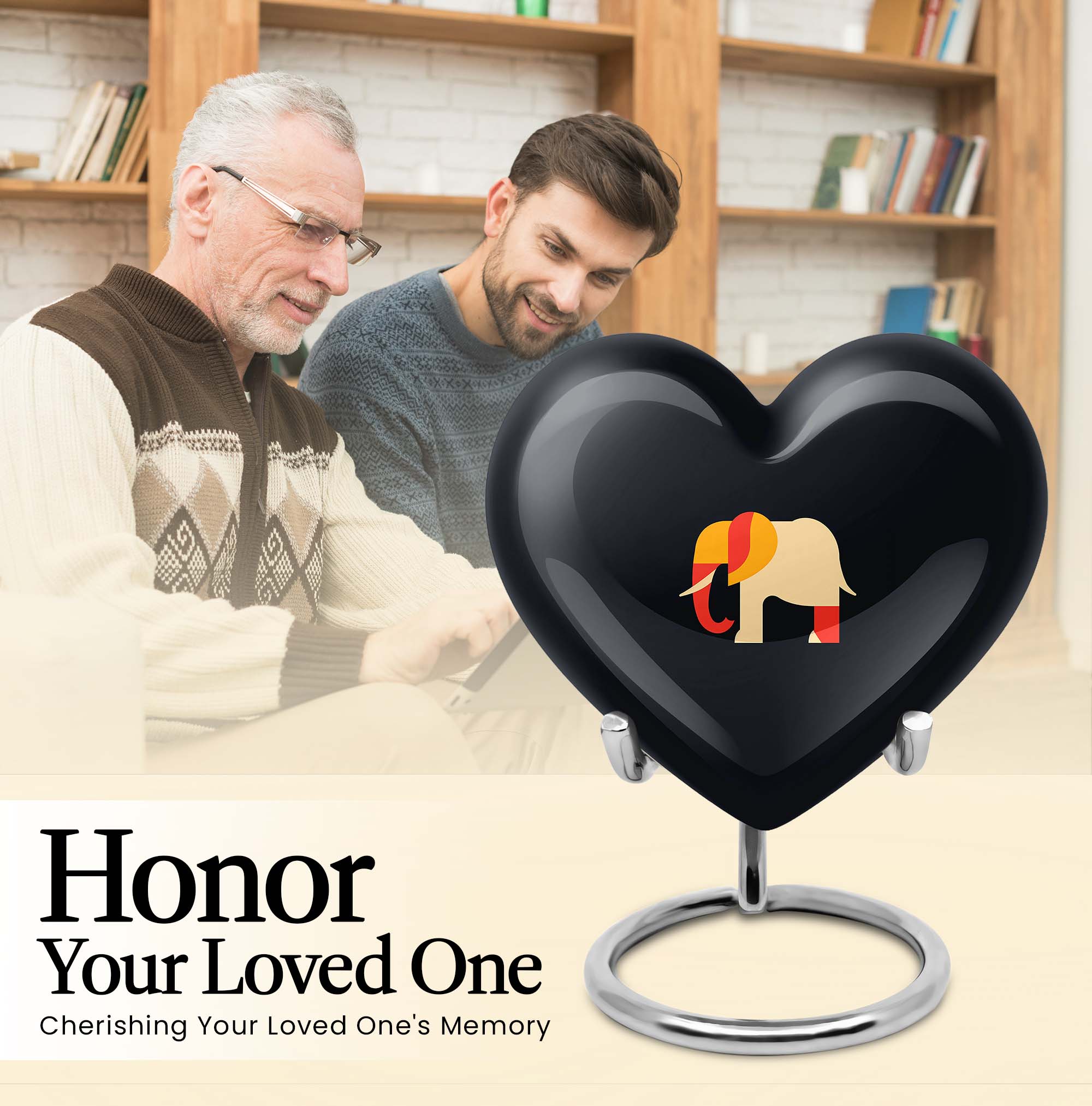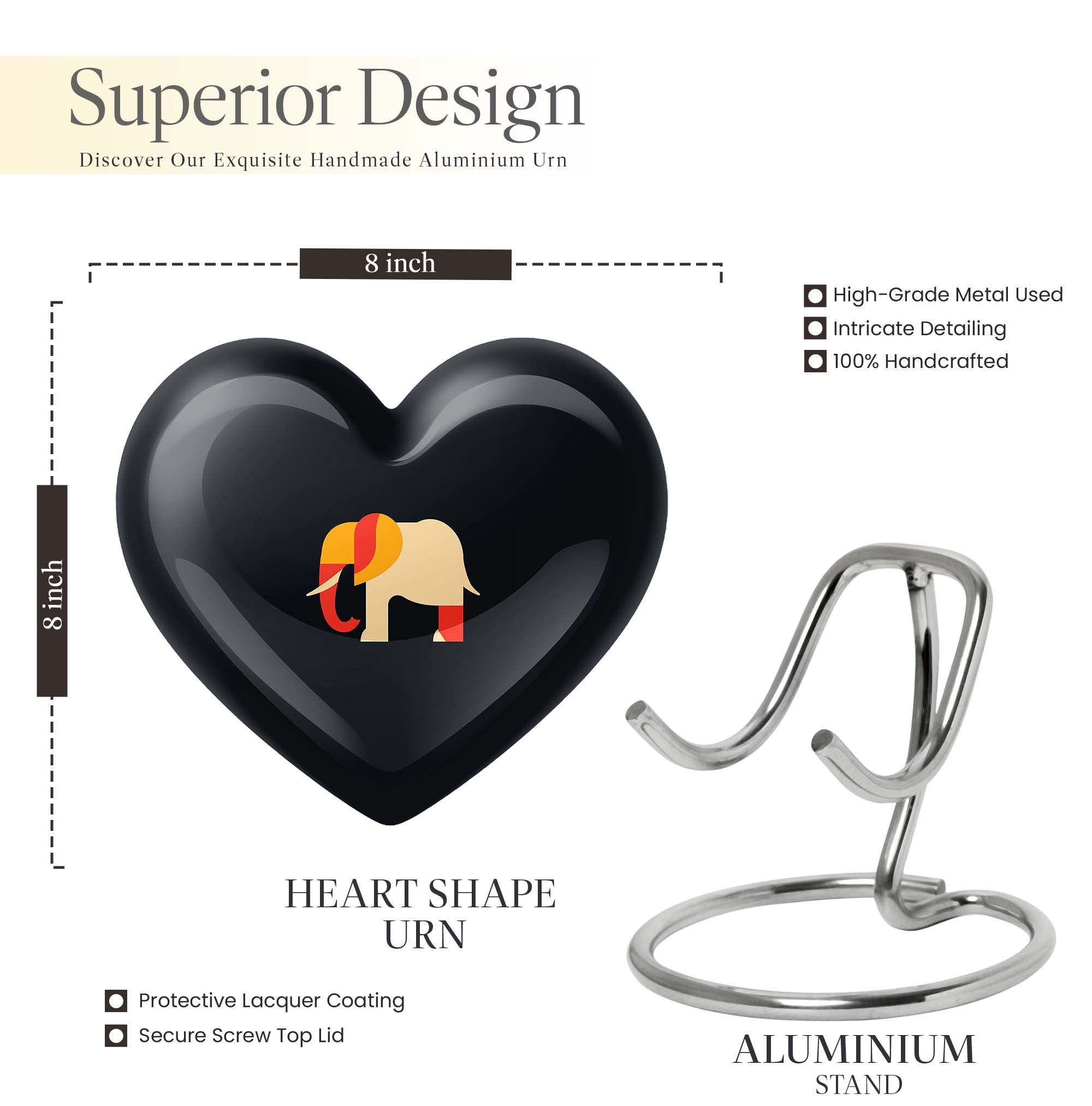 Convey your deep love and honor unforgettable memories with our Butterfly Heart Urn, a dignified resting place for the one who's dear to you. Crafted out of durable aluminium material, this 10-Inch elephant urn strikes an impressive balance of style and utility. Designed to safeguard the remains of an individual, this memorial urn for male adults plus female urns has the capacity to hold up to 200 cubic inches of ashes. Weighing at 3.3 pounds, it offers a solid presence that's as enduring as your love. The package comes with a velvet pouch for secure containment of ashes. Make it even more special by personalizing this large metal urn for ashes with engraved names, making it a unique testament to the individual who's no longer with us. Ideal as companion urns for two adults, this cremation urn defines a truly timeless tribute.