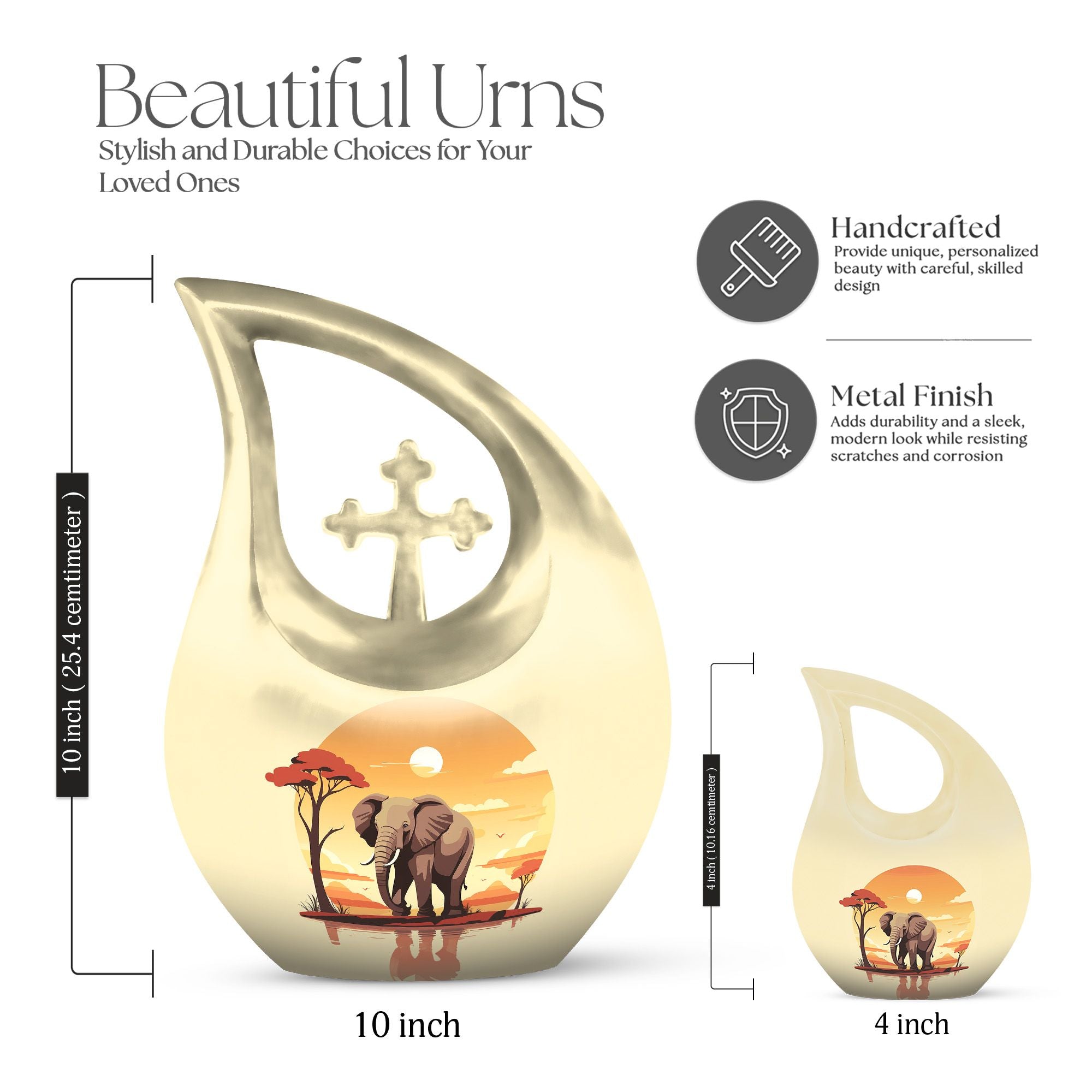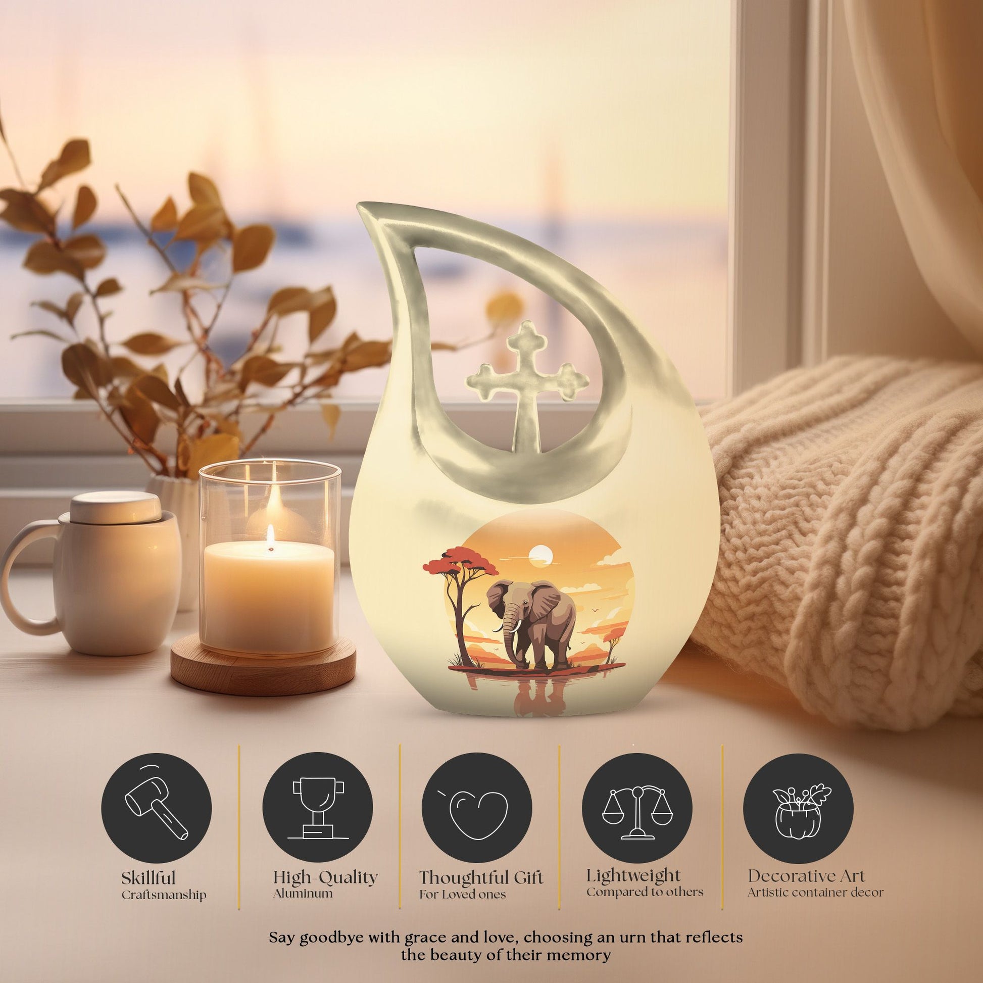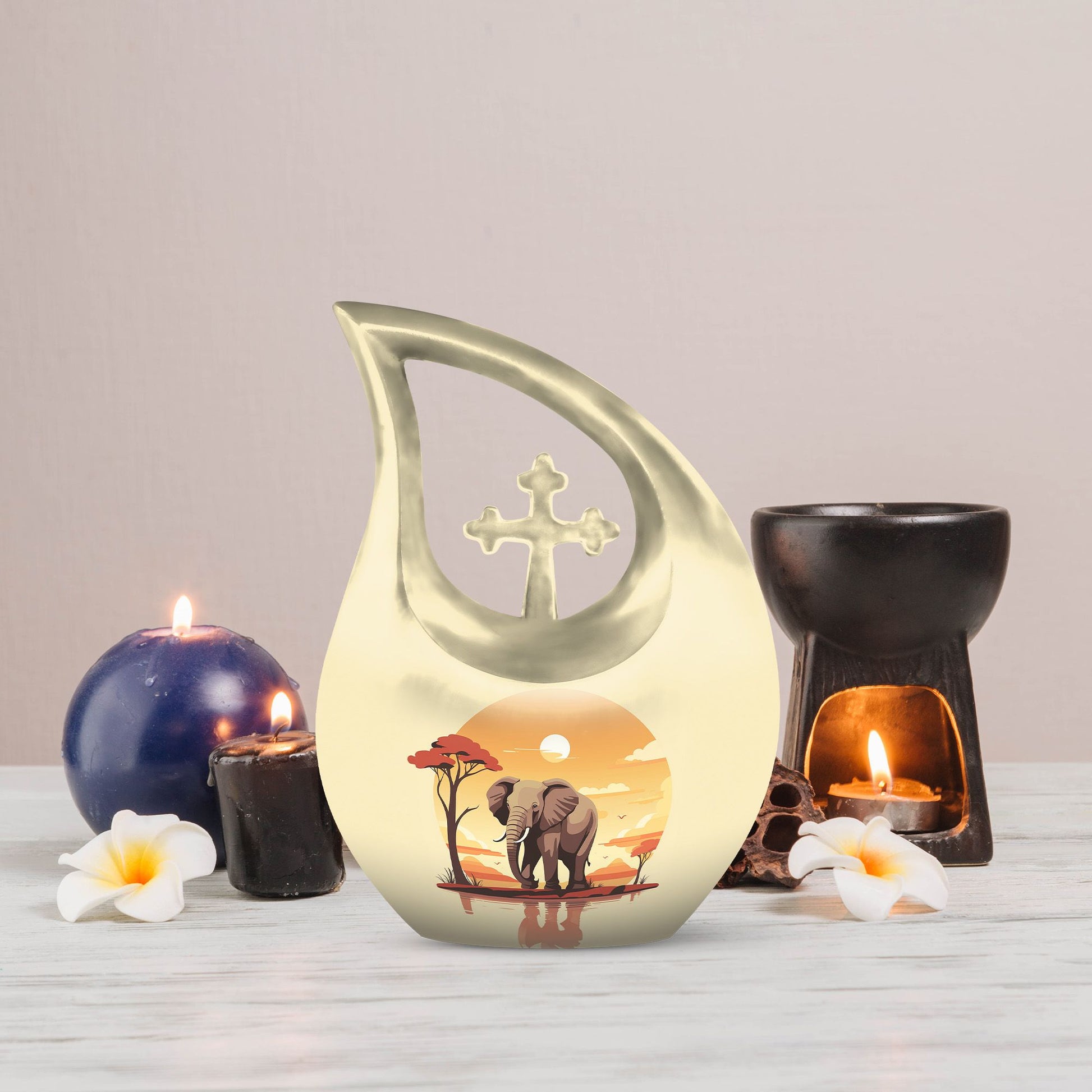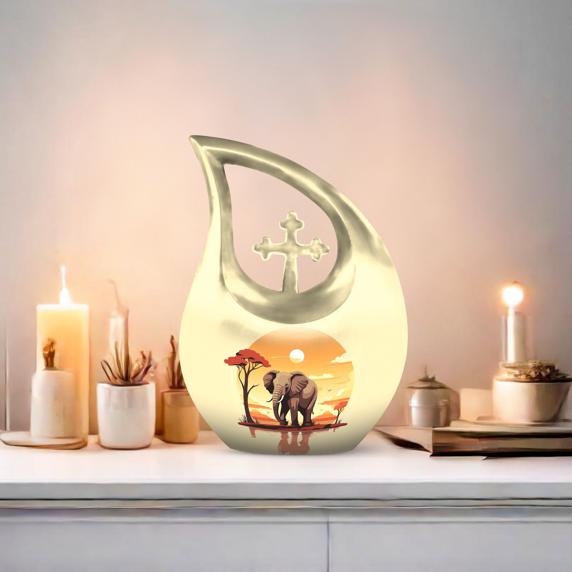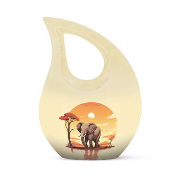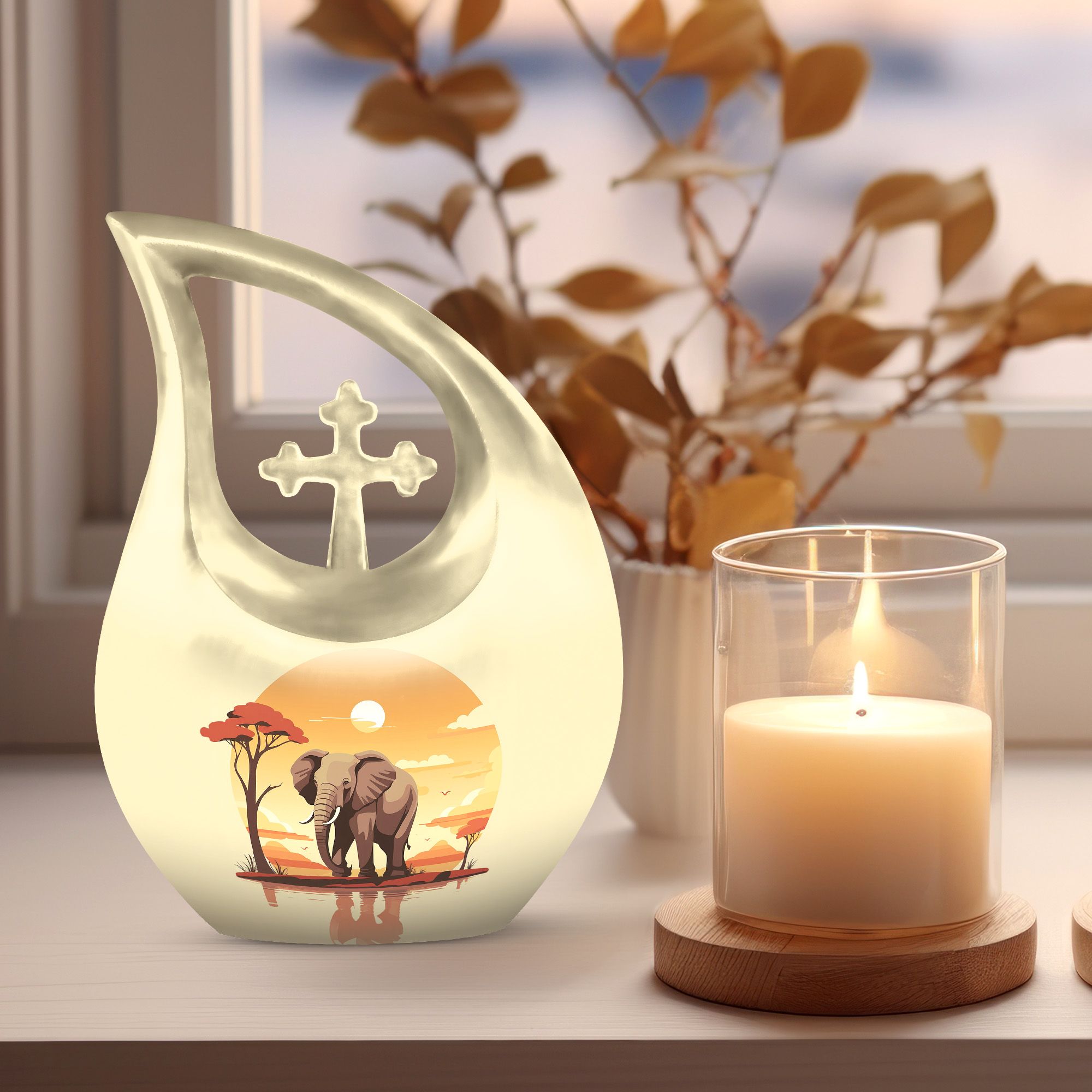 Celebrate a life of warmth, wisdom, and gentle strength with this Elephant Sunset Cremation Urn for Ashes. Designed to reflect the beauty of sunsets and the loyalty of elephants, it offers a comforting tribute for a beloved mother or loved one. Ideal among urns for cremation ashes mother and adult cremation urns, this piece embodies enduring love and remembrance.