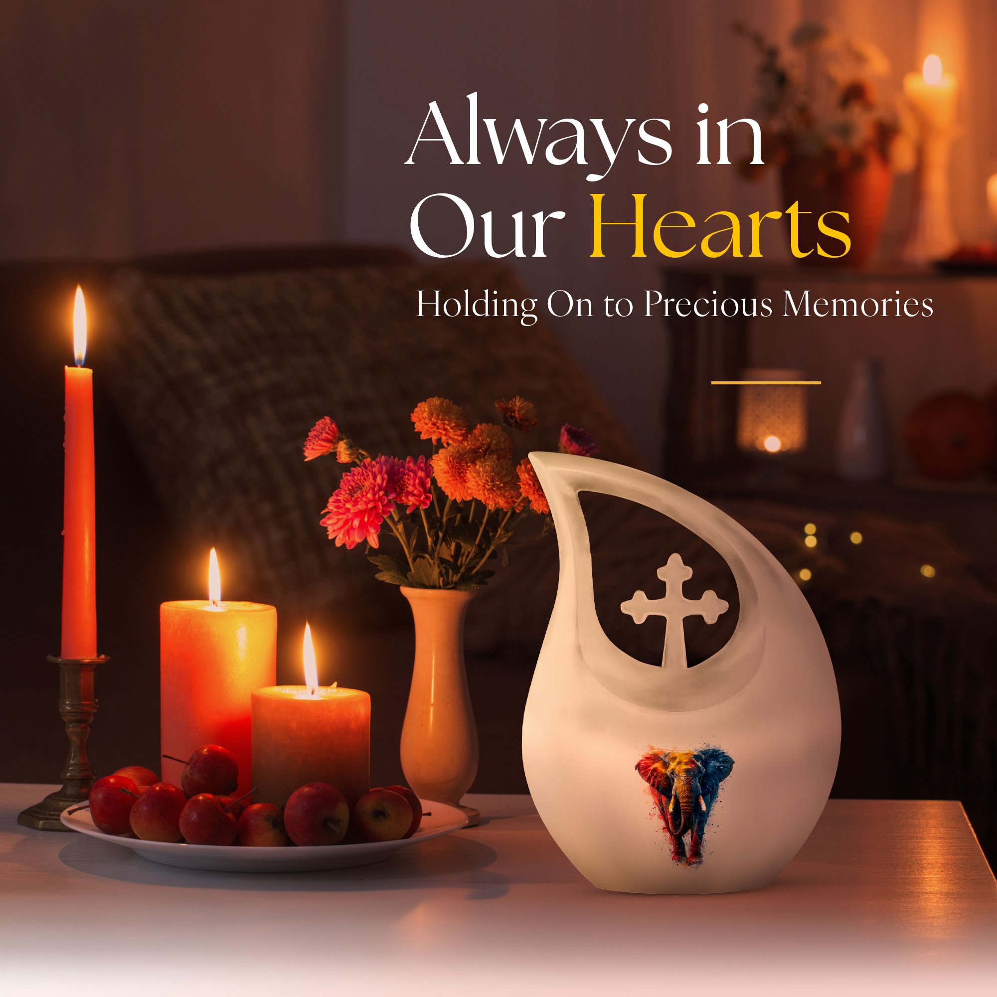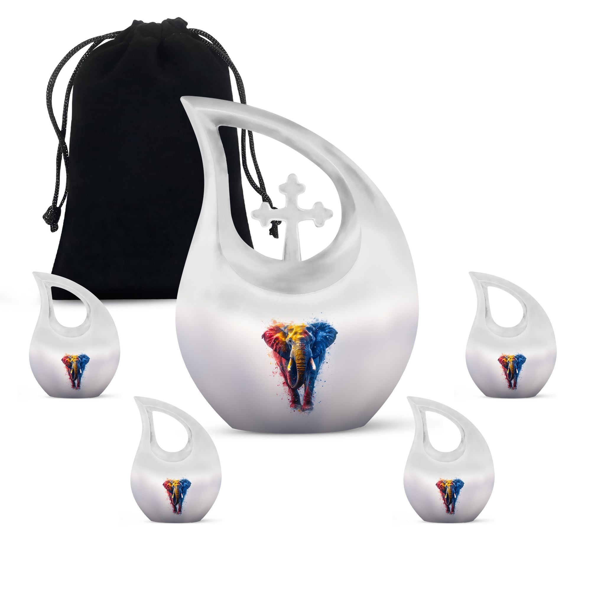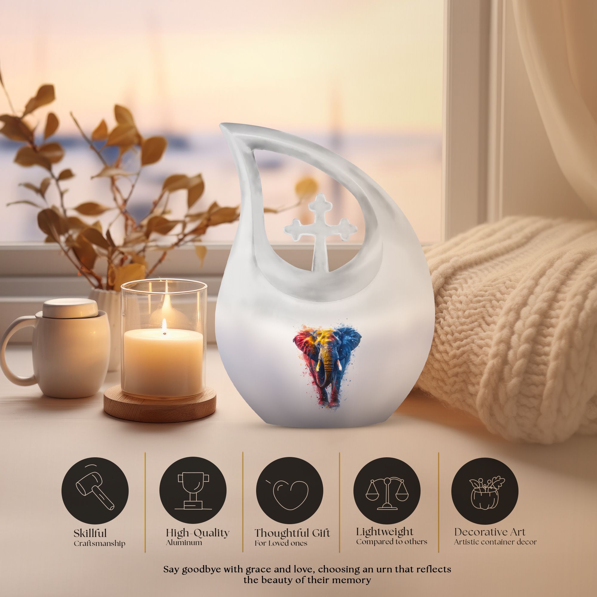 Appealing to the eye and heart, this 10-inch Elephant Themed Urn is an ideal choice for religious and ceremony purposes. Uniquely crafted with an 'Elephant' theme, this large urn is made from high-quality aluminium promising durability and long-lasting use. Weighing at a mere 3.3 pounds, this urn embodies the 'Cross Drop' motif giving it a distinct design and touch. The urn offers an impressive capacity of 200 cubic inches, ensuring sufficient space for containment of ashes. The urn comes with a soft velvet pouch adding an extra layer of protection and respect. It offers scope for personalization where you can engrave the names of your beloved, making it more personal and memorable. This product serves as a perfect symbol of tribute and respect, encapsulating the essence of your love for the departed soul. Perfect for online purchase, this 'Elephant Urn' is a stand-out value proposition in 'Urns Online'. Enhance your memorial experience by choosing our urns, where the combination of class and reverence is unparalleled.