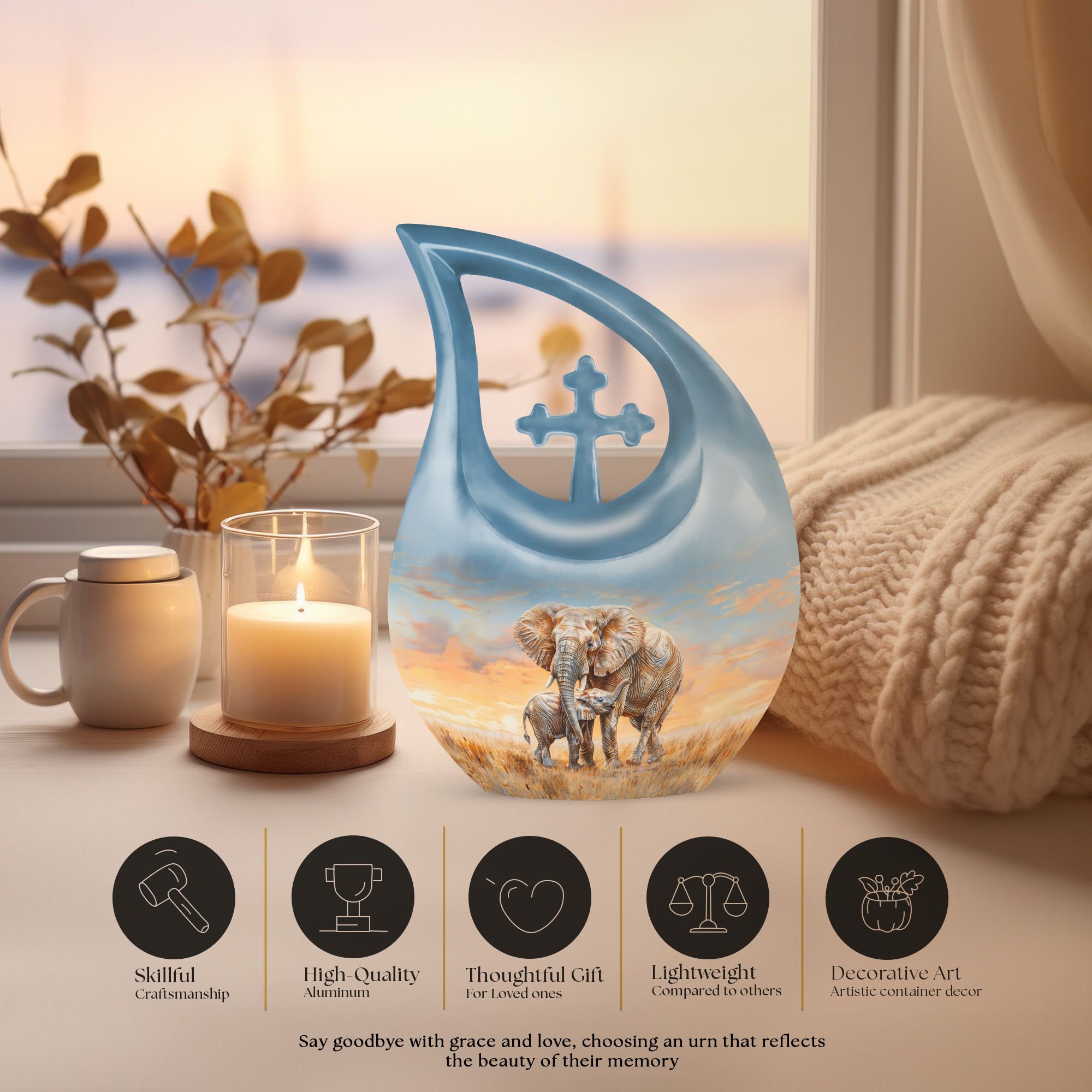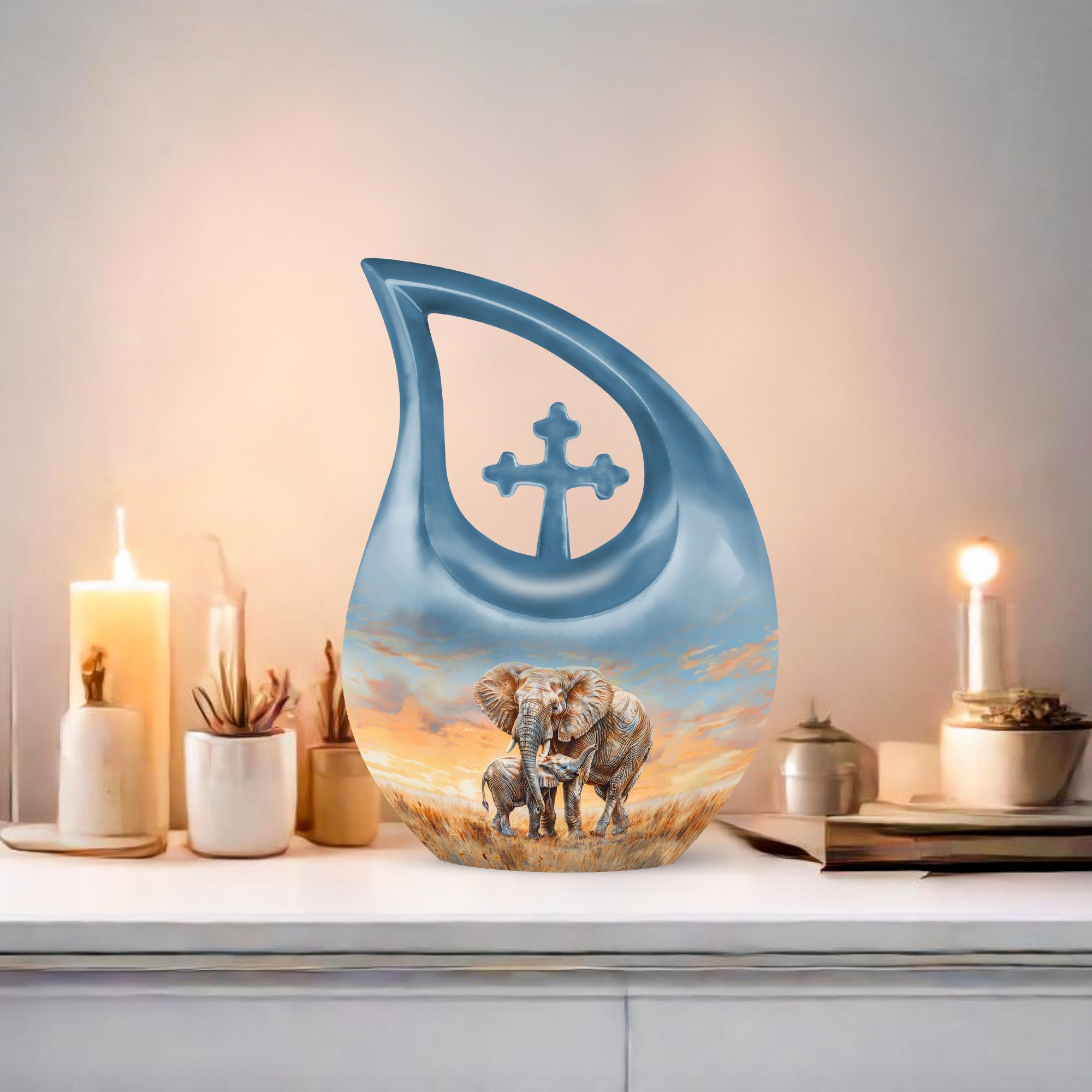 Crafted from durable aluminum, this Large Decorative Urn features a graceful elephant family design, representing strength and togetherness. Its secure screw-top lid ensures ashes remain safe, making it ideal for Large Urns For Human Ashes, Funeral Urns For Human Ashes Adult, or those looking for a distinguished Large Funeral Urn. With its generous capacity and elegant artistry, it fits seamlessly into Cremation Urns Large, Cremation Urn Large, and Cremation Urn Adult Large selections as a timeless memorial piece.