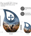 This elegant large funeral urn and cremation urn for large human ashes adult brings both tranquility and reverence to any memorial space. Its gentle hues and nature-inspired theme symbolize peace, hope, and the continuation of life beyond the horizon.