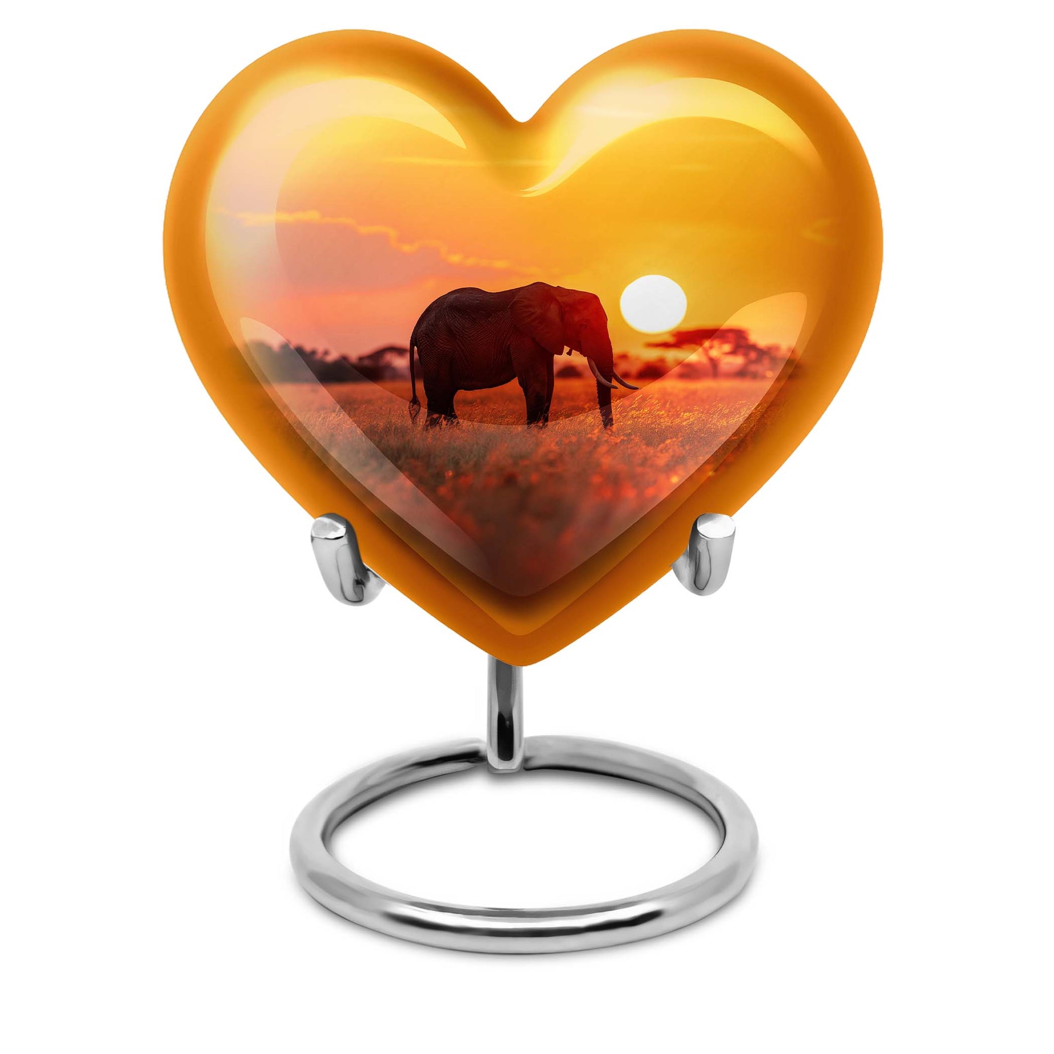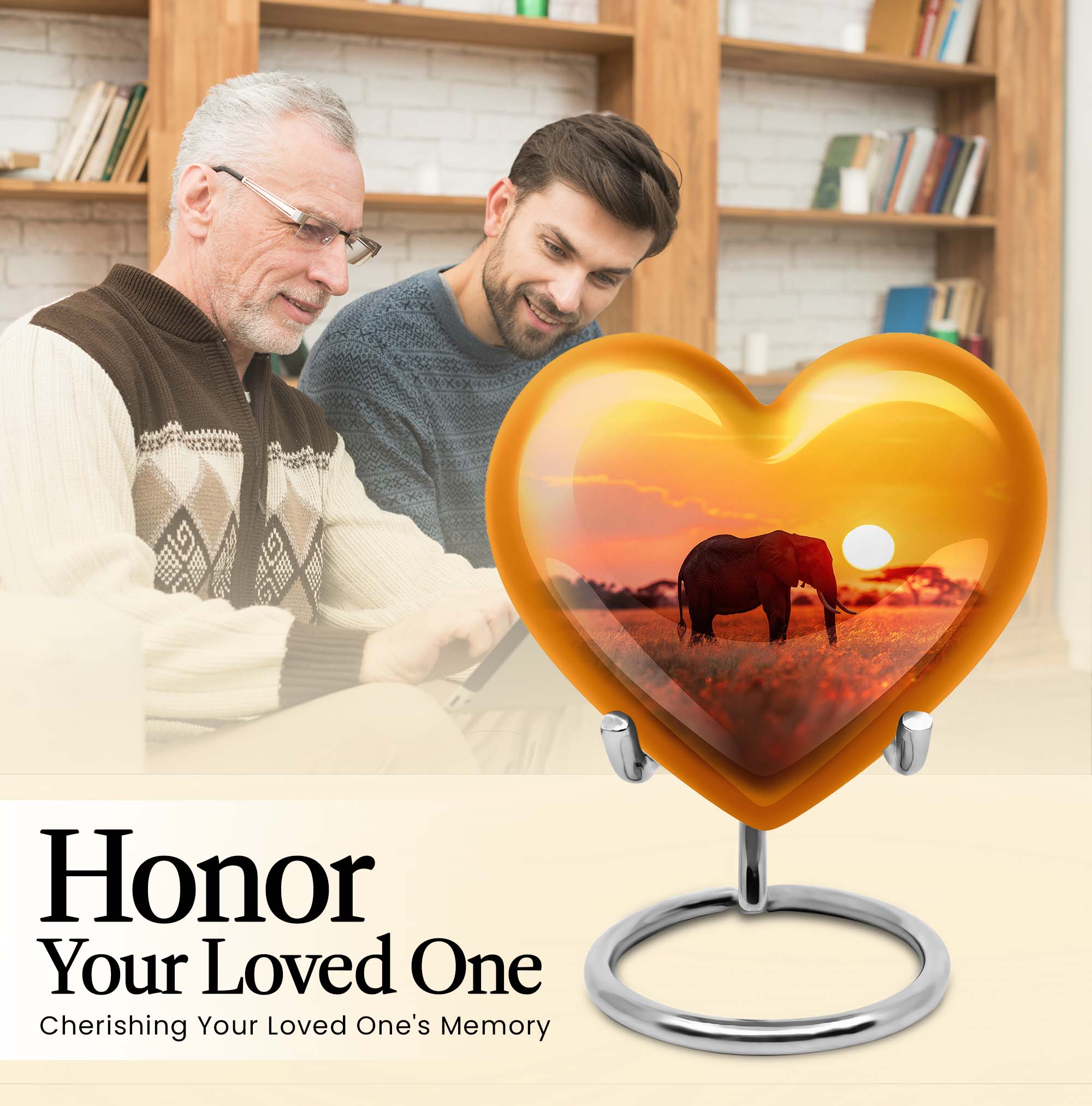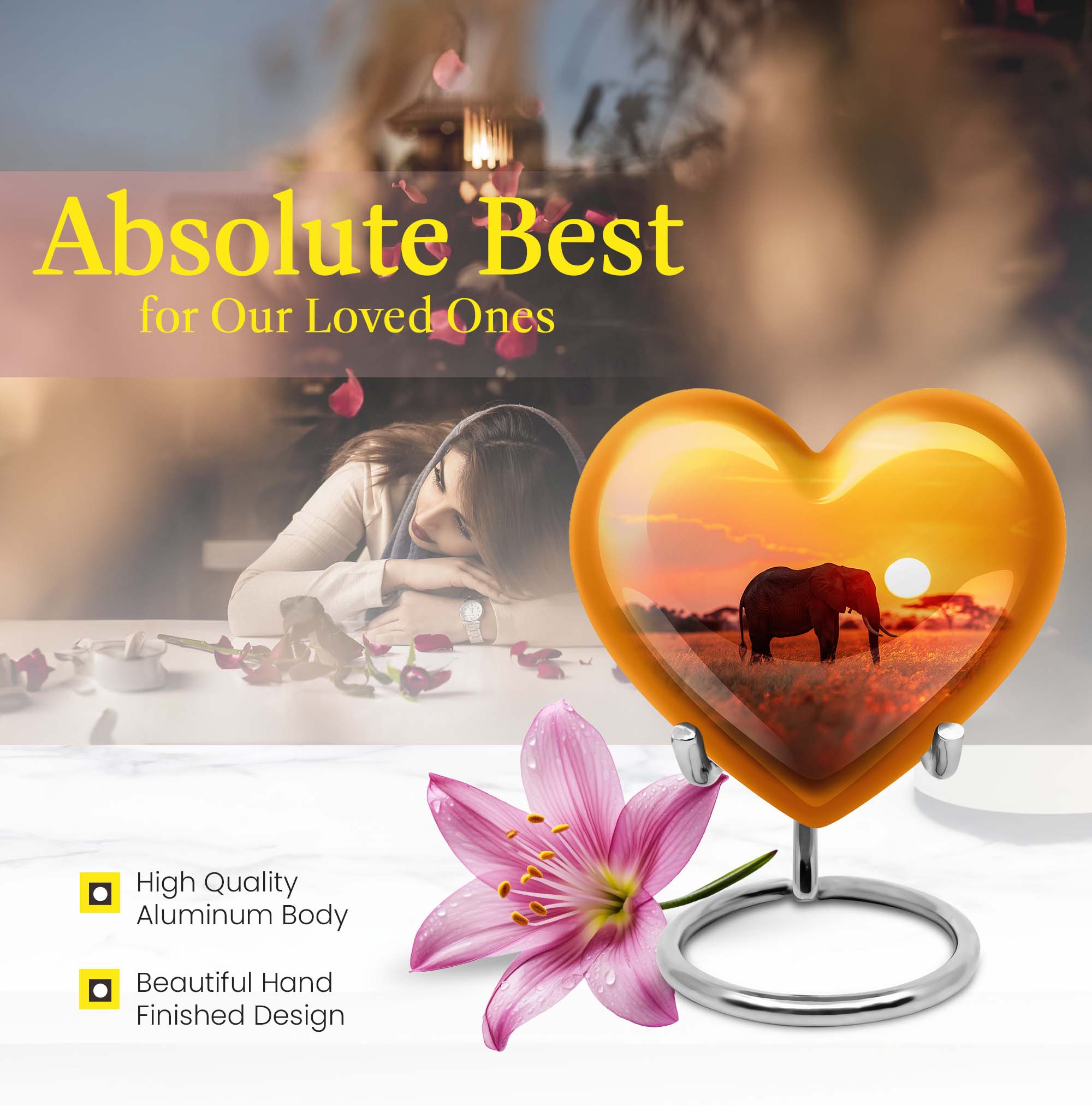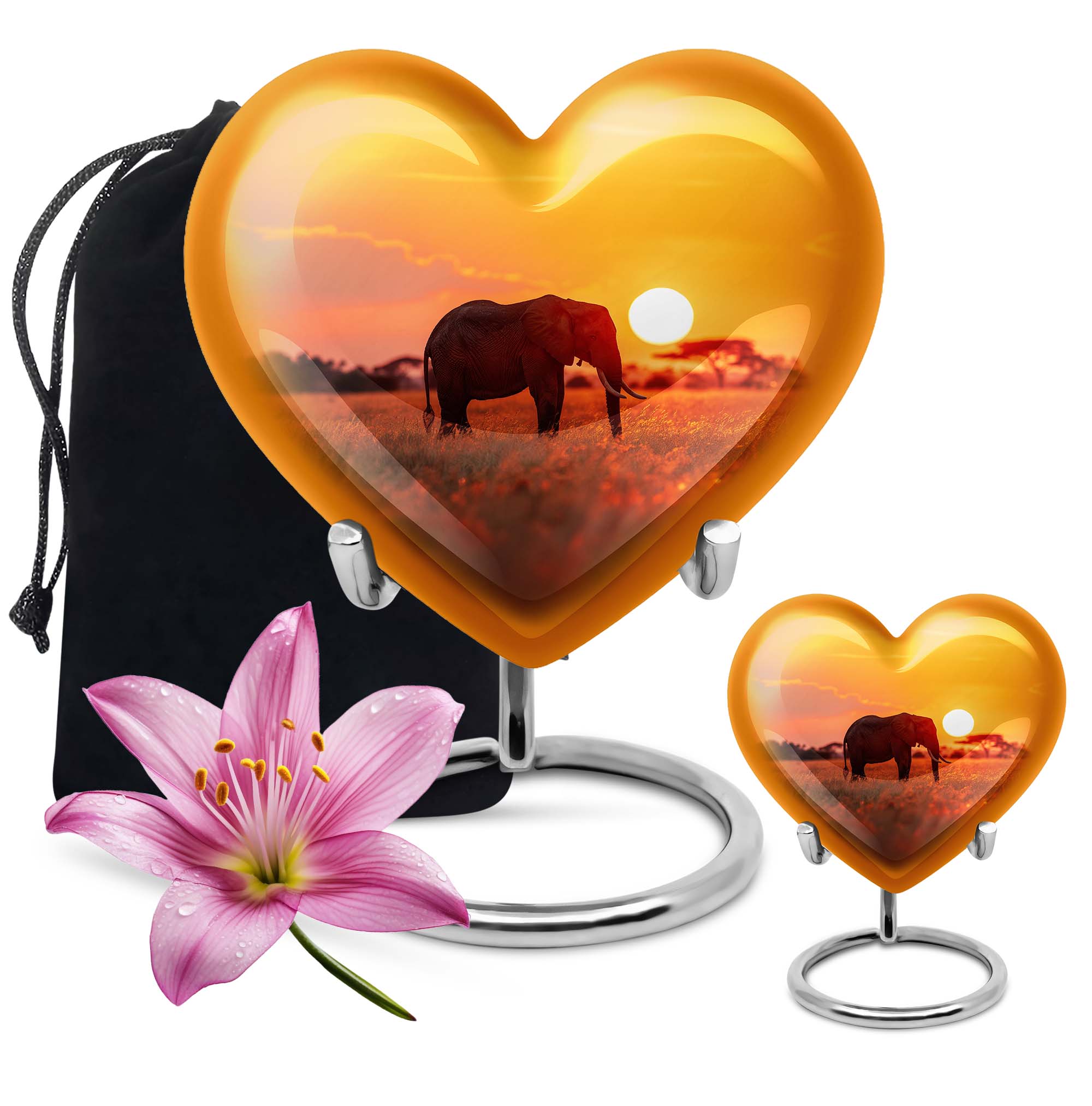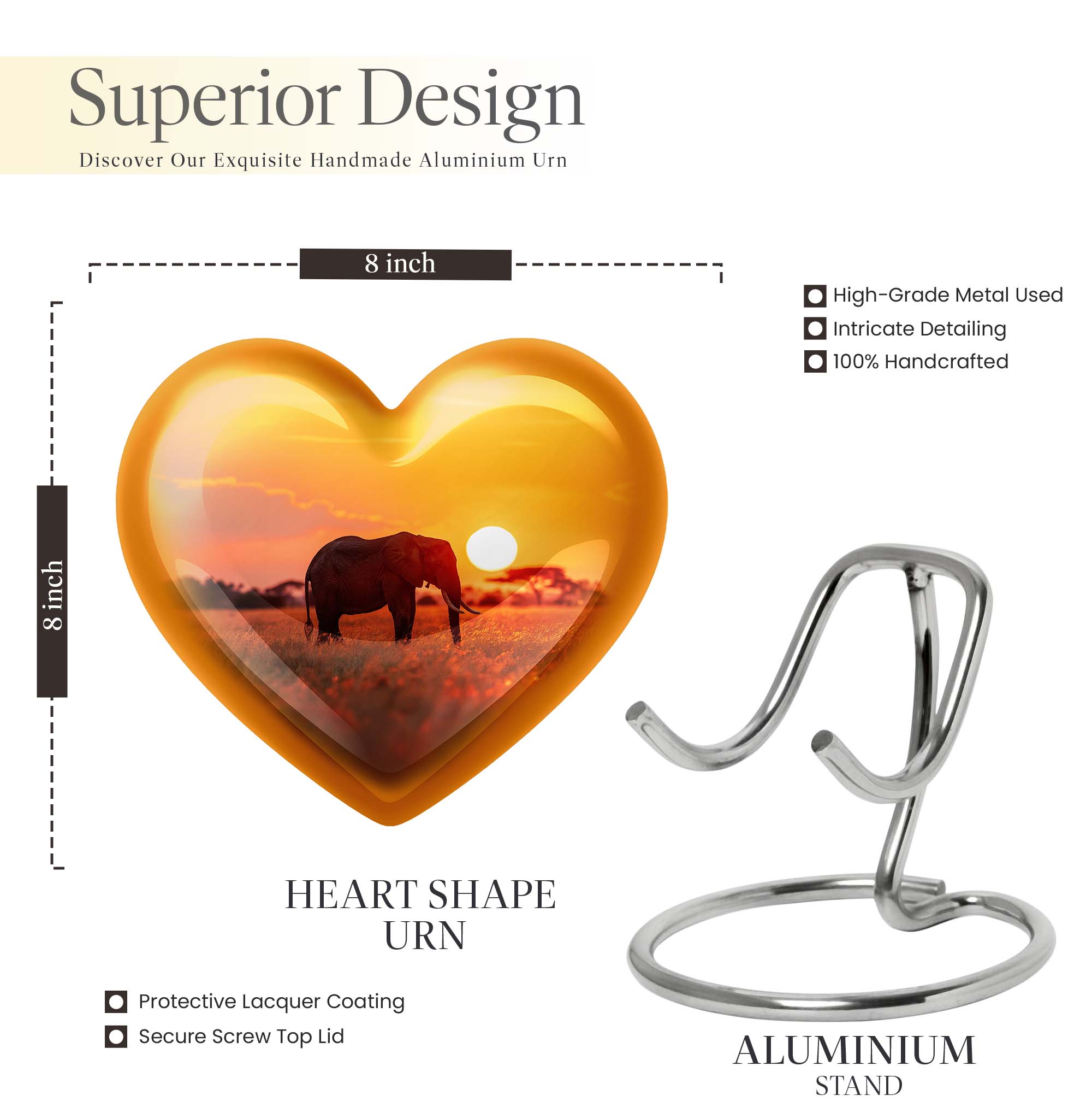 Comfort and peace find a perfect blend in this Elephant Urn, a large cremation urn tailored for adults. With an elegant butterfly theme, its visual appeal transcends the ordinary. Made from resilient aluminium, it maintains a sturdy existence. Lightweight at just 3.3 pounds, it measures 10 inches in height with an ample capacity of 200 cubic inches to respectfully hold the ashes. Our Elephant Urn package comes with a velvet pouch enabling secure containment of ashes. We provide you with the option to personalize and cherish the memory of your loved one, by engraving names. As an addition to your memorial ceremony supplies, this 10 Inch Heart Urn will be more than just a resting place for ashes; it becomes a symbol of remembrance. Search phrases like 'burial urns for men & women ashes', 'funeral metal urn', 'urn for burial in ground', and 'large urn for man adults' will guide you to this tasteful tribute.