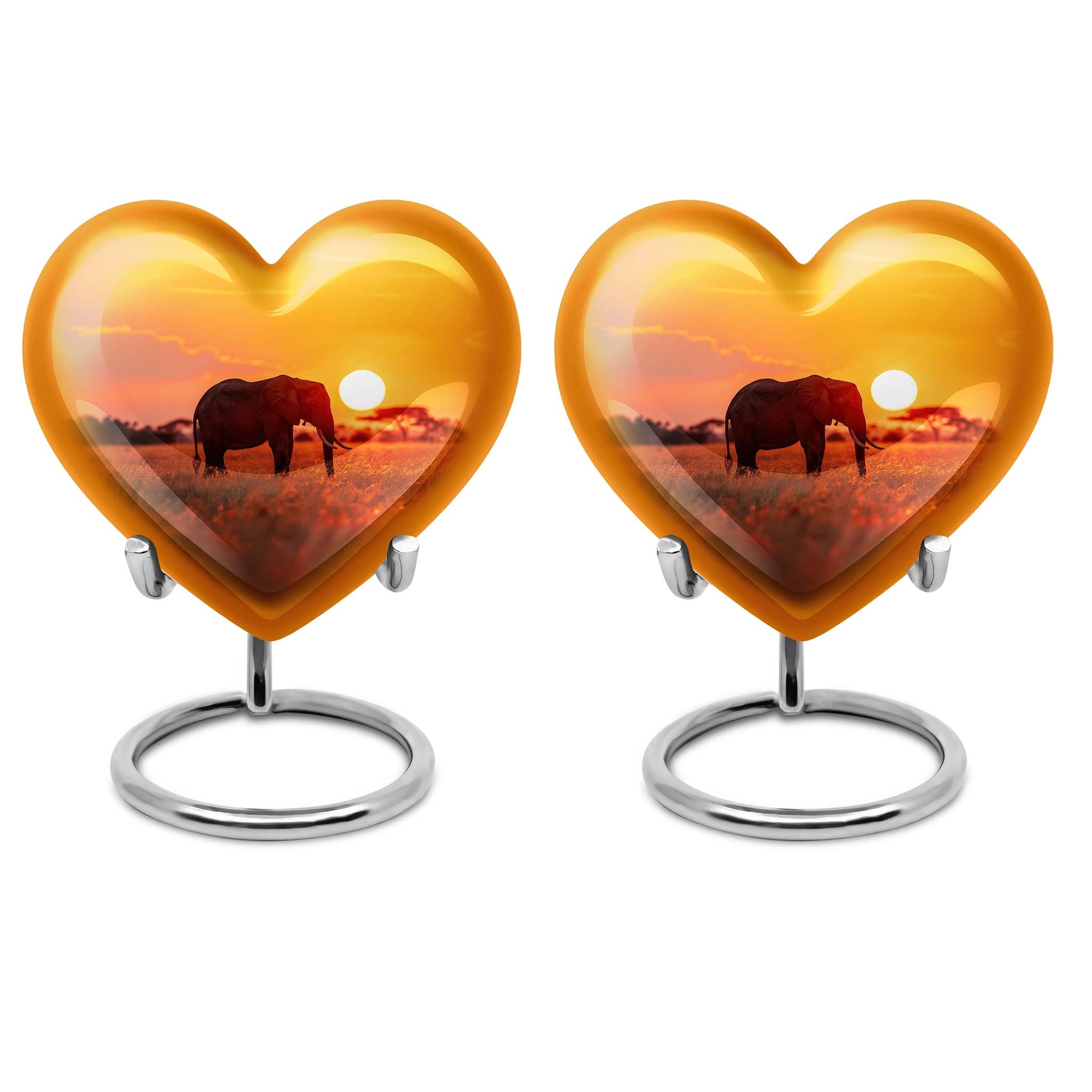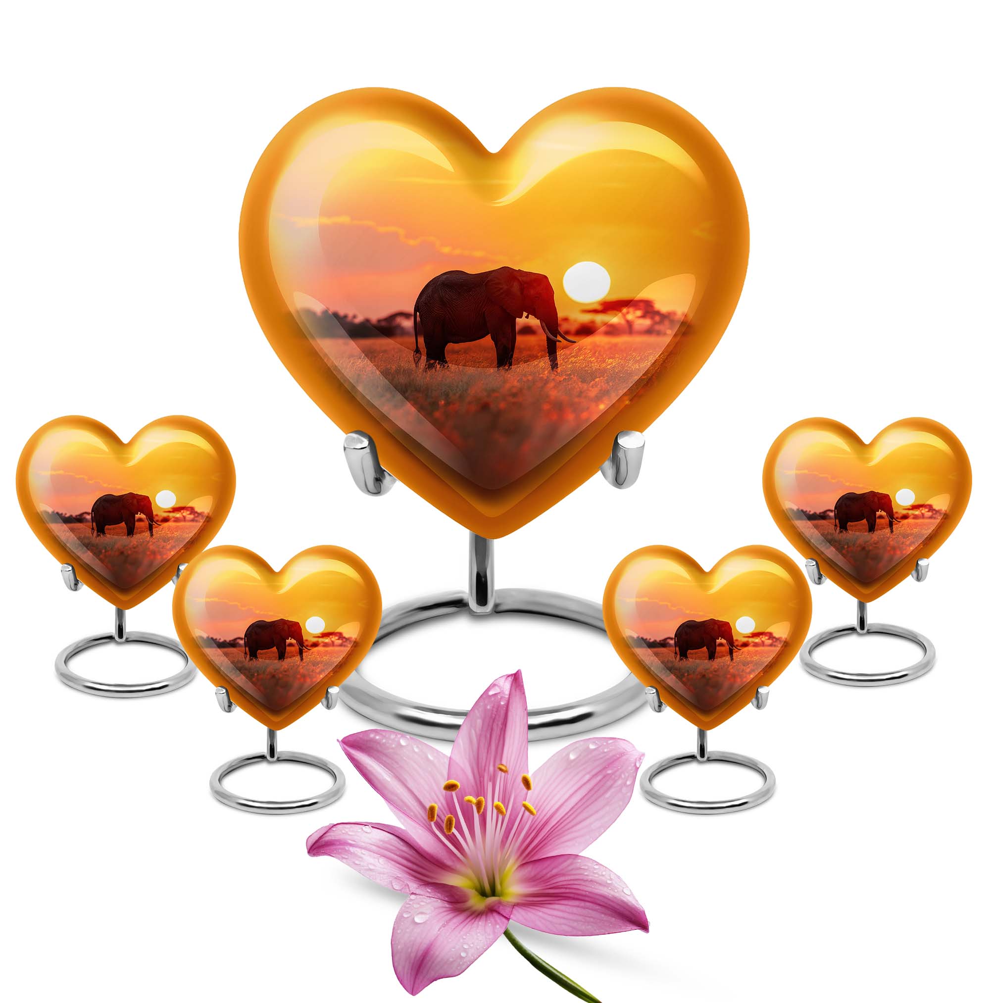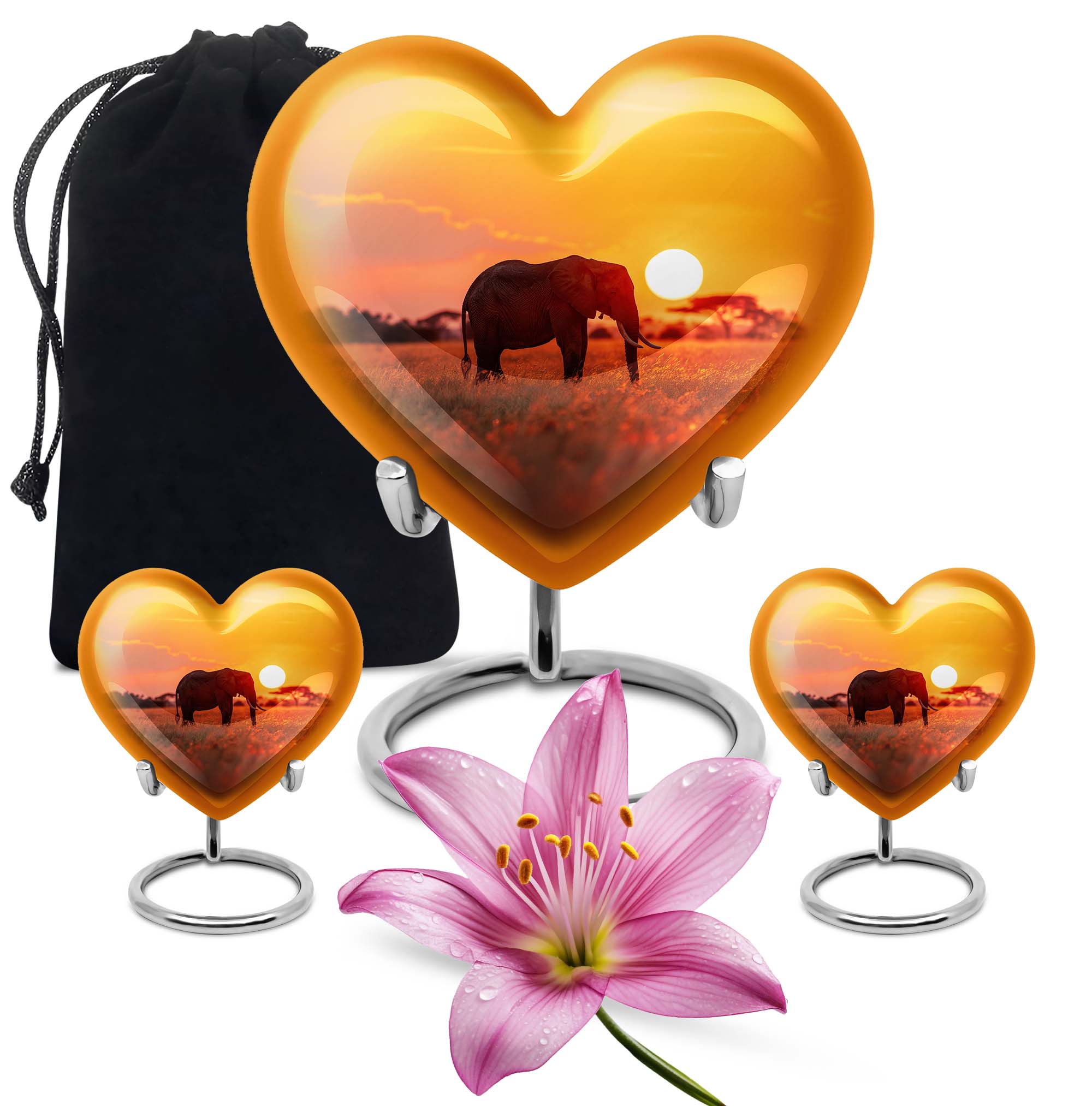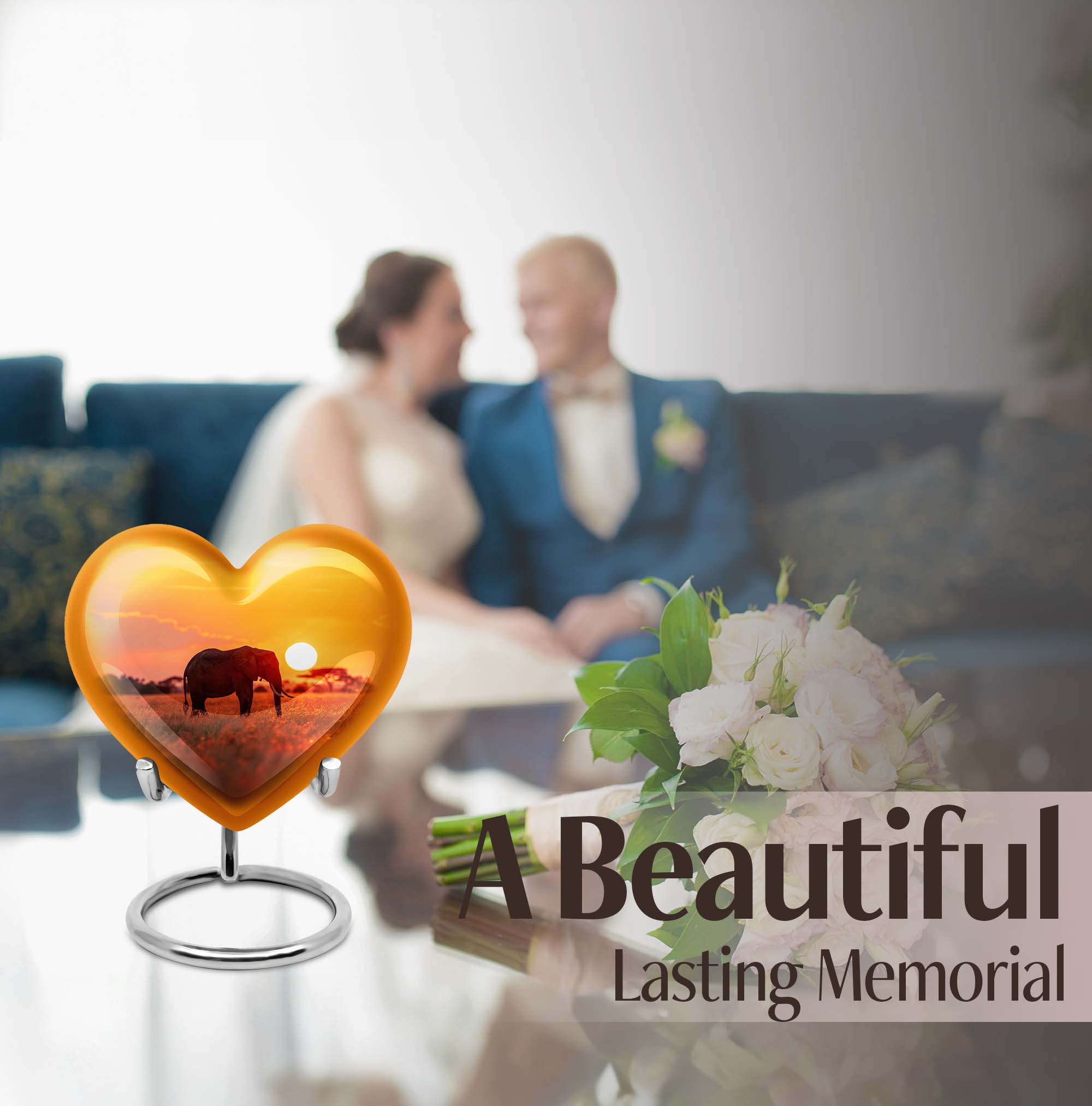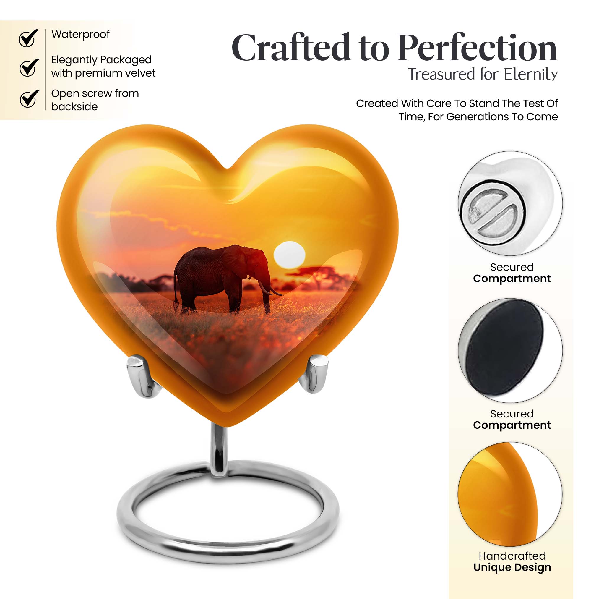 Comfort and peace find a perfect blend in this Elephant Urn, a large cremation urn tailored for adults. With an elegant butterfly theme, its visual appeal transcends the ordinary. Made from resilient aluminium, it maintains a sturdy existence. Lightweight at just 3.3 pounds, it measures 10 inches in height with an ample capacity of 200 cubic inches to respectfully hold the ashes. Our Elephant Urn package comes with a velvet pouch enabling secure containment of ashes. We provide you with the option to personalize and cherish the memory of your loved one, by engraving names. As an addition to your memorial ceremony supplies, this 10 Inch Heart Urn will be more than just a resting place for ashes; it becomes a symbol of remembrance. Search phrases like 'burial urns for men & women ashes', 'funeral metal urn', 'urn for burial in ground', and 'large urn for man adults' will guide you to this tasteful tribute.
