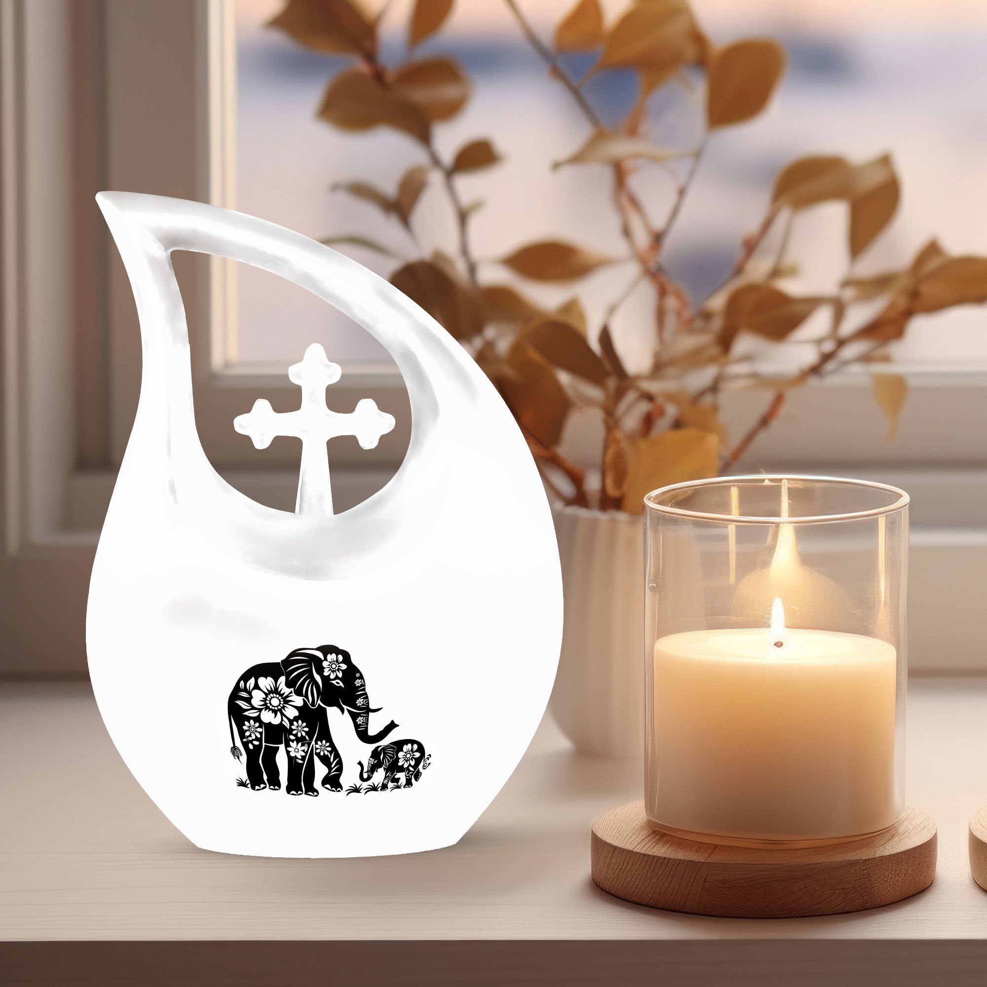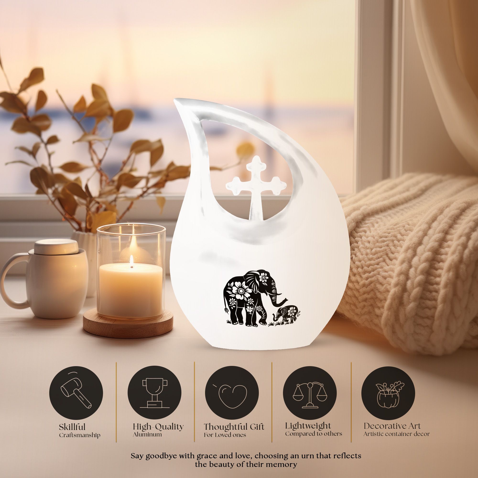Crafted with care, this white large cremation urn showcases an elegant elephant family motif—perfect for those wanting a refined and symbolic memorial piece. Its durable aluminium construction ensures lasting protection, while its graceful silhouette makes it an ideal choice among large human urns, large urns human ashes, and those needing an urn large adult with both beauty and function. Whether used as a large decorative urn for human ashes or specifically as an urn mom ashes large, it provides generous space and dependable security.