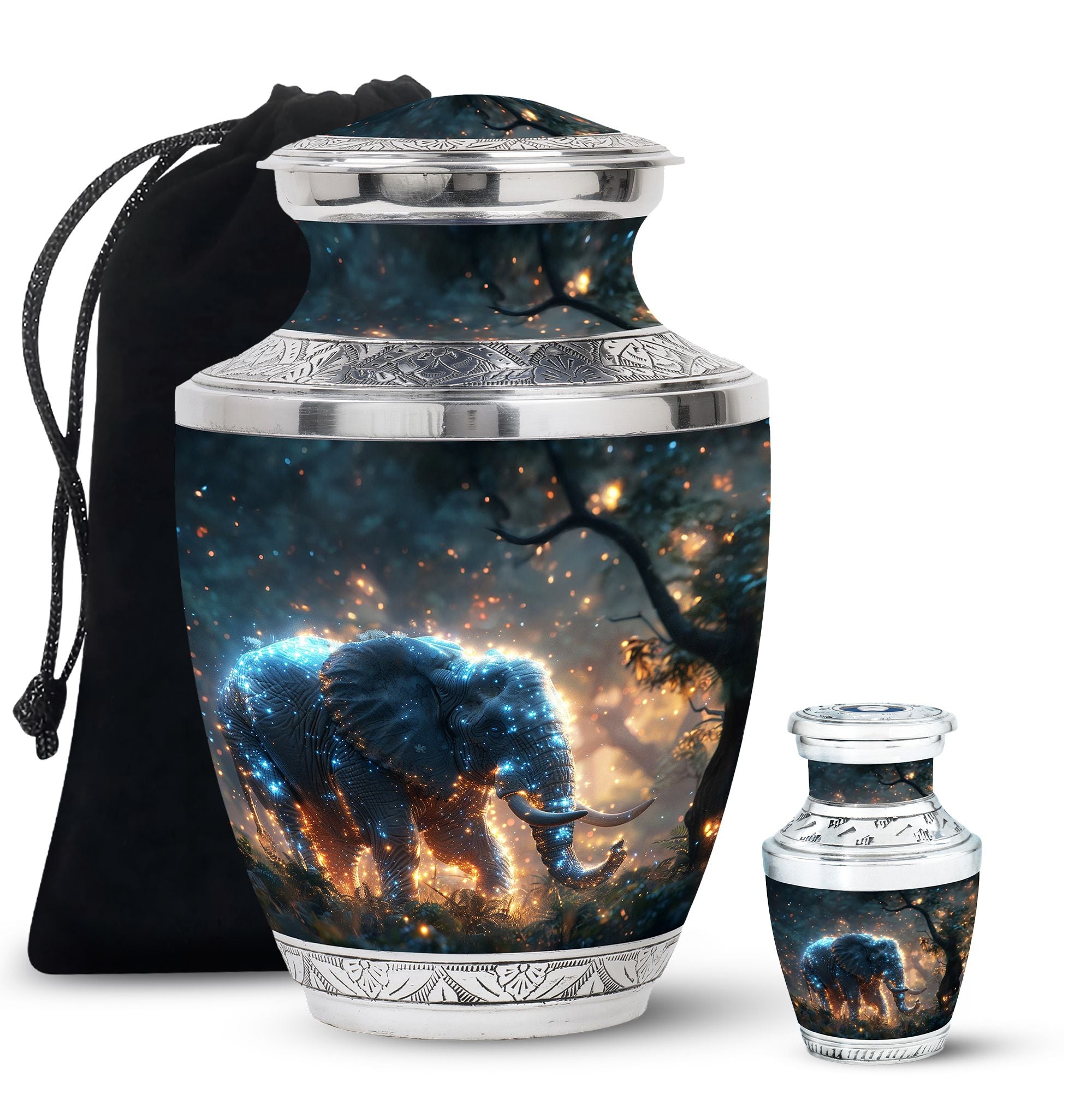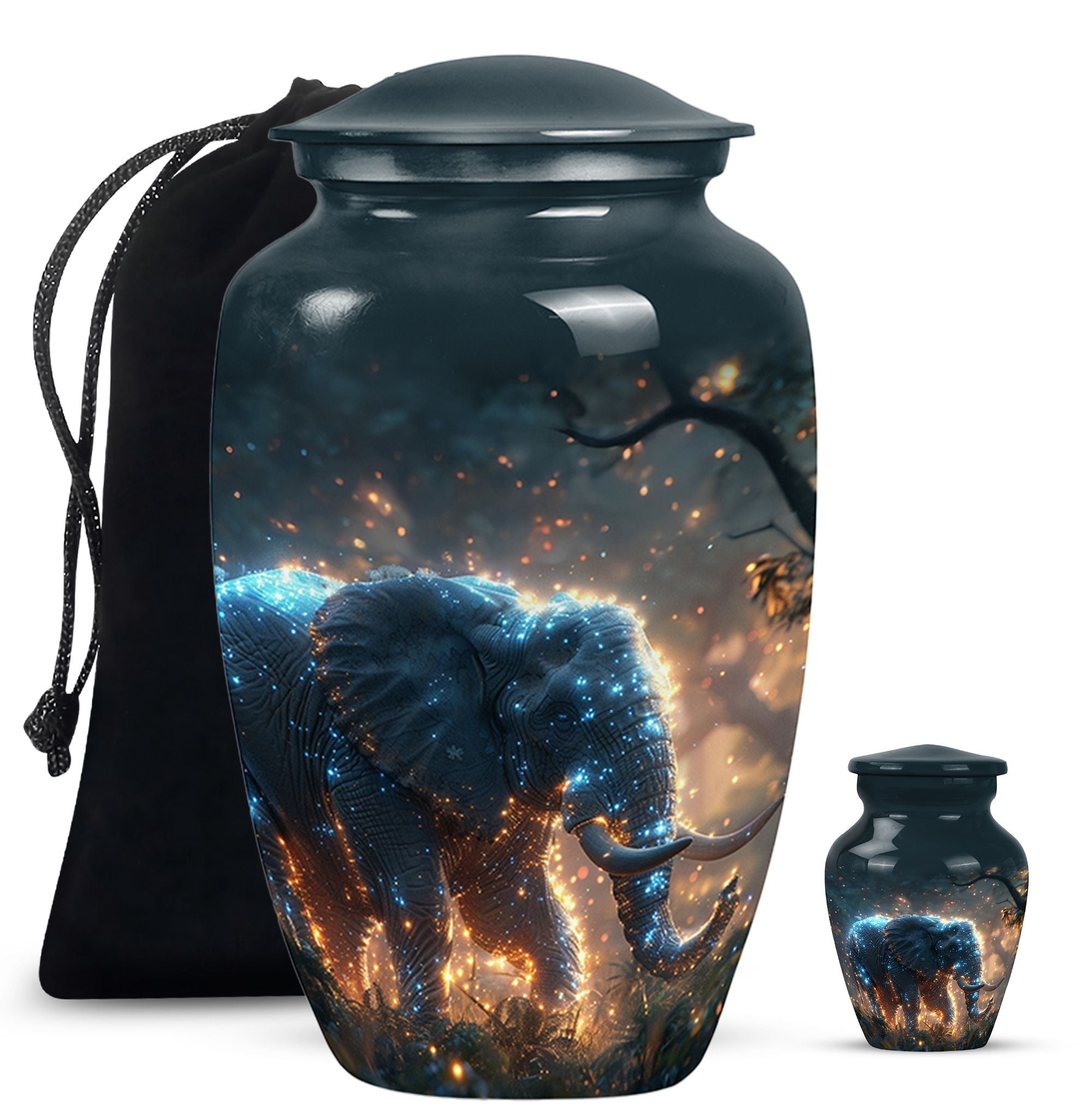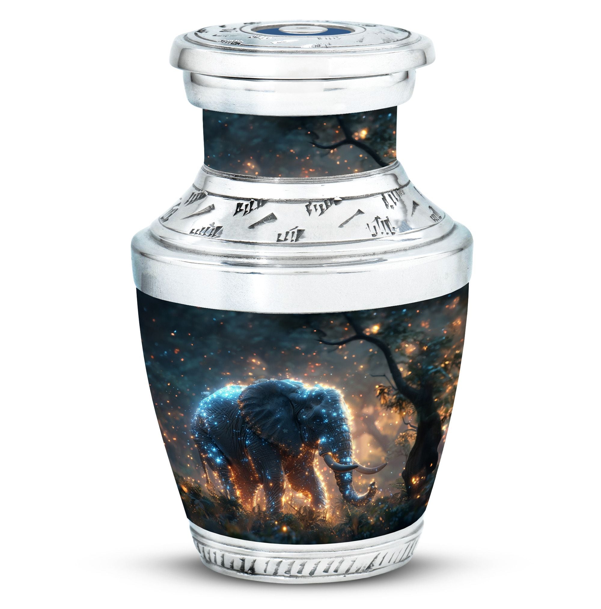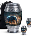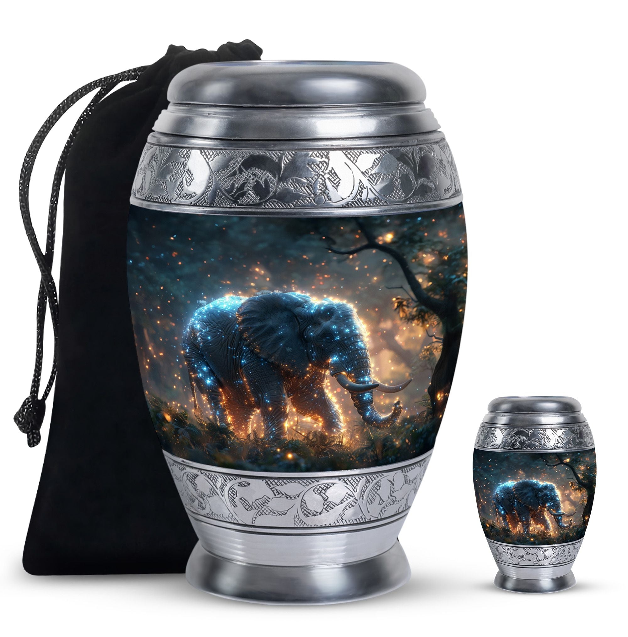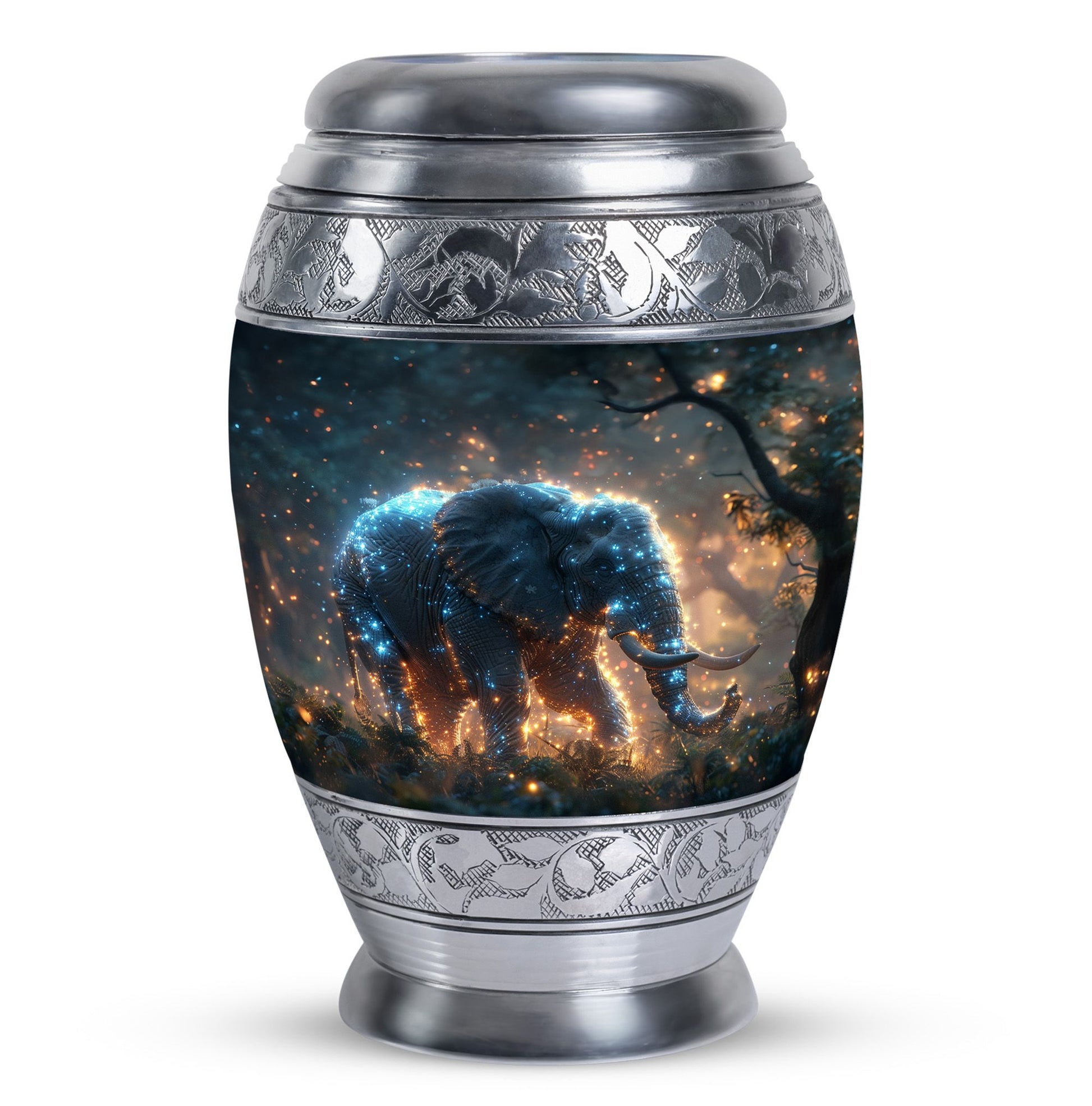 Crafted with premium aluminum, this urn for human ashes adult men and women combines durability with artistry. Its intricate elephant design against a serene night forest backdrop reflects wisdom, strength, and tranquility. Whether you seek mens urns for human ashes or a cremation urn women would cherish, its versatile design ensures it serves as both a dignified memorial and a timeless decorative piece in any setting.