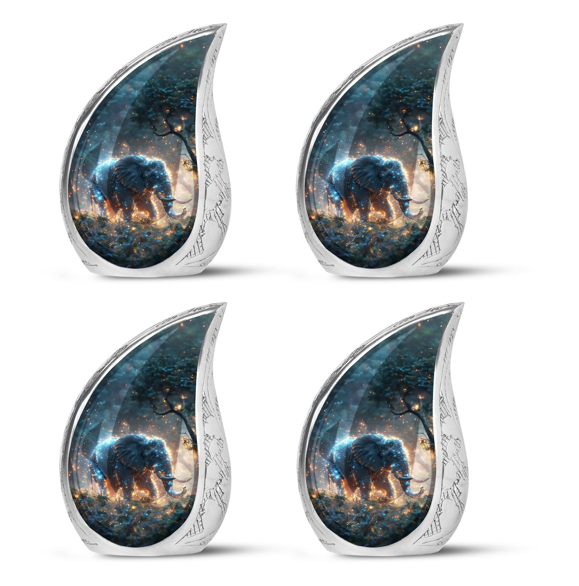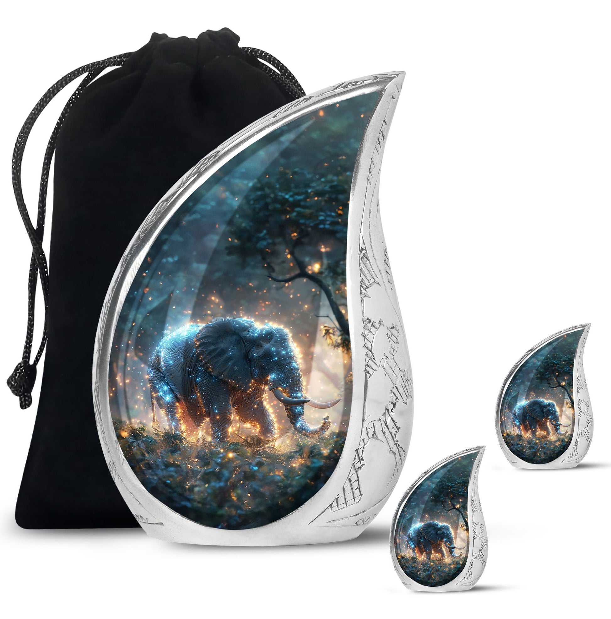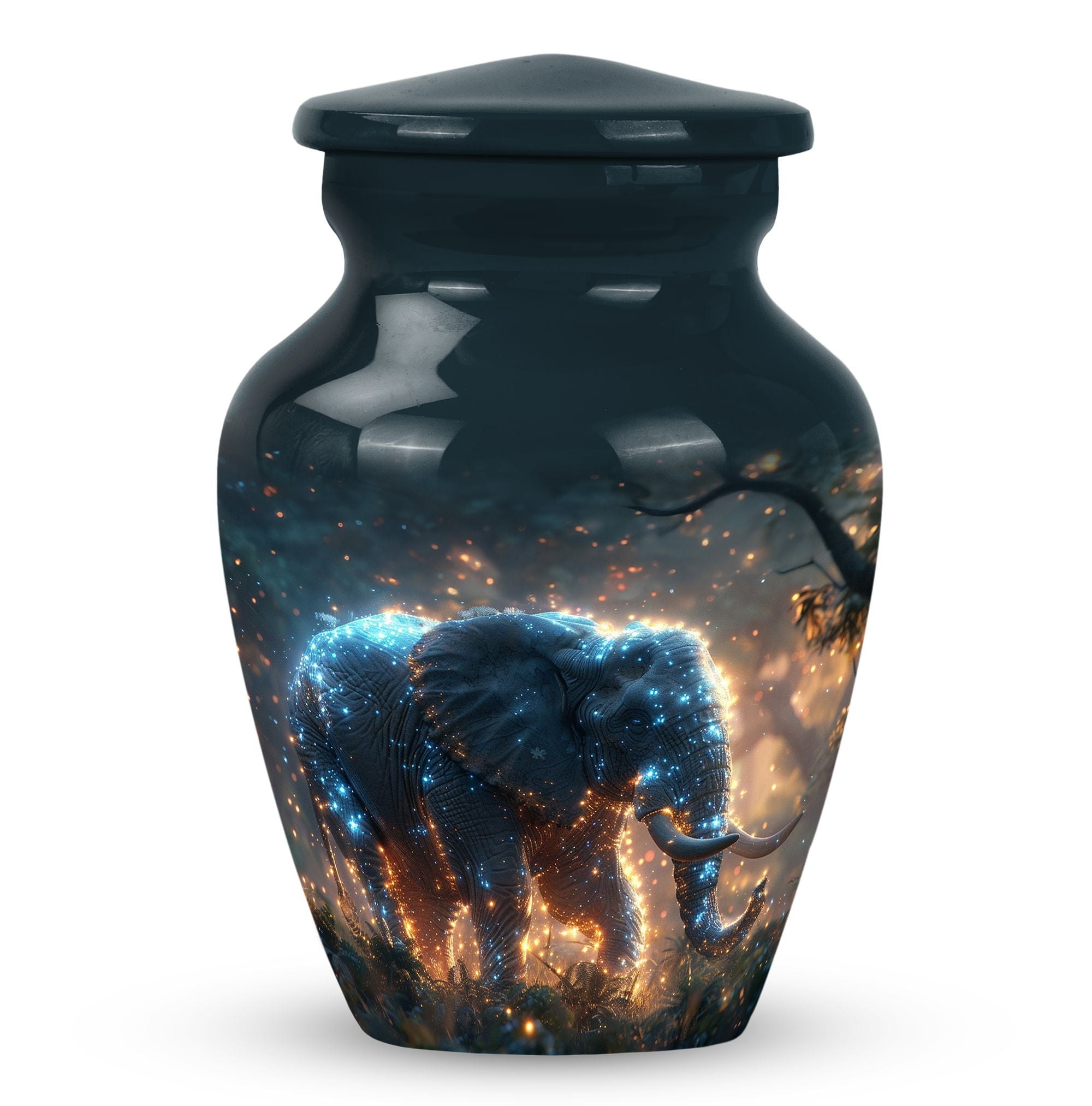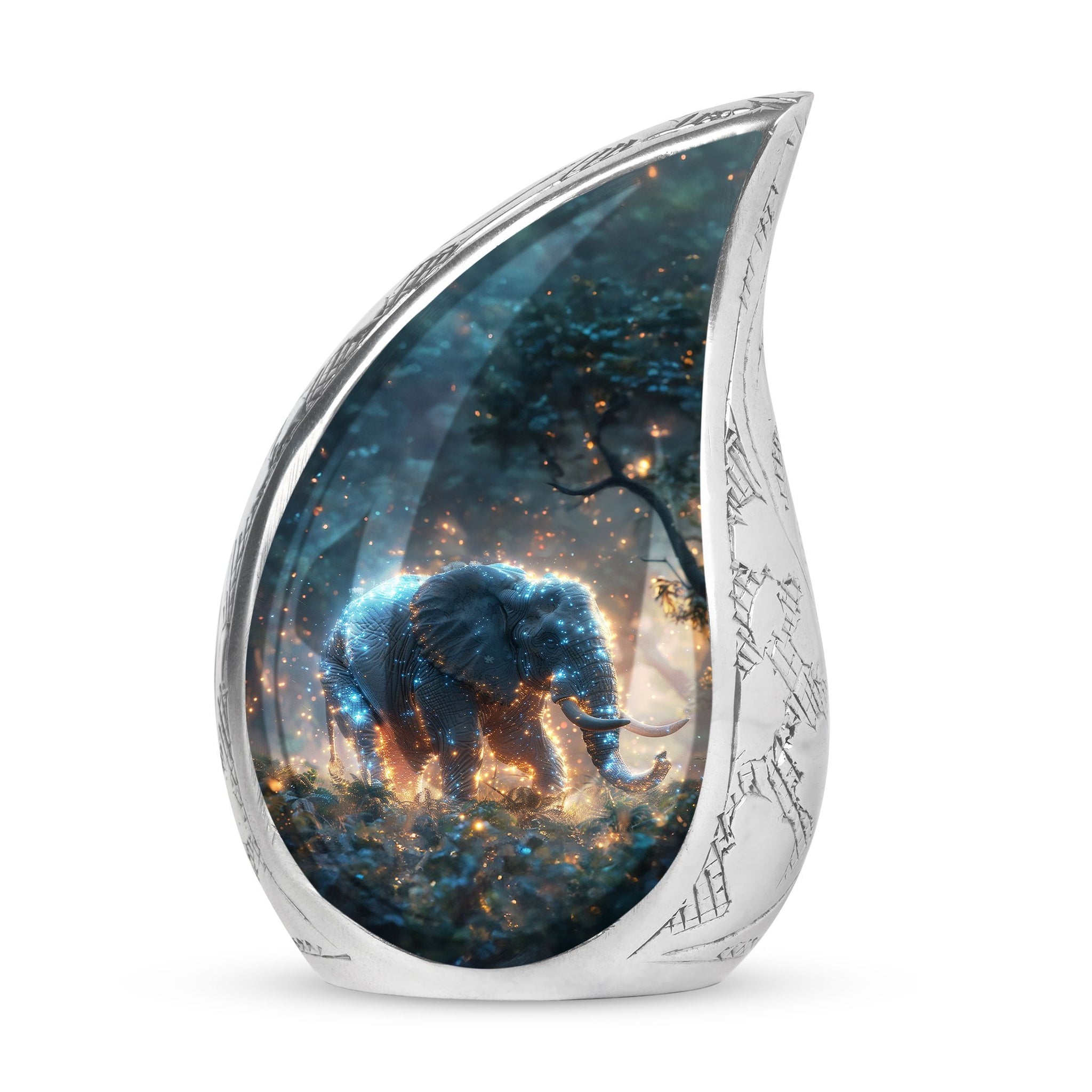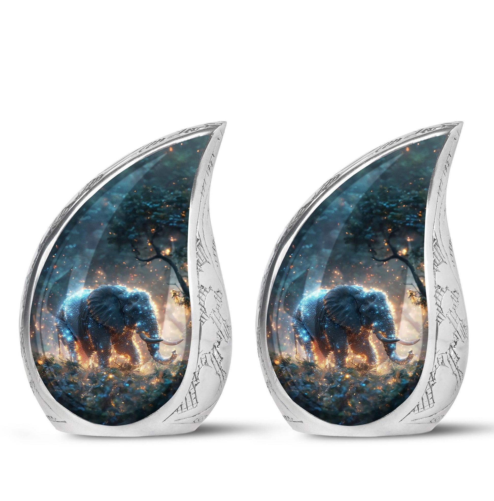 Crafted with premium aluminum, this urn for human ashes adult men and women combines durability with artistry. Its intricate elephant design against a serene night forest backdrop reflects wisdom, strength, and tranquility. Whether you seek mens urns for human ashes or a cremation urn women would cherish, its versatile design ensures it serves as both a dignified memorial and a timeless decorative piece in any setting.